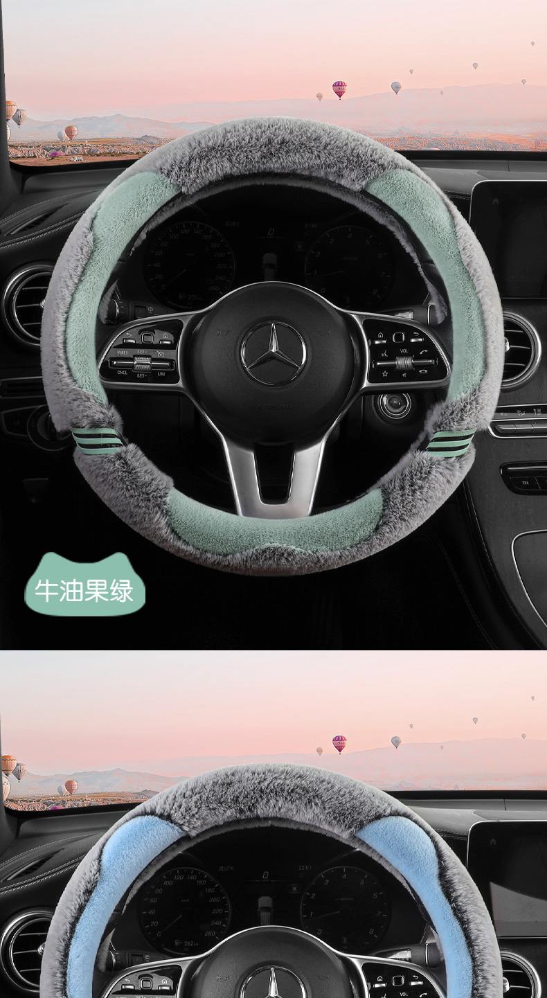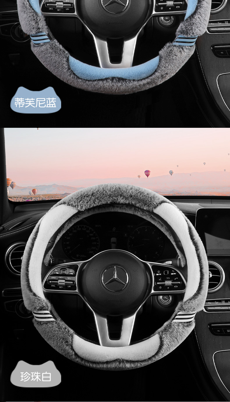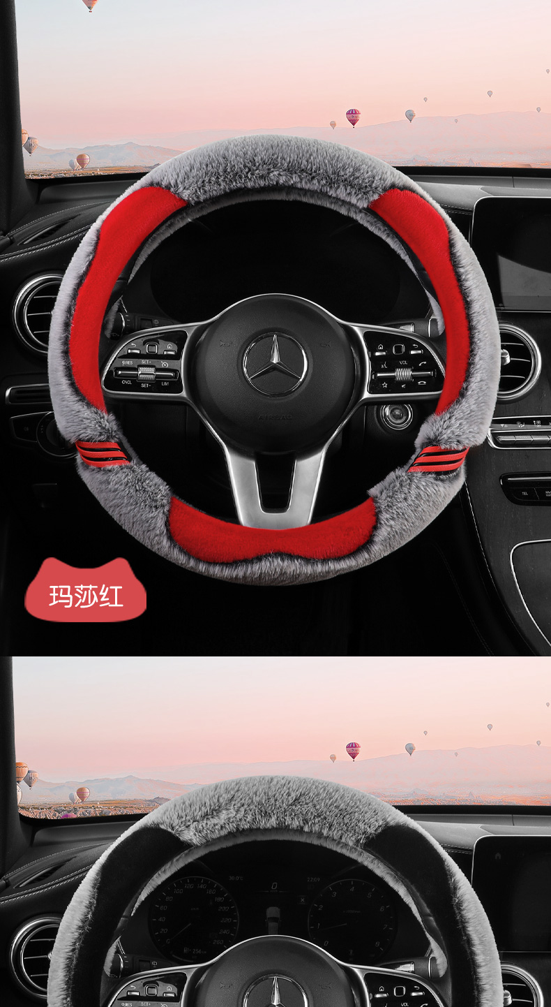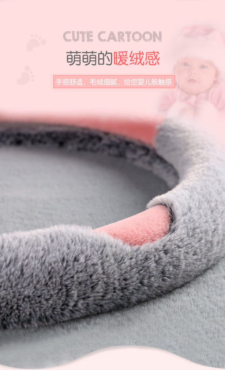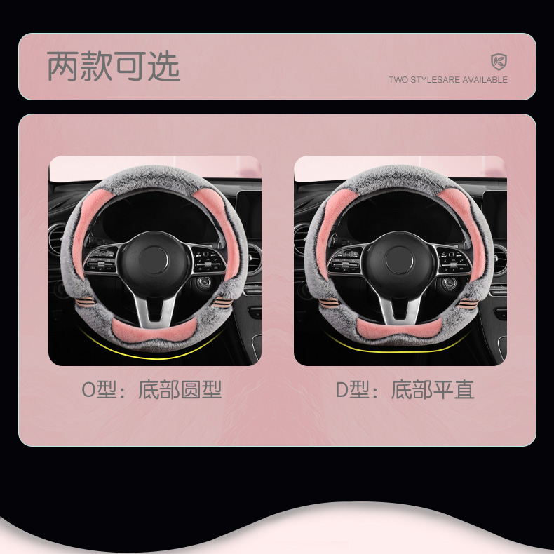 Karcle car steering wheel cover winter plush men and women winter short plush warm heating handlebar cover steering wheel protective cover white peach pink-medium round type