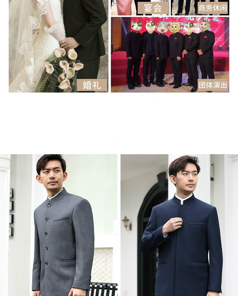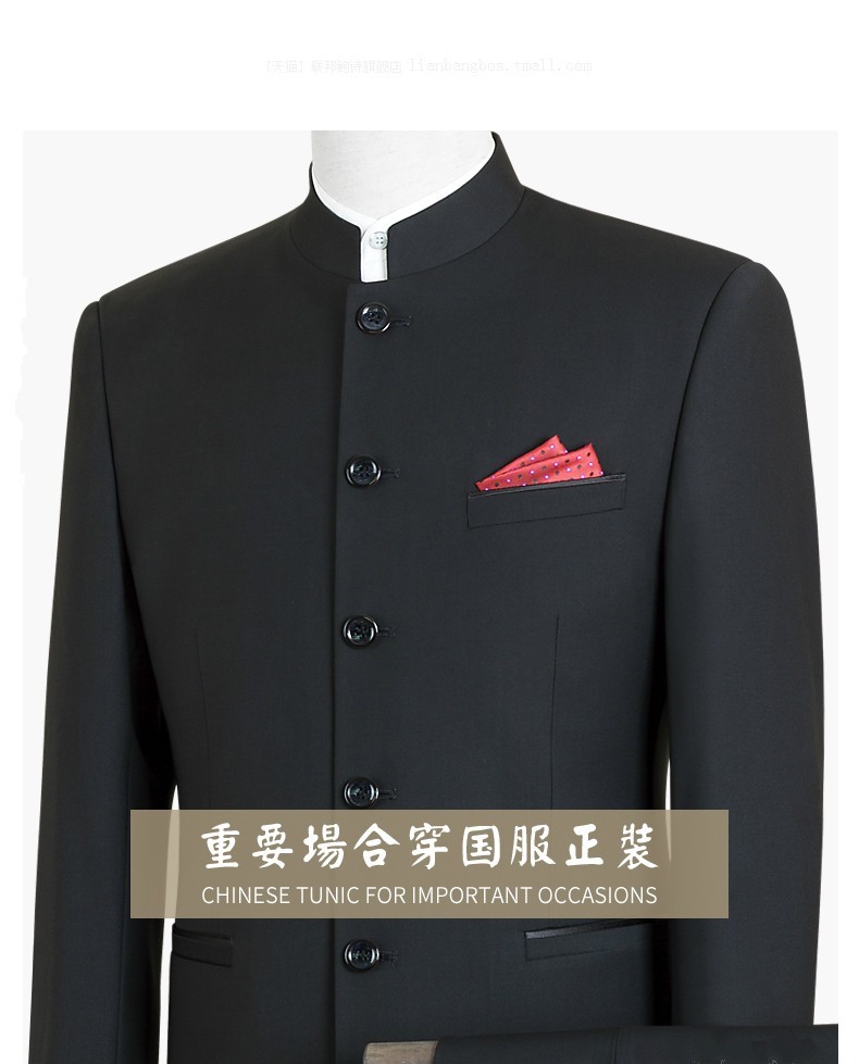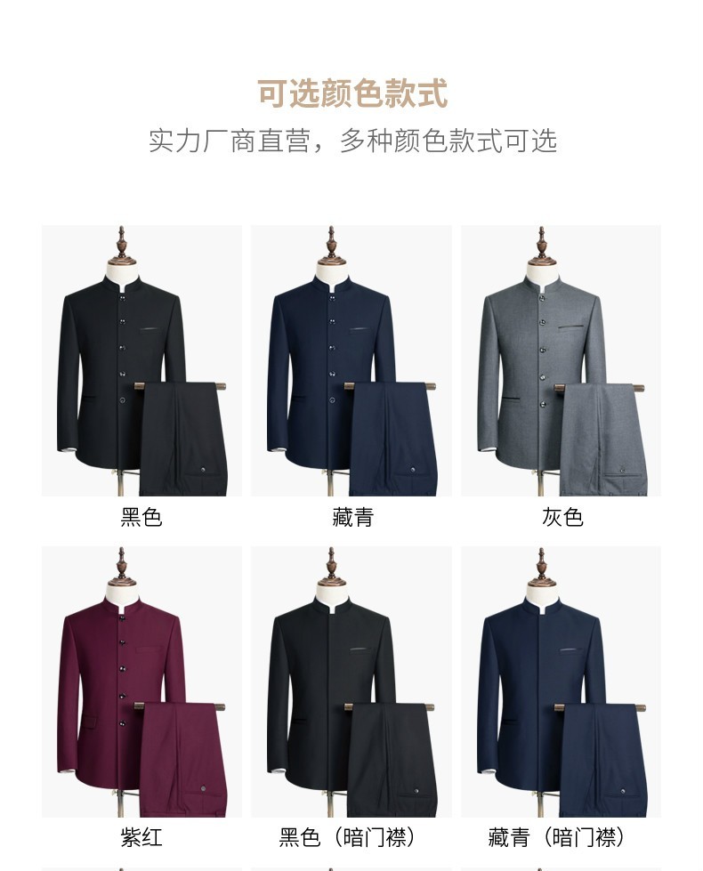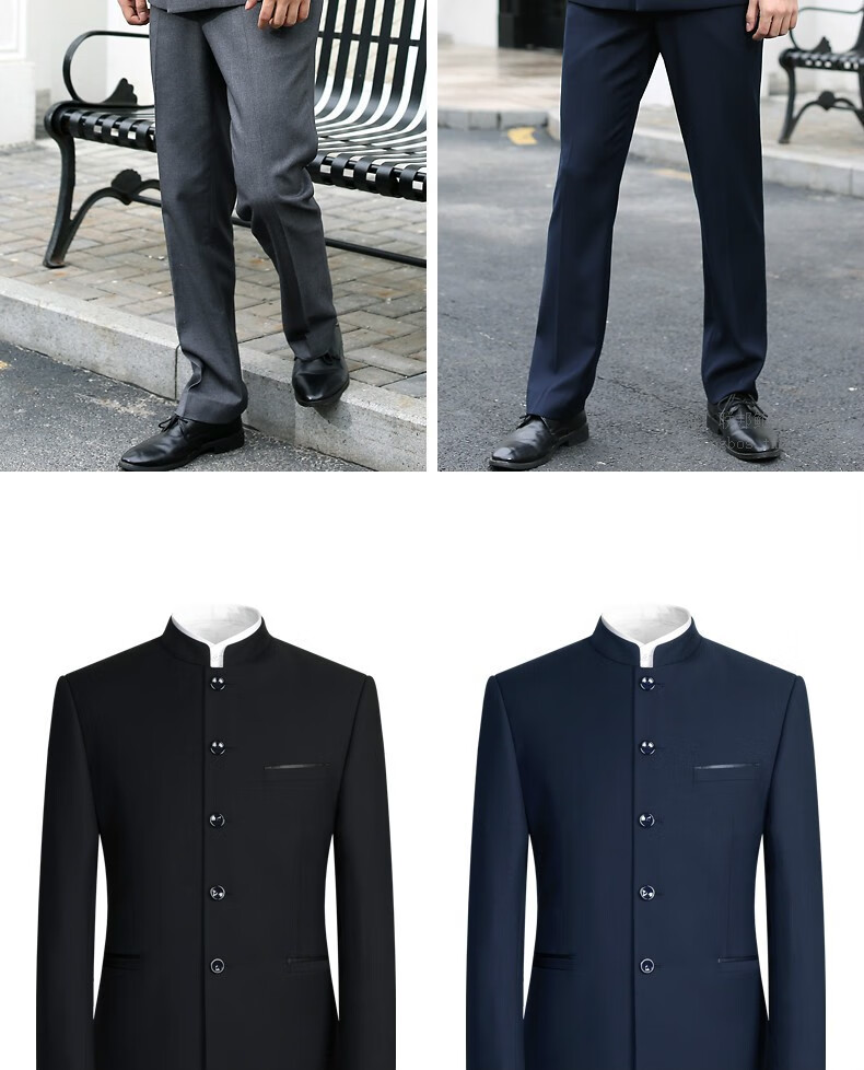 Yuanjie (door-to-door measurement) tailor-made Chinese stand-collar suit, Chinese tunic suit, Tang suit for father-in-law's wedding banquet, navy blue (top + pants), tailor-made