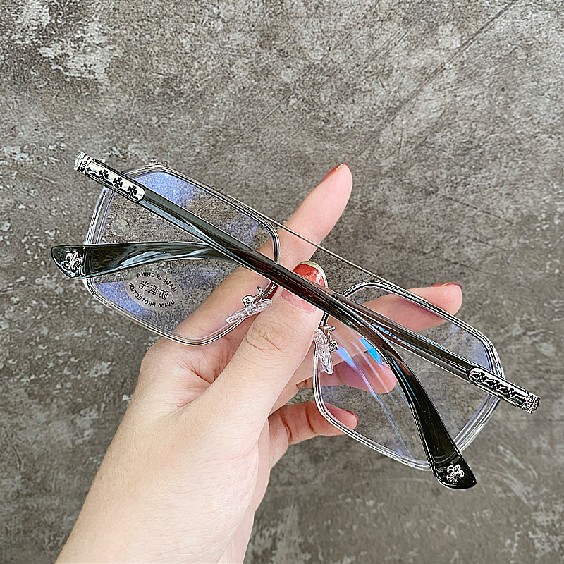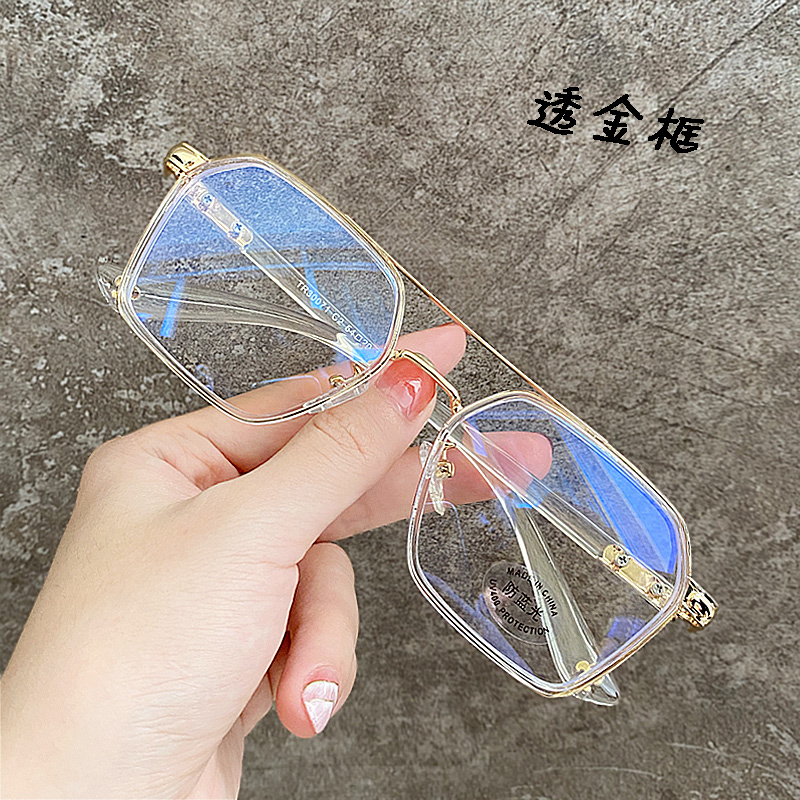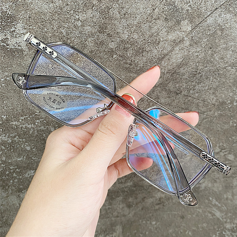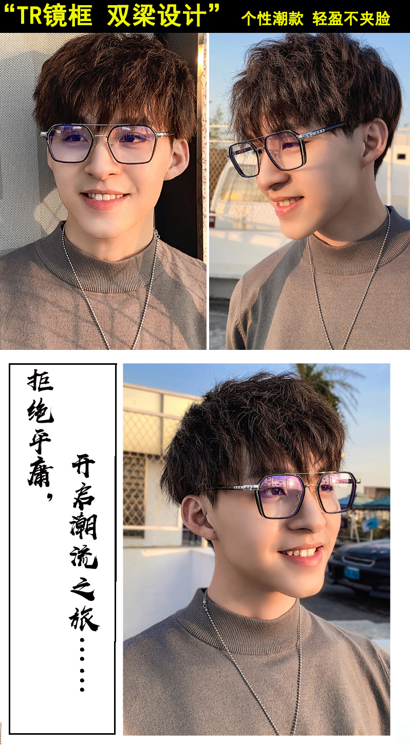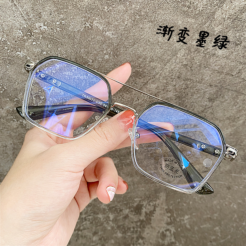 Lansi Rami anti-blue light radiation glasses for men, trendy color-changing eye frames for Internet celebrities, myopia eye frames for women, the same style as trendy handsome Chen Weiting, transparent gray silver frame-anti-blue light personalized beam, equipped with 1.7 extra thin aspherical lenses (recommended 0-1000 degrees)