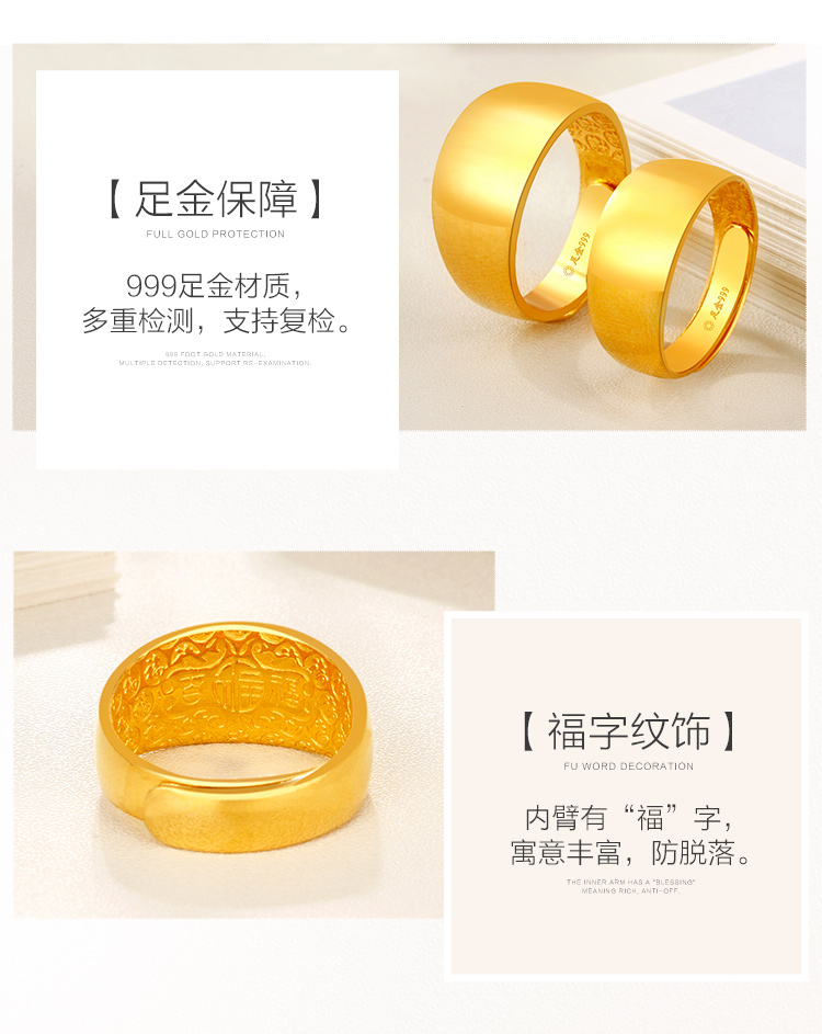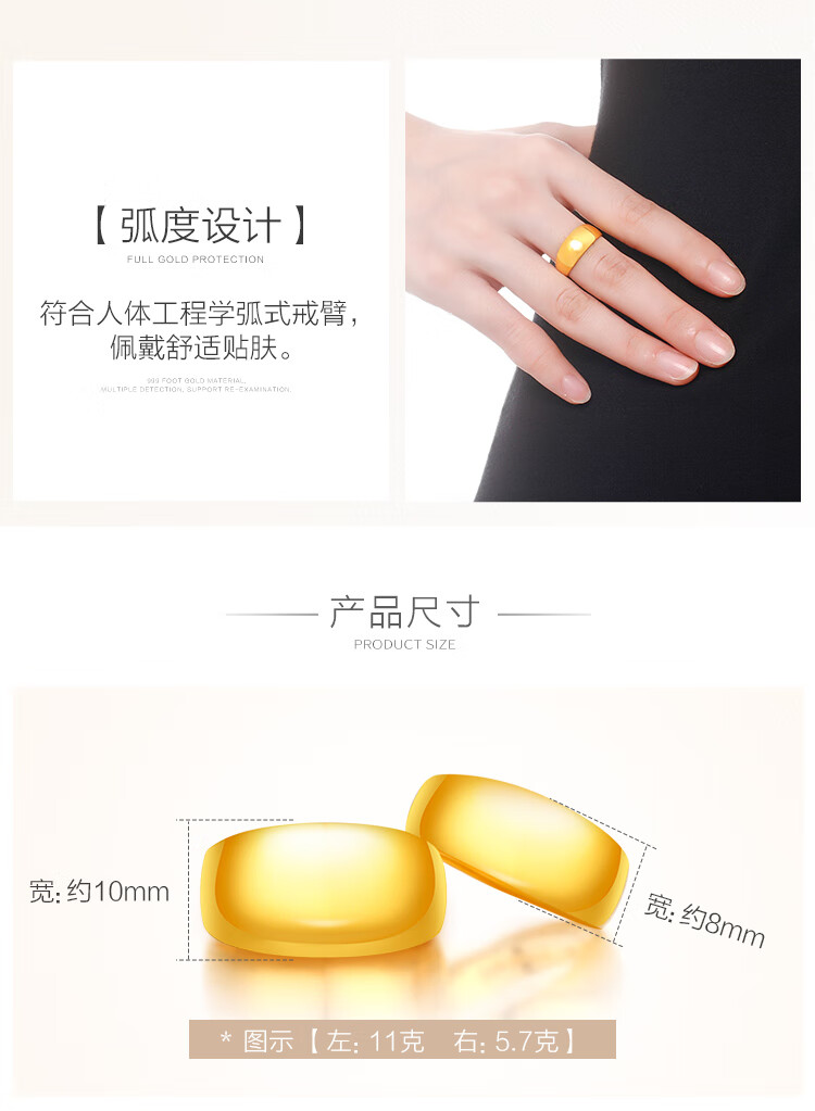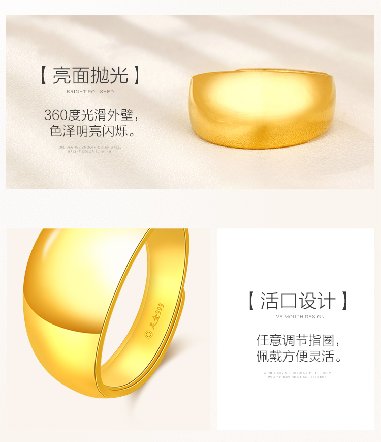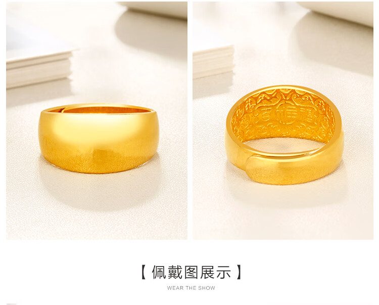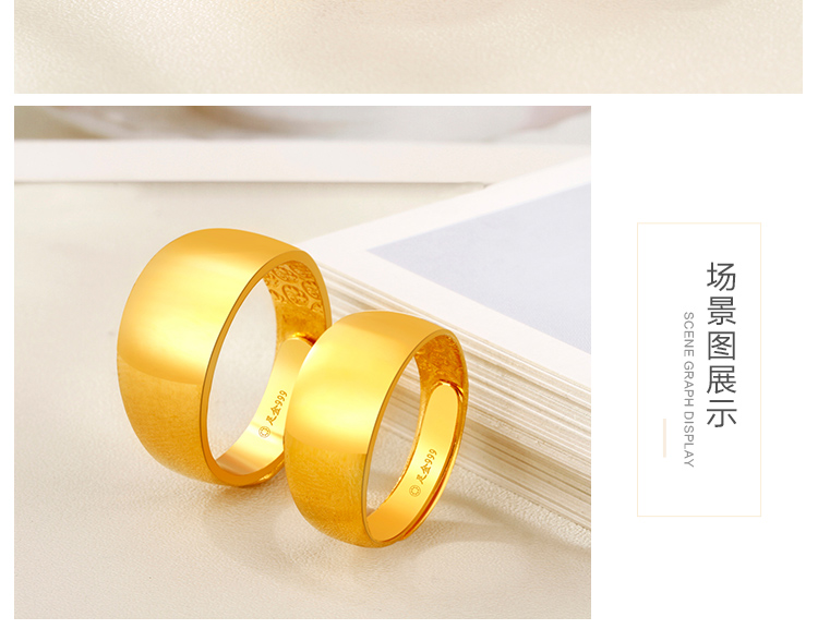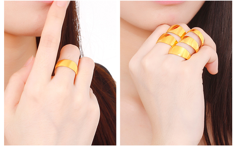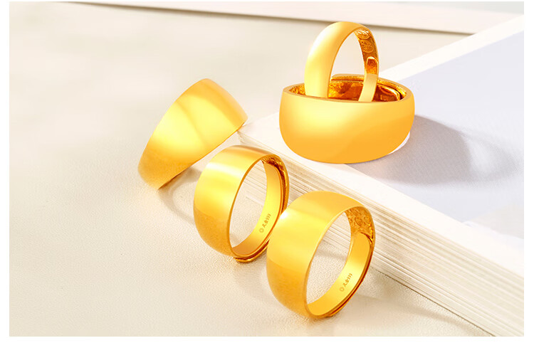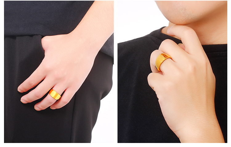 Luckin Gold Ring Wide Face Pure Gold 999 Solid Smooth Live Mouth Snake Belly Gold Ring for Men and Women Gold Weight 15.57g