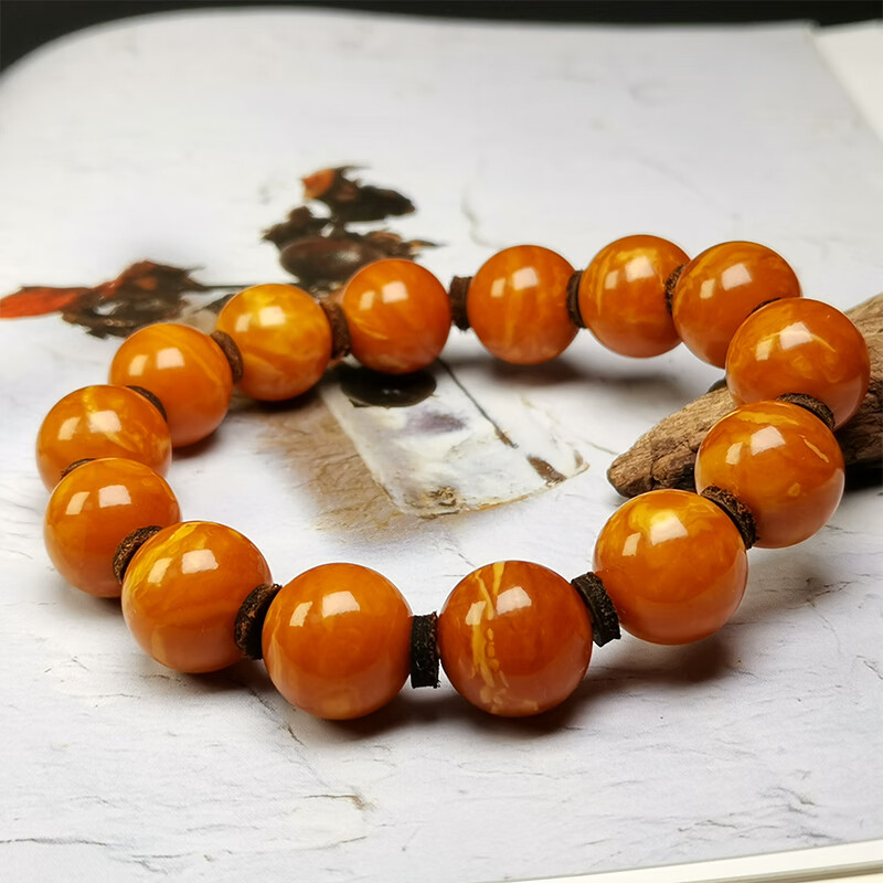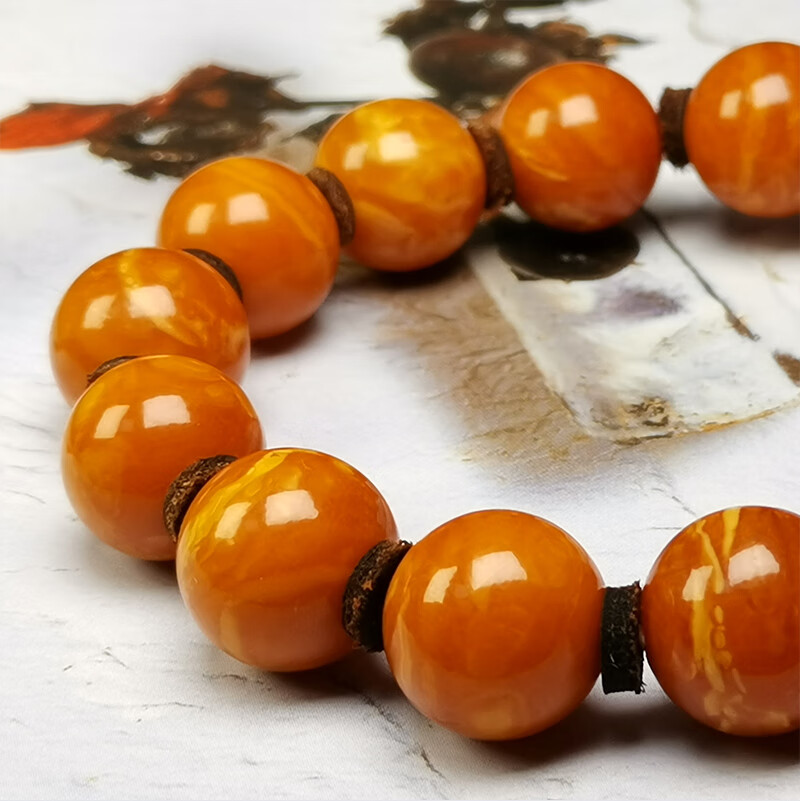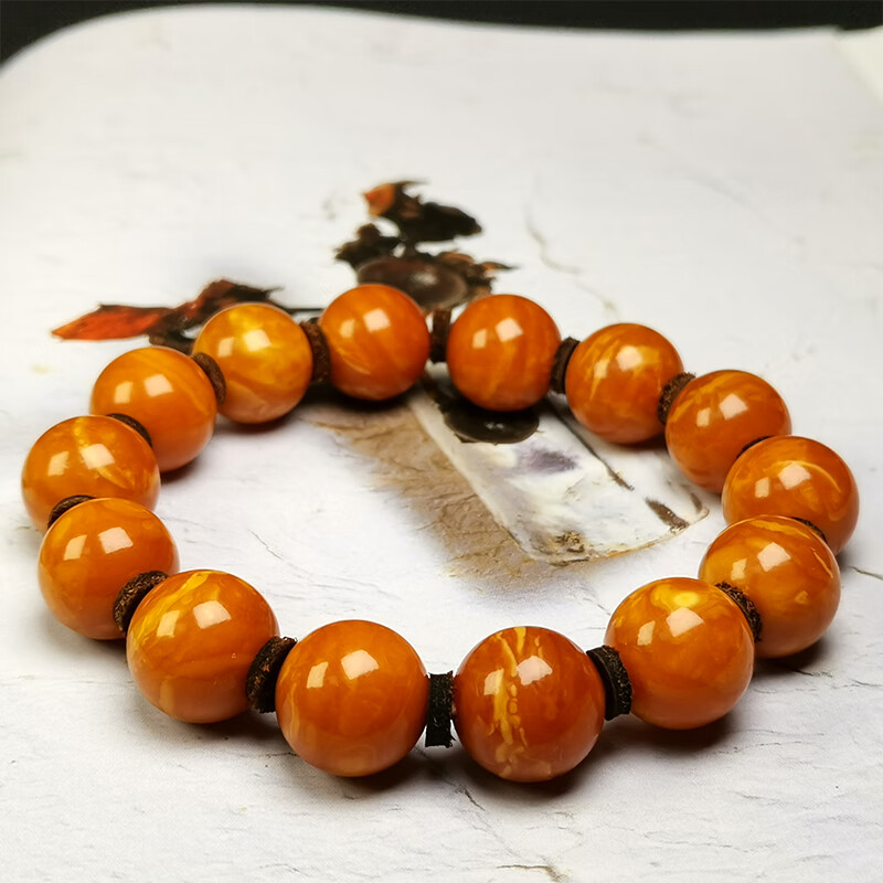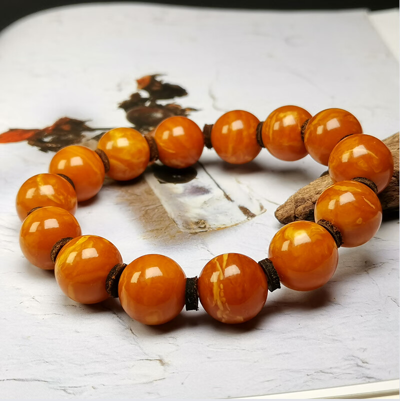 Amber style, one thing, one picture, one certificate, old beeswax bracelet, natural amber bracelet, chicken oil red old wax, old flower wax, flawless 13.3mm 19.96g