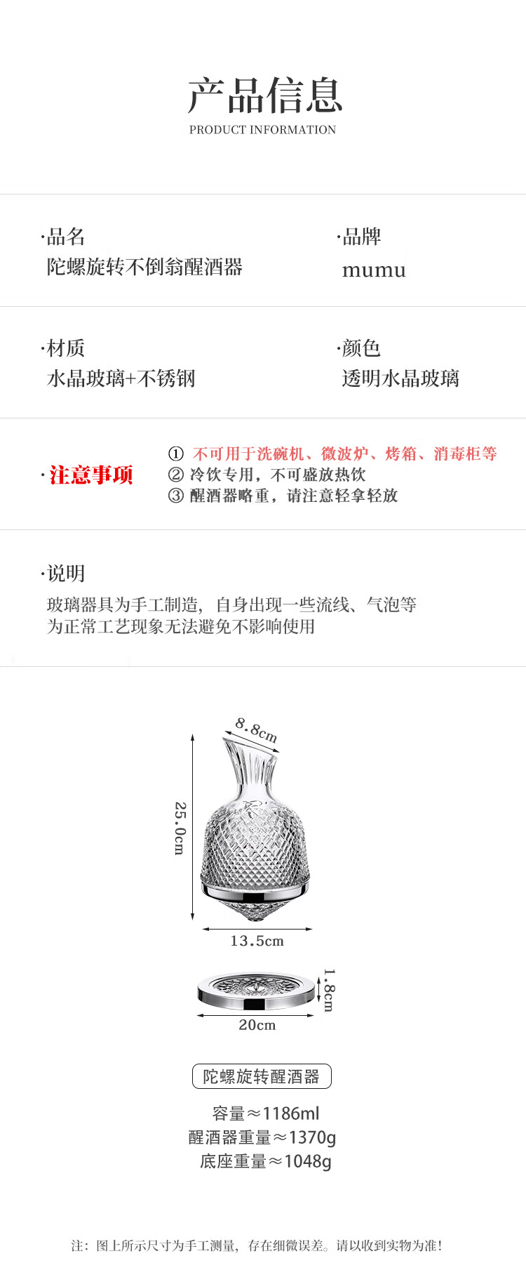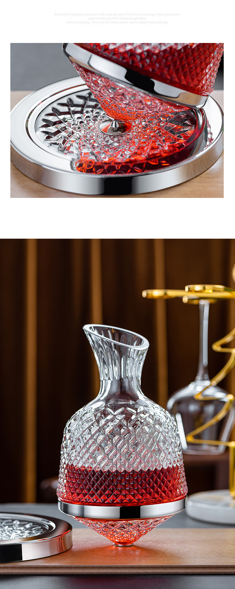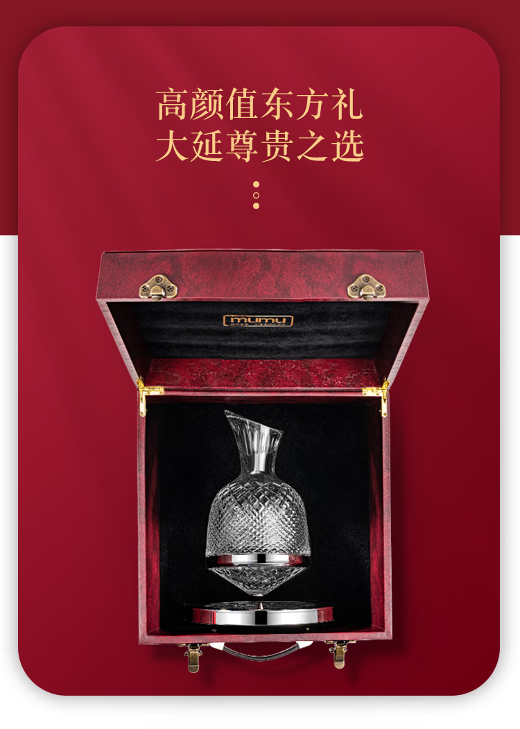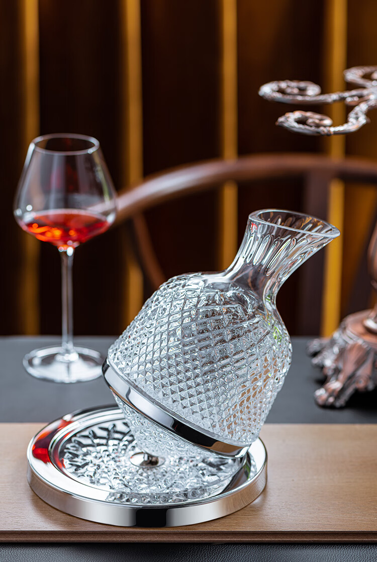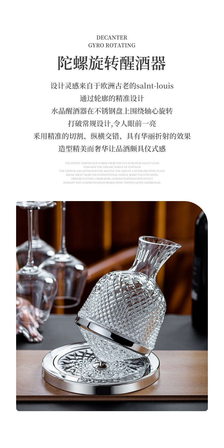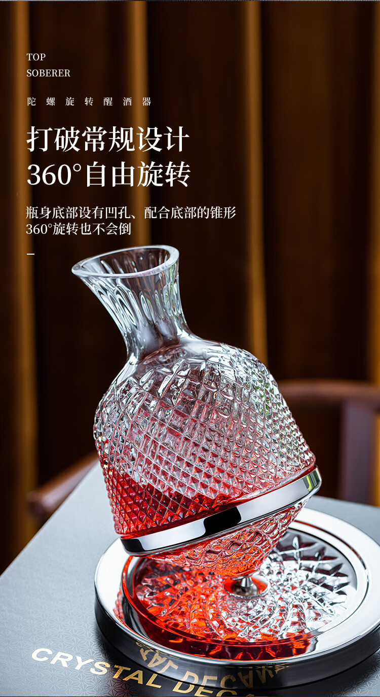 MUMU Housewarming Gift Crystal Luxurious High-end Rotating Tumbler Red Wine Decanter Set Home Red Wine Glass Stand Crystal Rotating Decanter 1186ml