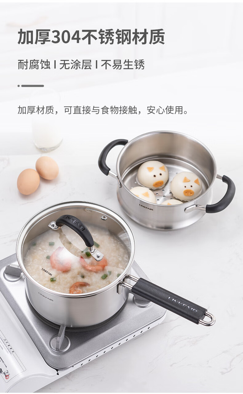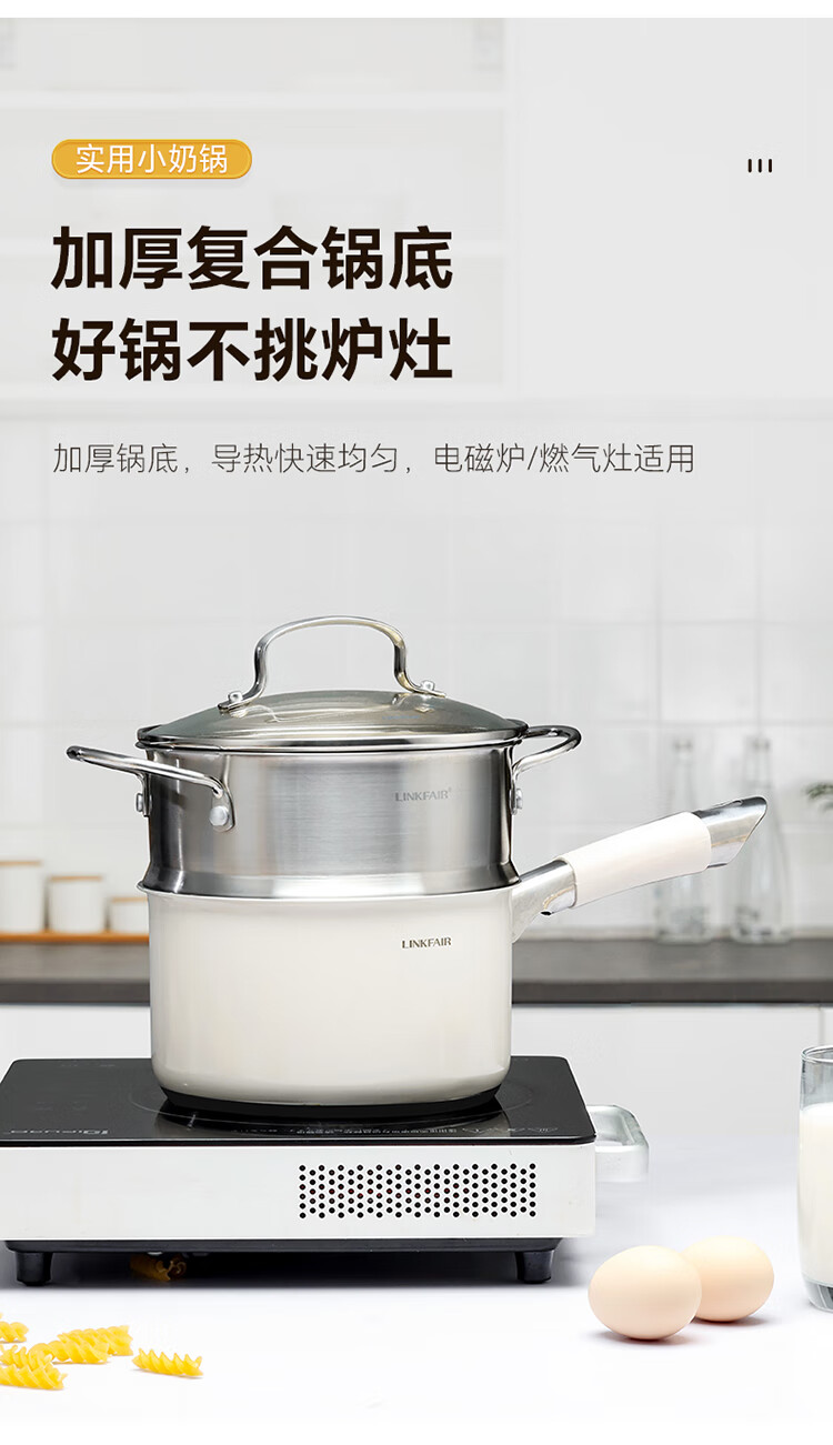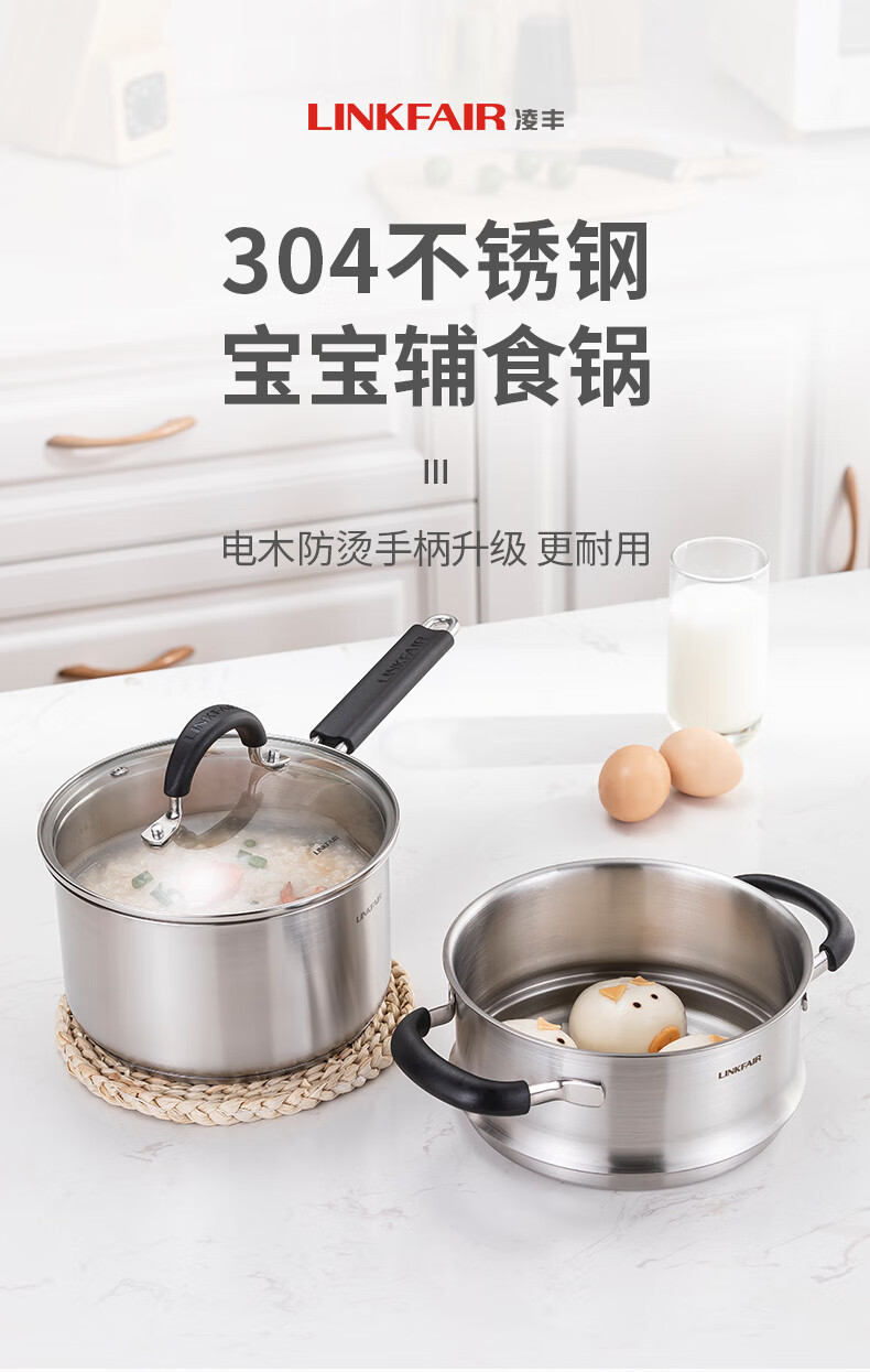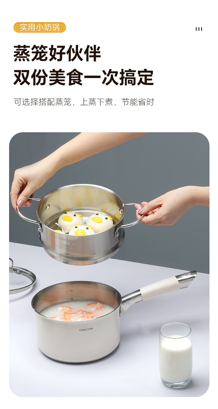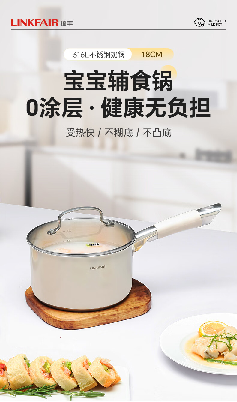 Lingfeng (LINKFAIR) milk pot stainless steel baby food pot uncoated noodle cooking pot snow pan small soup pot gas induction cooker universal 304 milk pot 18cm