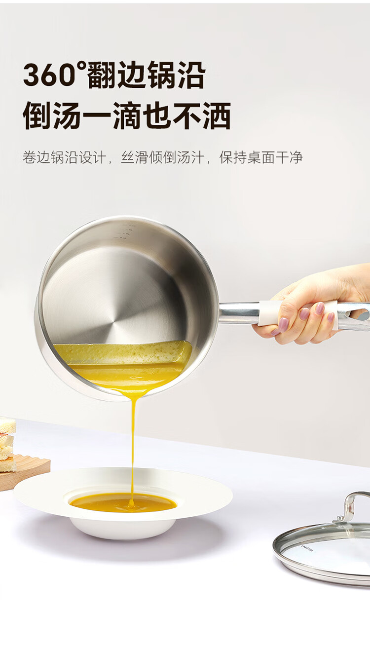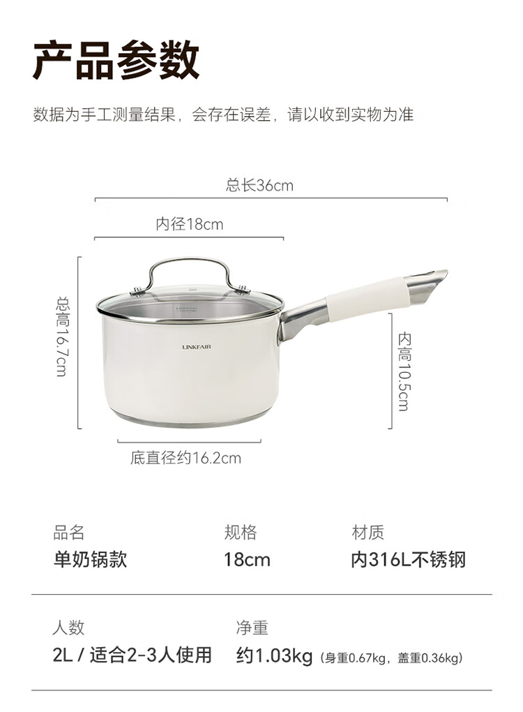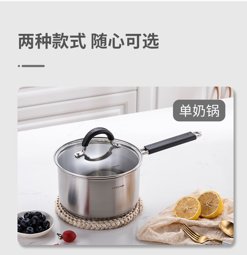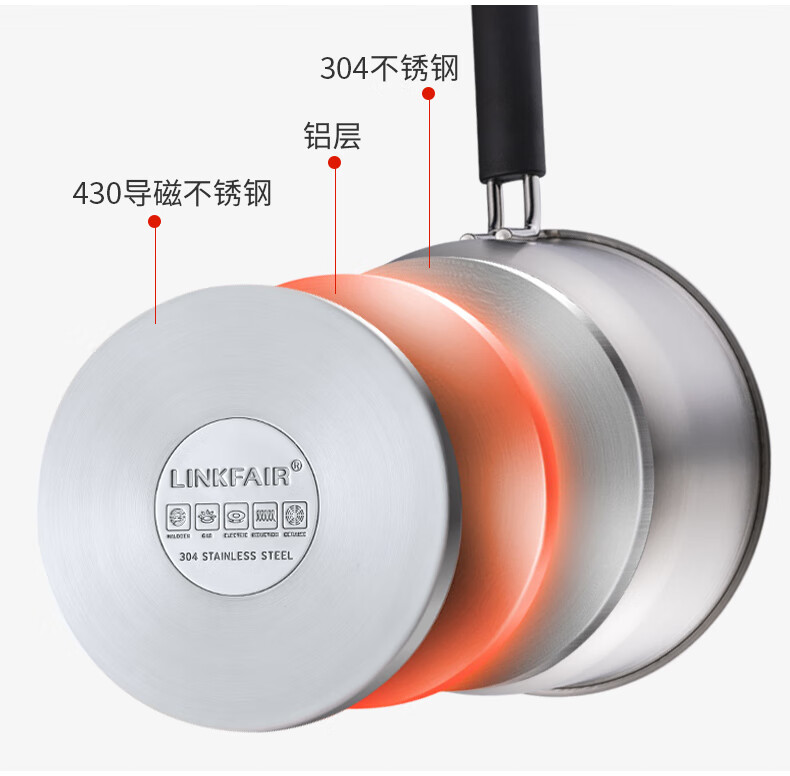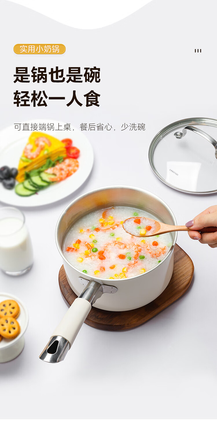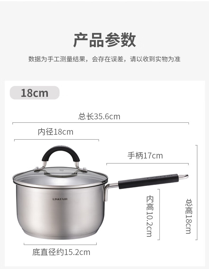 Lingfeng (LINKFAIR) milk pot stainless steel baby food pot uncoated noodle cooking pot snow pan small soup pot gas induction cooker universal 304 milk pot 18cm