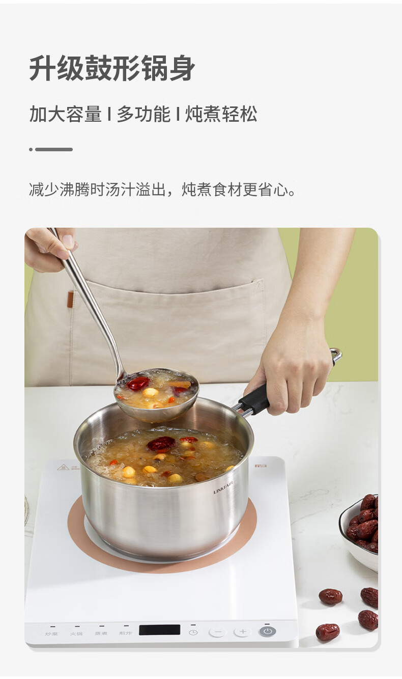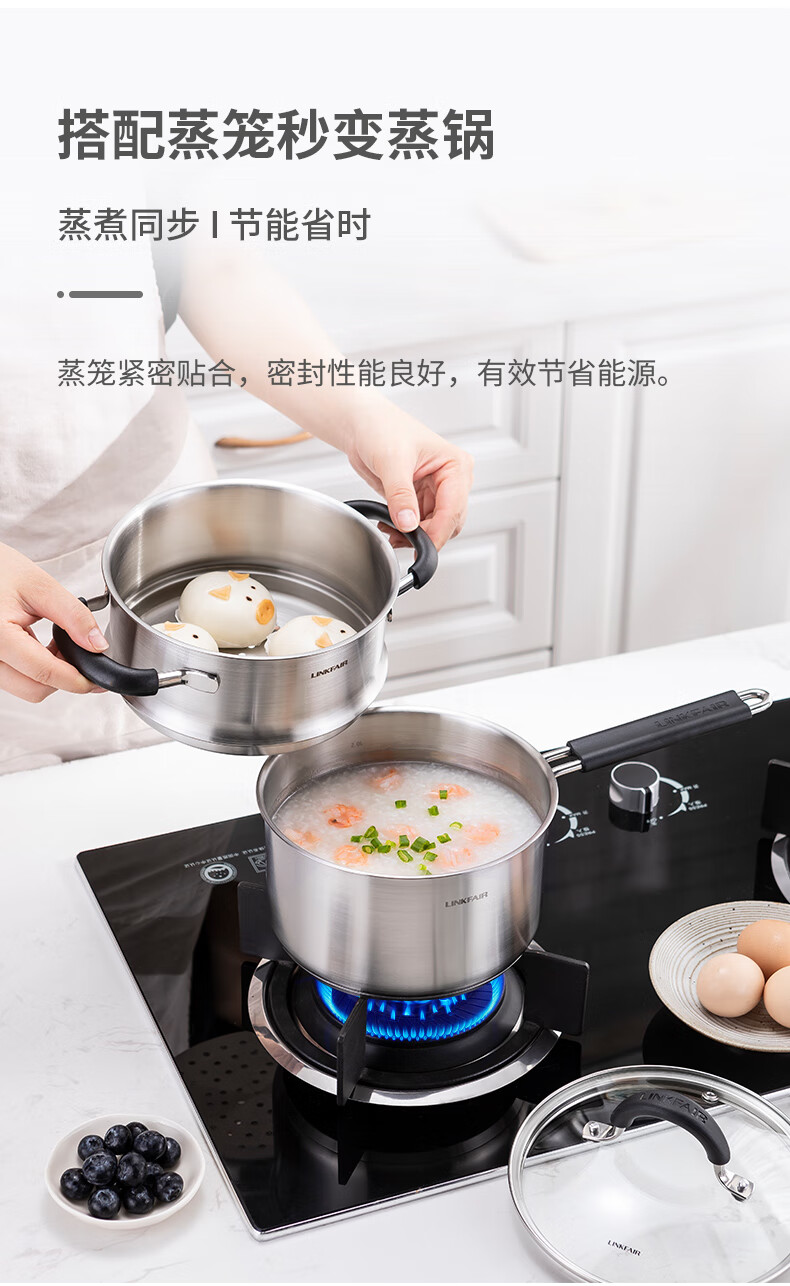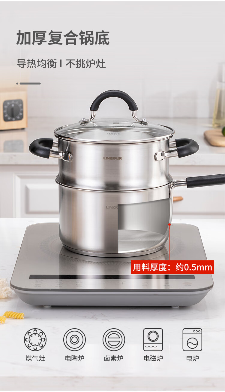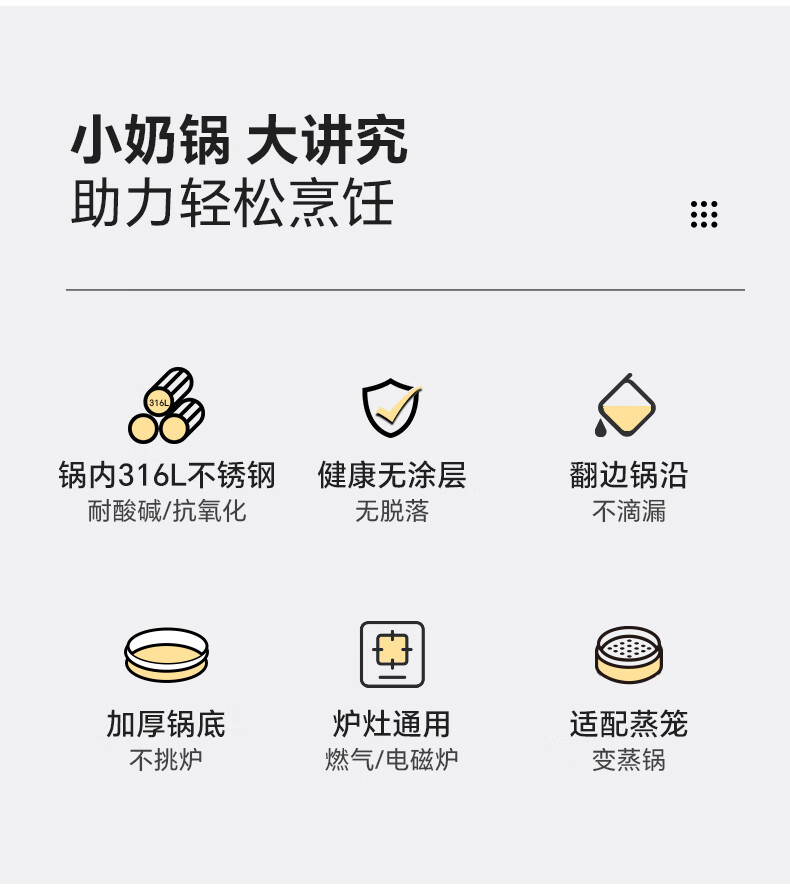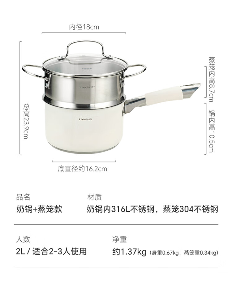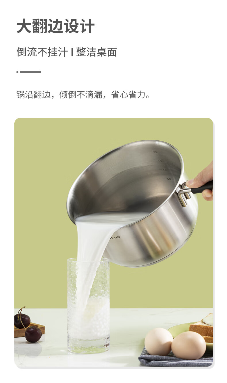 Lingfeng (LINKFAIR) milk pot stainless steel baby food pot uncoated noodle cooking pot snow pan small soup pot gas induction cooker universal 304 milk pot 18cm