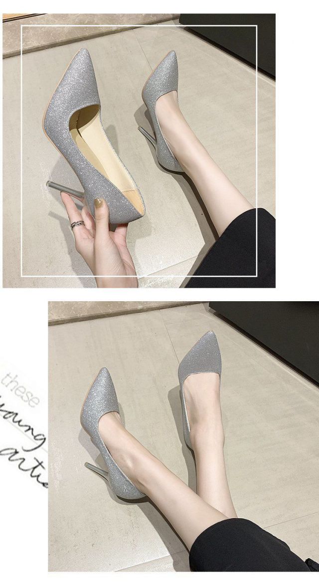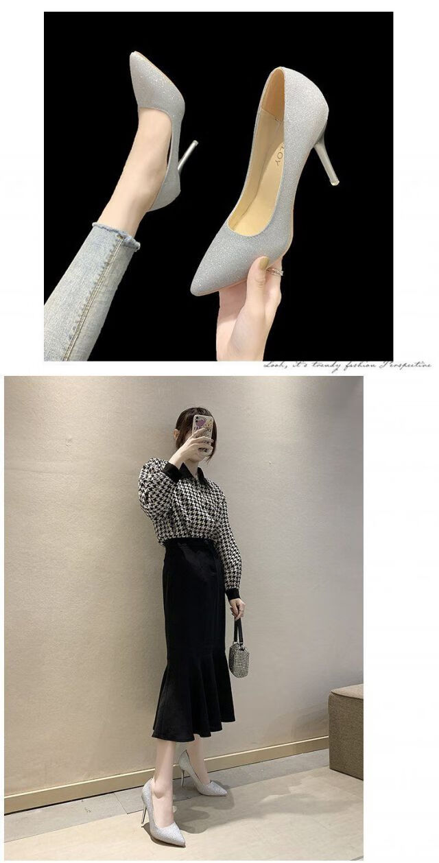 Daohuatu size 35-45 large size high-heeled shoes 44 sequined single shoes retro men's transvestite shoes 43 stiletto heel big-foot women's shoes 42 silver 10 cm 43