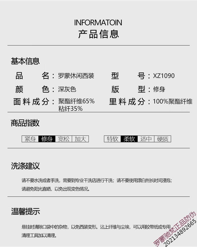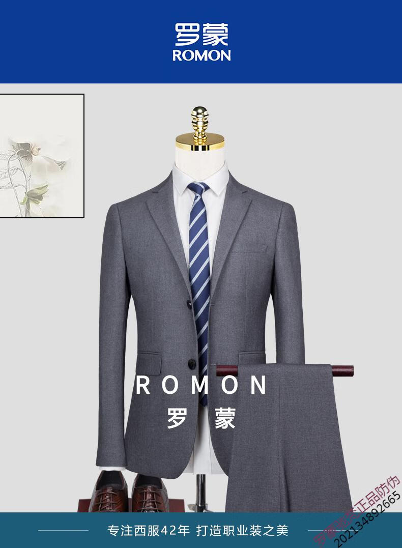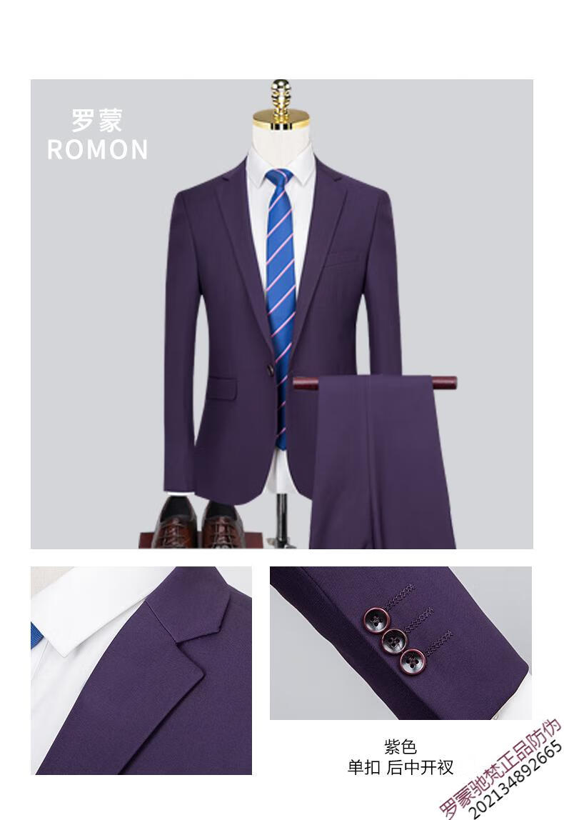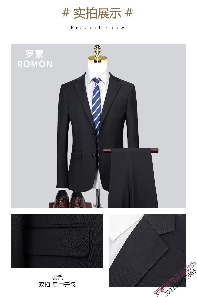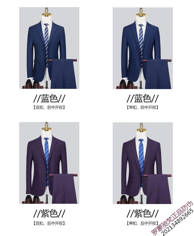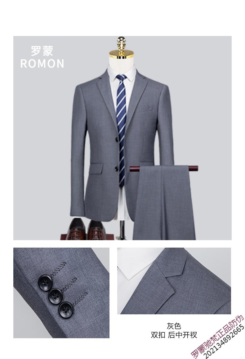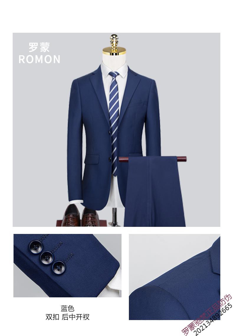 ROMON brand high-end suit men's Korean version slim temperament professional work clothes business formal wear groom wedding suit dress new product navy 1089 top + pants = two-piece set double button XL 180
