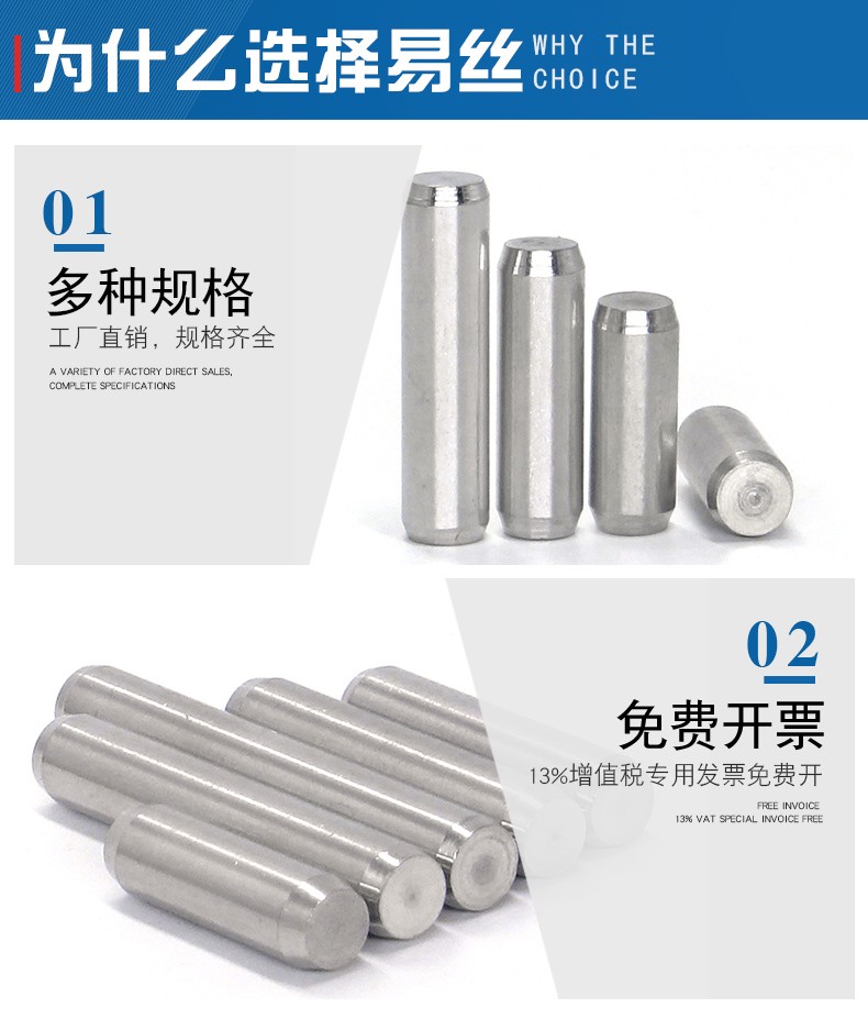 Easy GB119 standard 304 stainless steel cylindrical pin positioning pin fixed pin pin solid pin M3M4M5M6M8 6*16 (10 pieces)