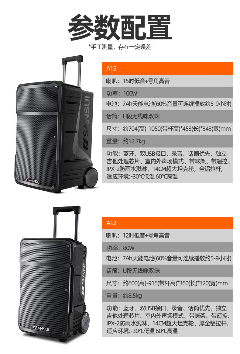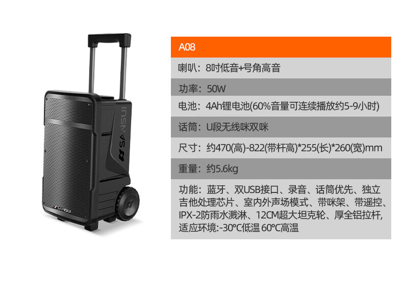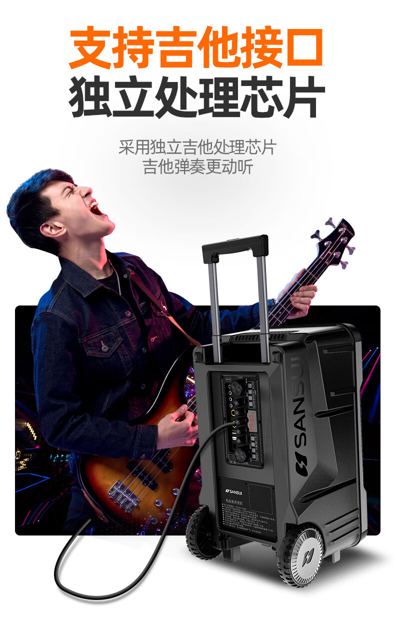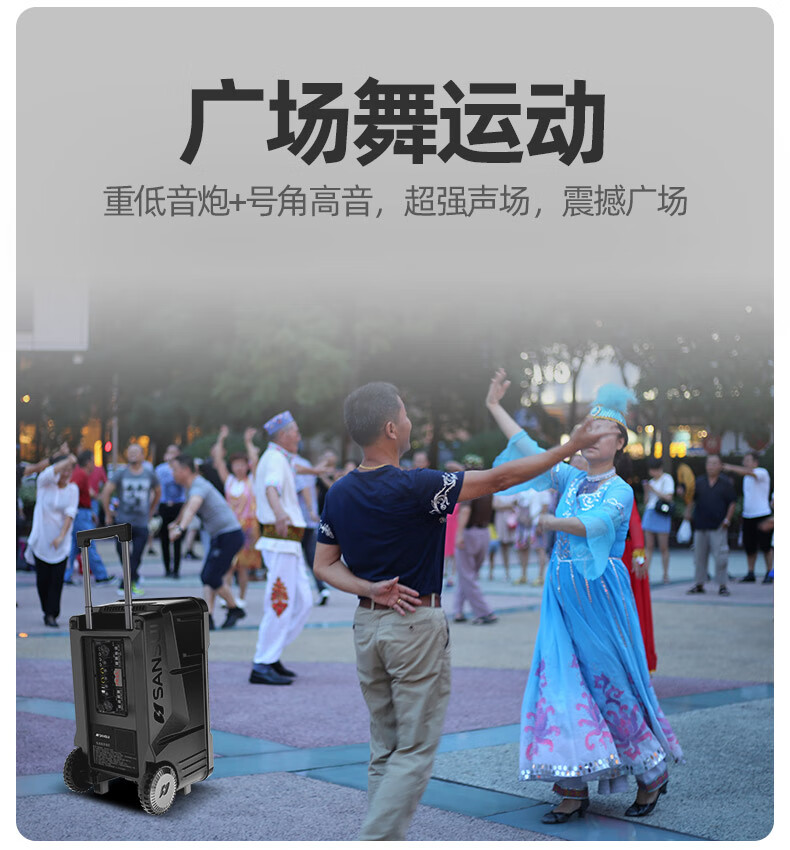 SANSUI A12 square dance audio outdoor audio karaoke special performance mobile portable trolley speaker high-power subwoofer with wireless microphone 12-inch bass + double bel canto microphone