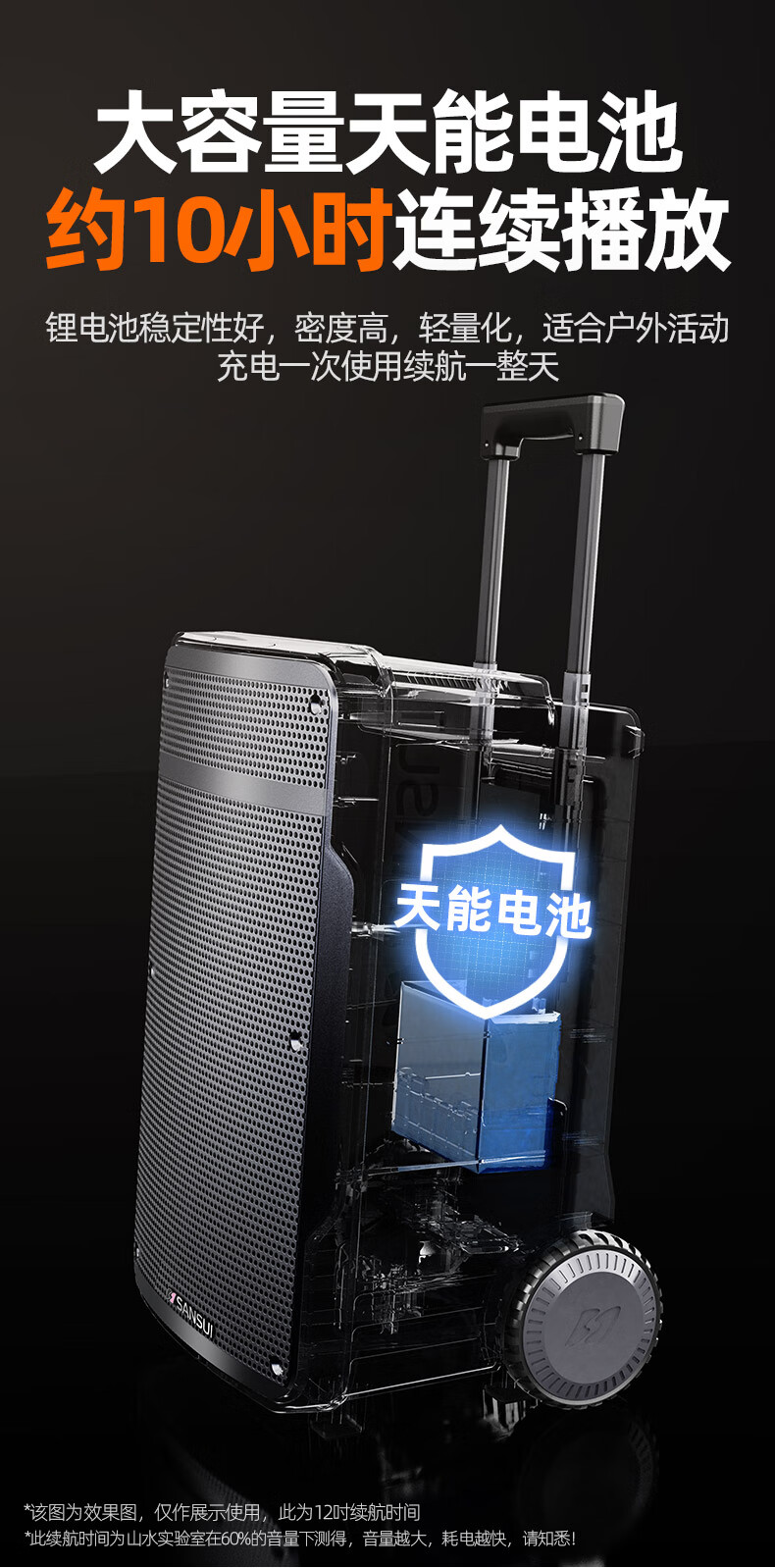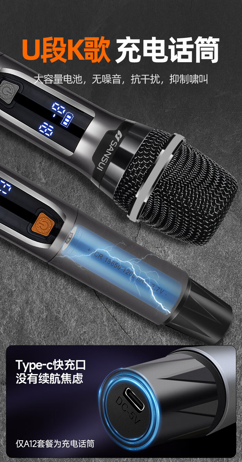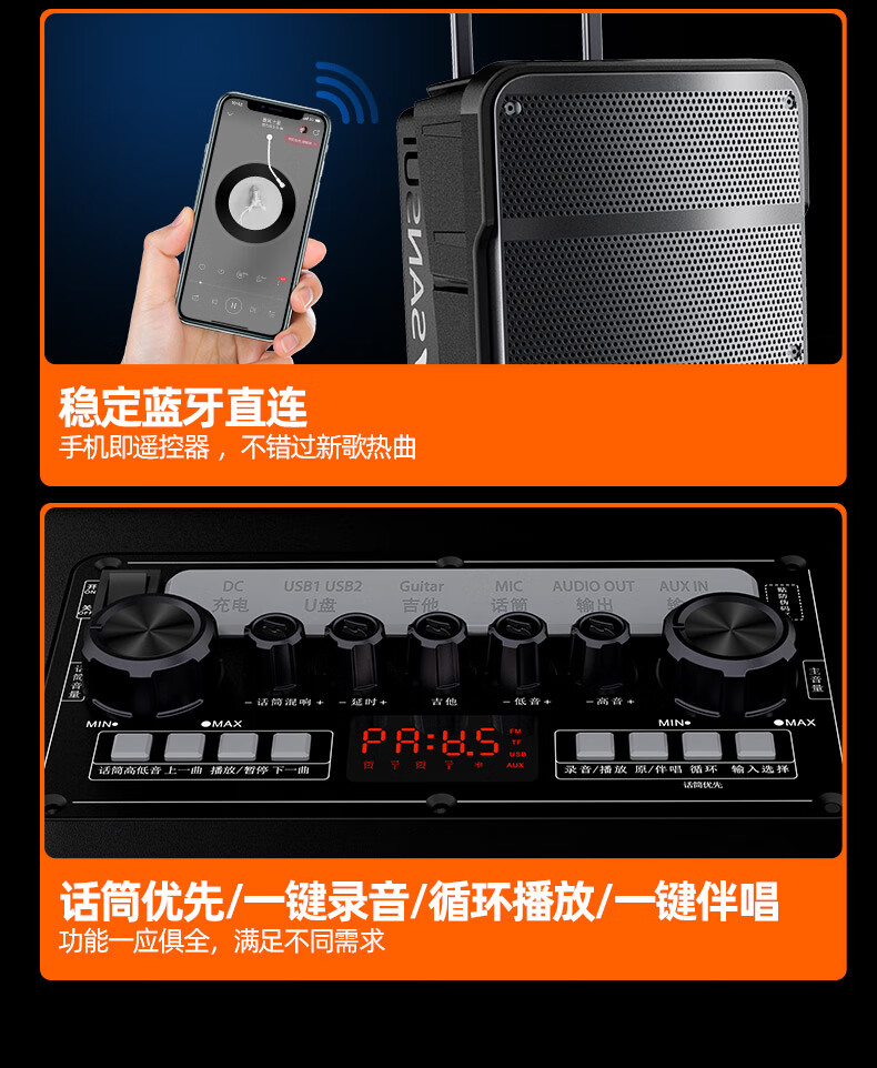 SANSUI A12 square dance audio outdoor audio karaoke special performance mobile portable trolley speaker high-power subwoofer with wireless microphone 12-inch bass + double bel canto microphone