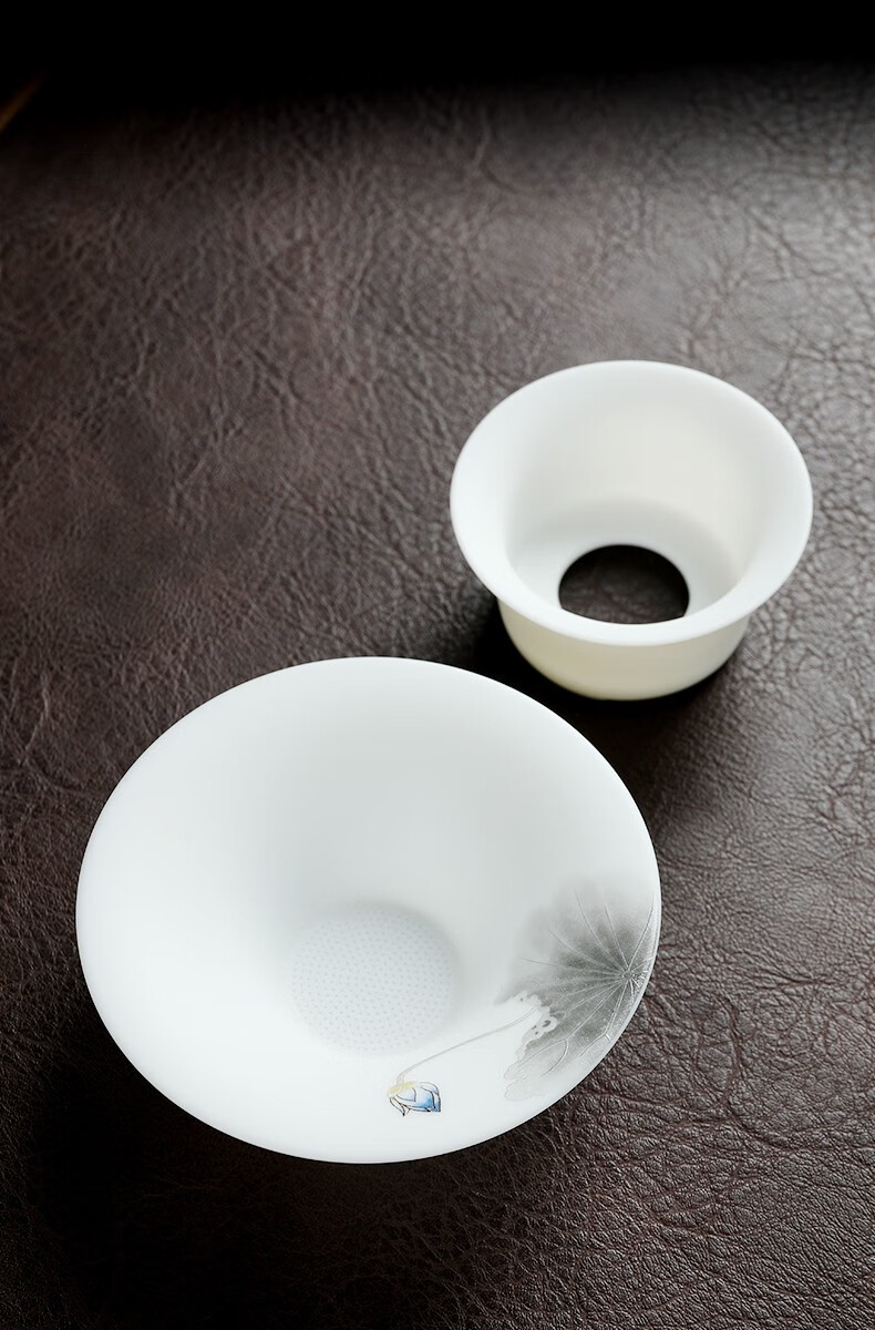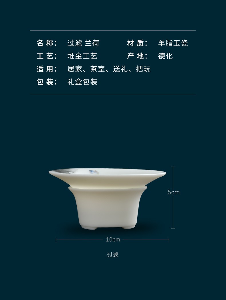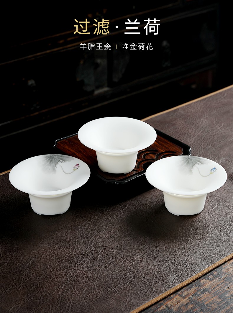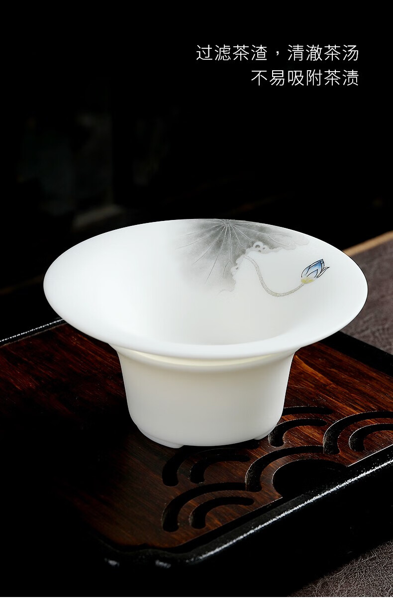 Miaolian Tianxiang mutton fat jade porcelain filter set Dehua white porcelain tea leakage tea filter Kungfu tea set accessories tea separator tea filter KT36-44A-2A filter Lanhe gift box packaging
