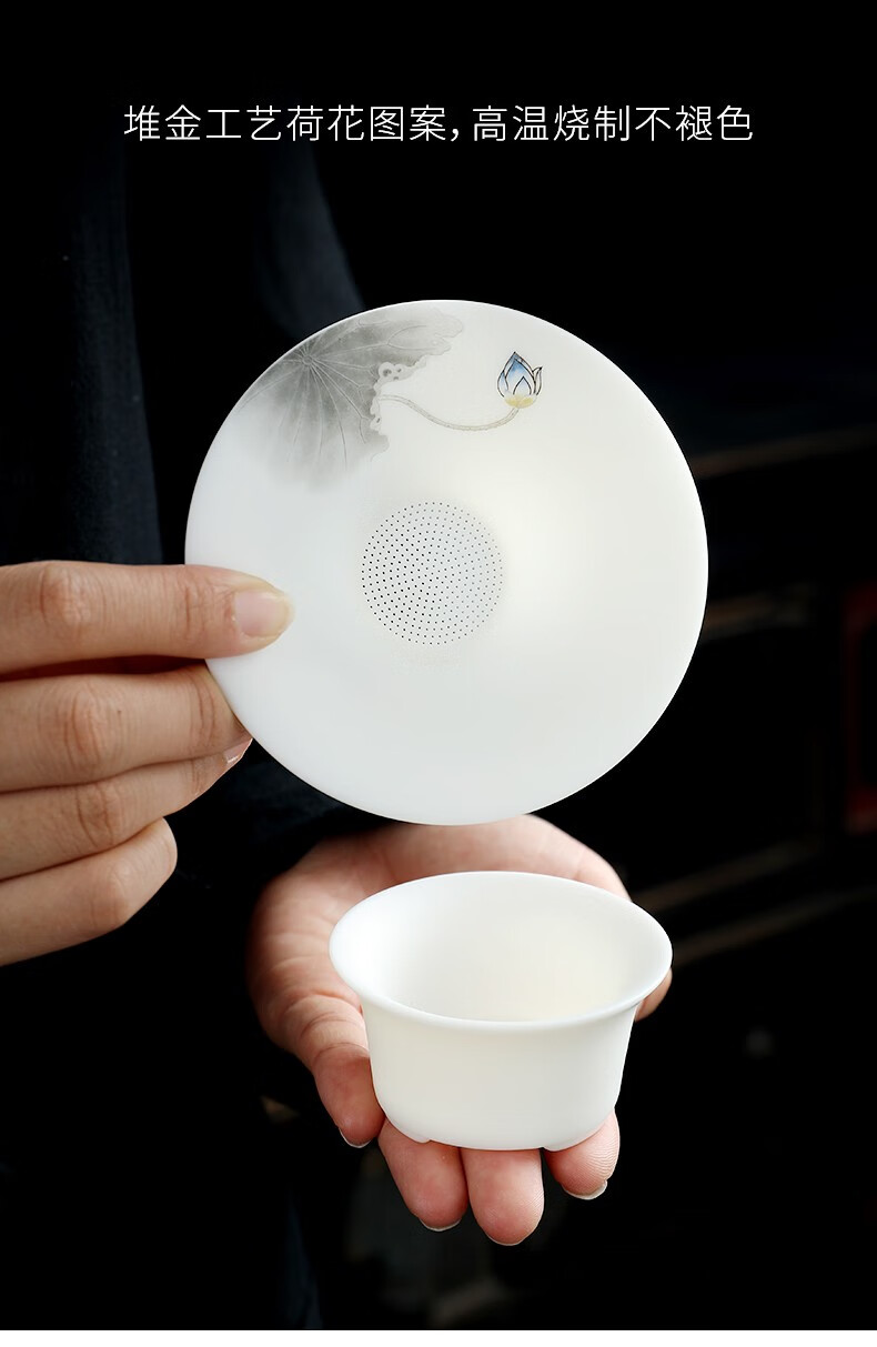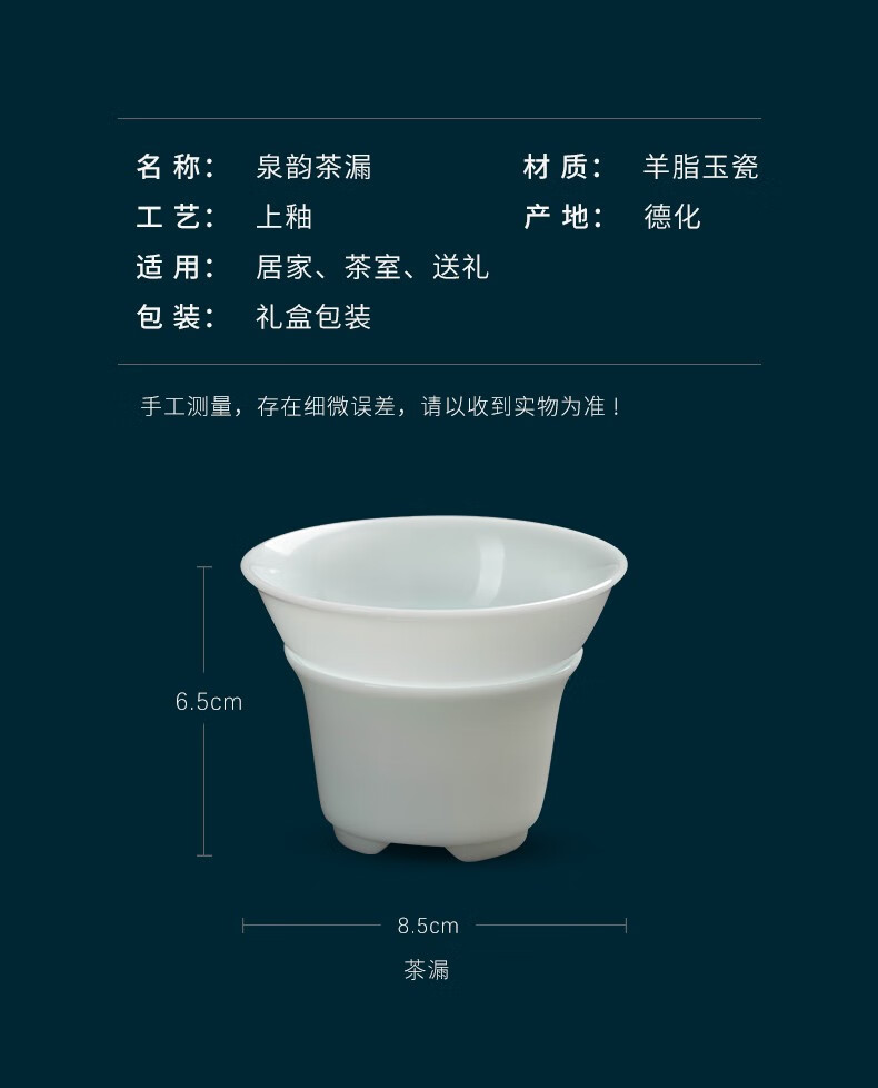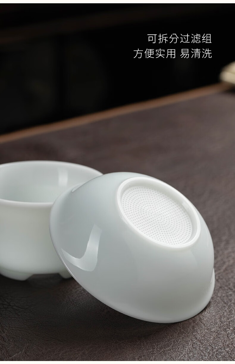 Miaolian Tianxiang mutton fat jade porcelain filter set Dehua white porcelain tea leakage tea filter Kungfu tea set accessories tea separator tea filter KT36-44A-2A filter Lanhe gift box packaging