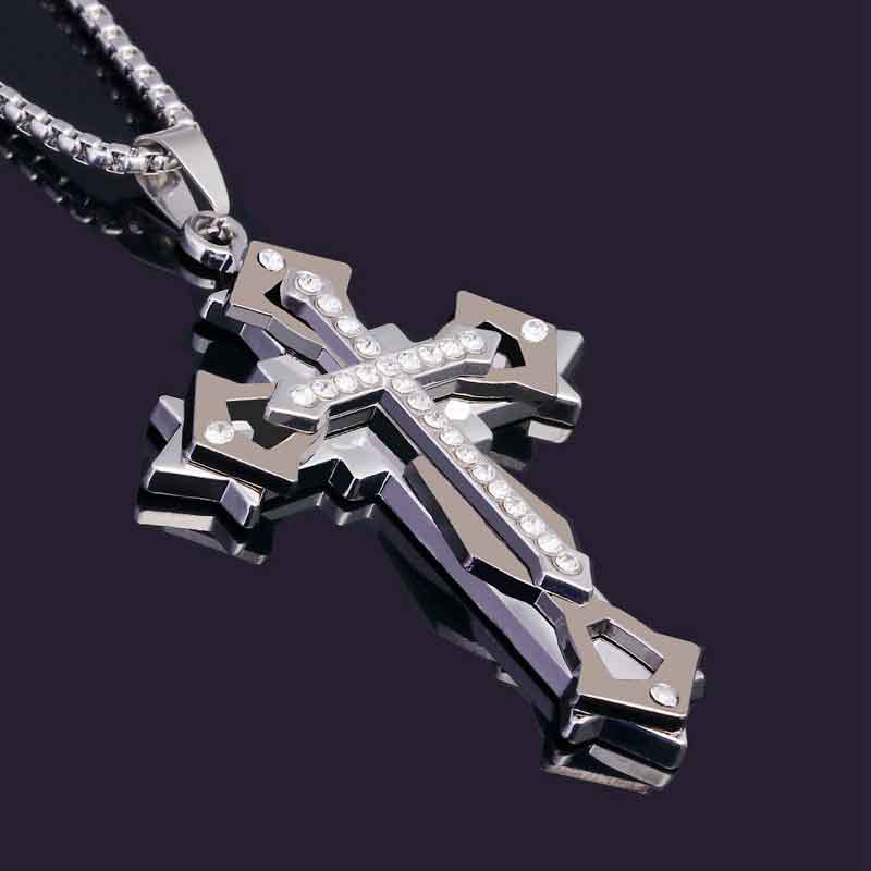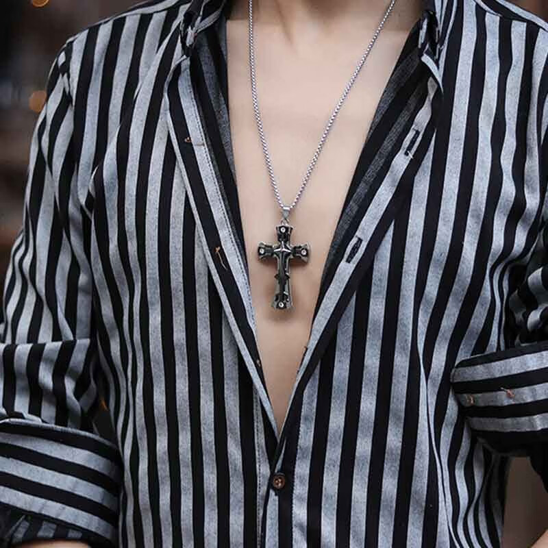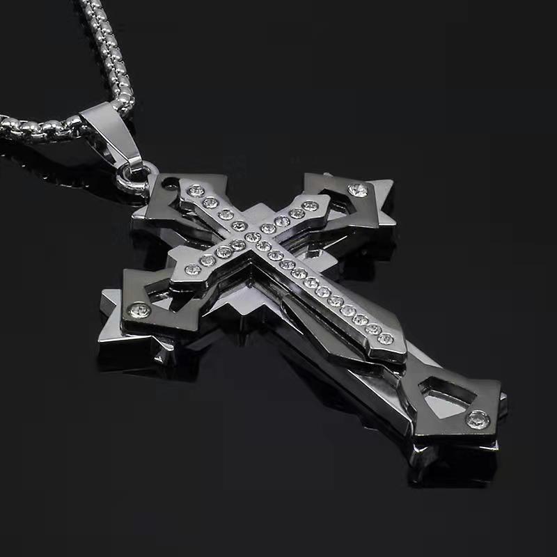 Cai Leiya European and American fashionable men's domineering cross necklace men's trendy hip-hop student pendant niche design sweater chain Holy cross necklace