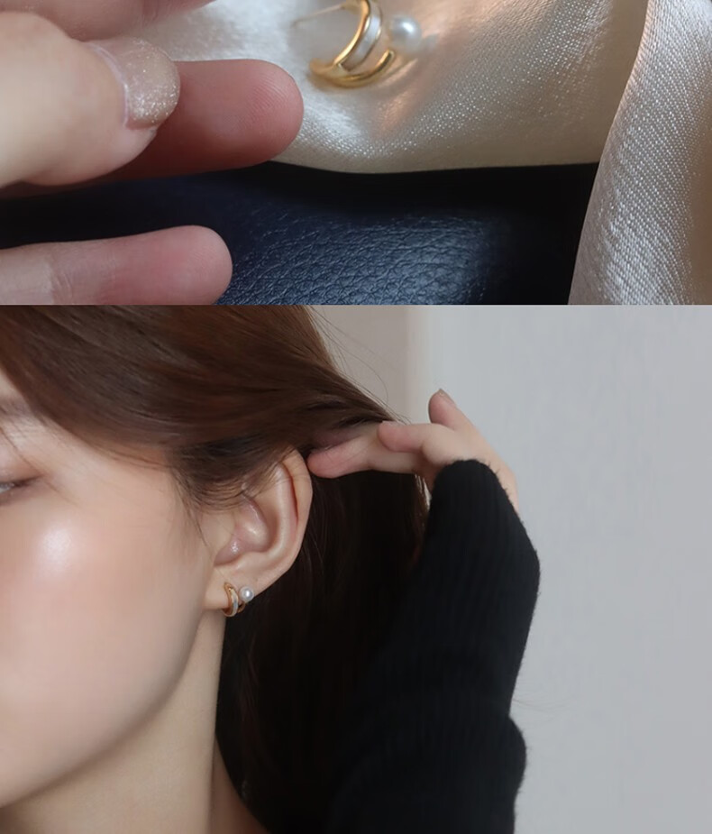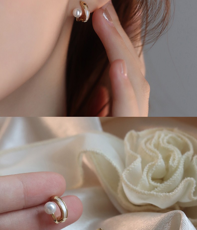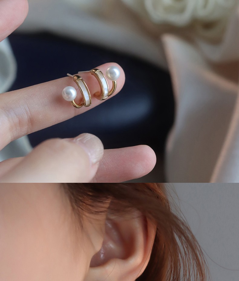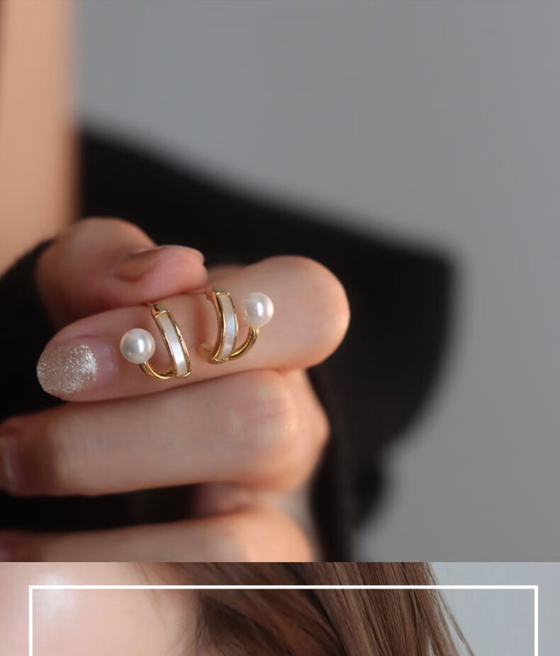 Idel's simple earrings, original design imitation mother-of-pearl earrings, versatile, simple and compact, a gift for your girlfriend, mother-of-pearl double-layered earrings E0835