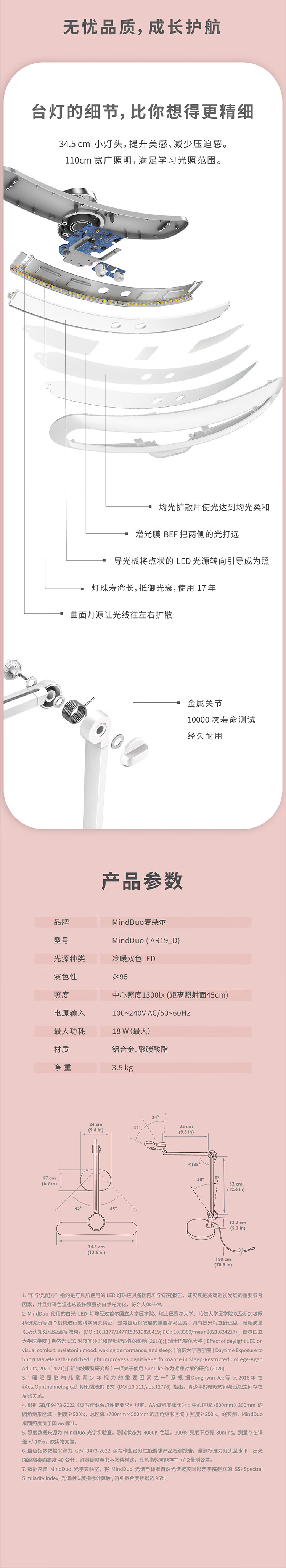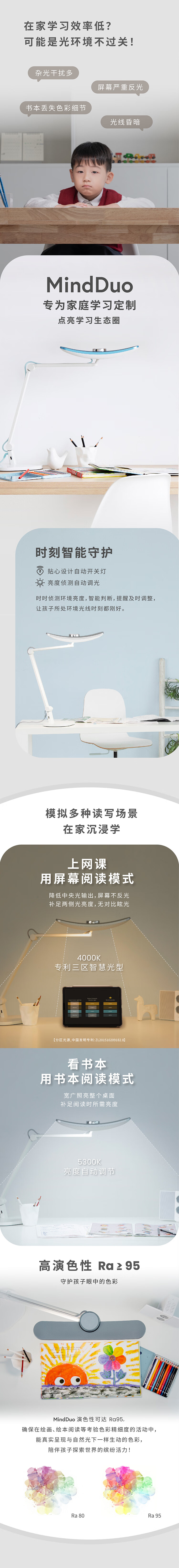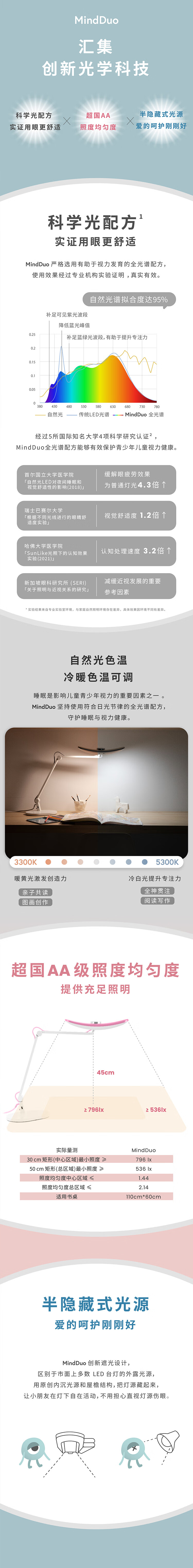 MindDuo eye protection table lamp full spectrum automatic light-on intelligent dimming children learning reading led eye protection lamp space silver