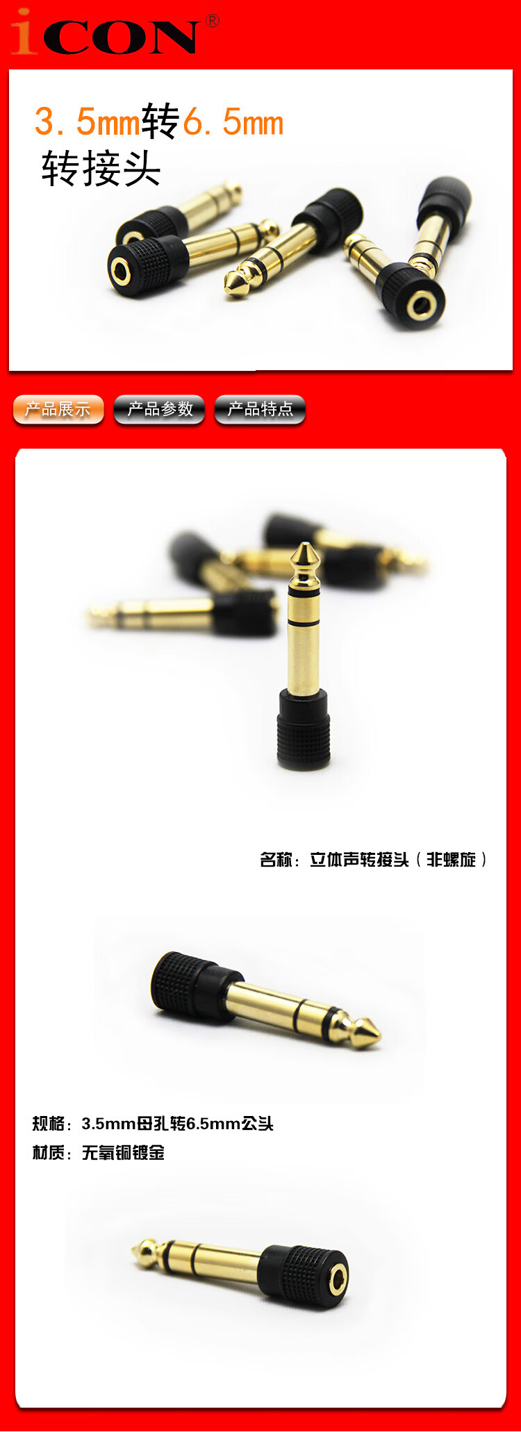 Aiken iCON 6.5mm male to 3.5mm female audio adapter suitable for sound card microphone preamplifier and headphone adapter single product
