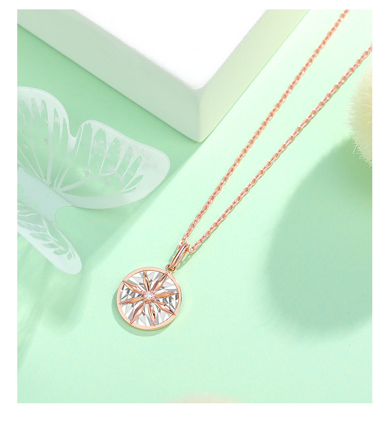 Gold Supreme (3DG Jewelery) 18K gold diamond pendant without necklace, women's lucky compass colored gold rose gold pendant, gold weight 0.7 grams, diamond 1 point