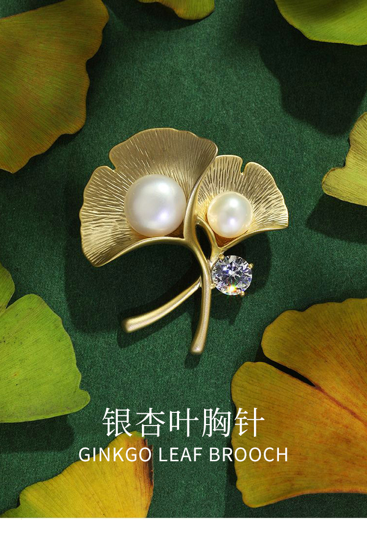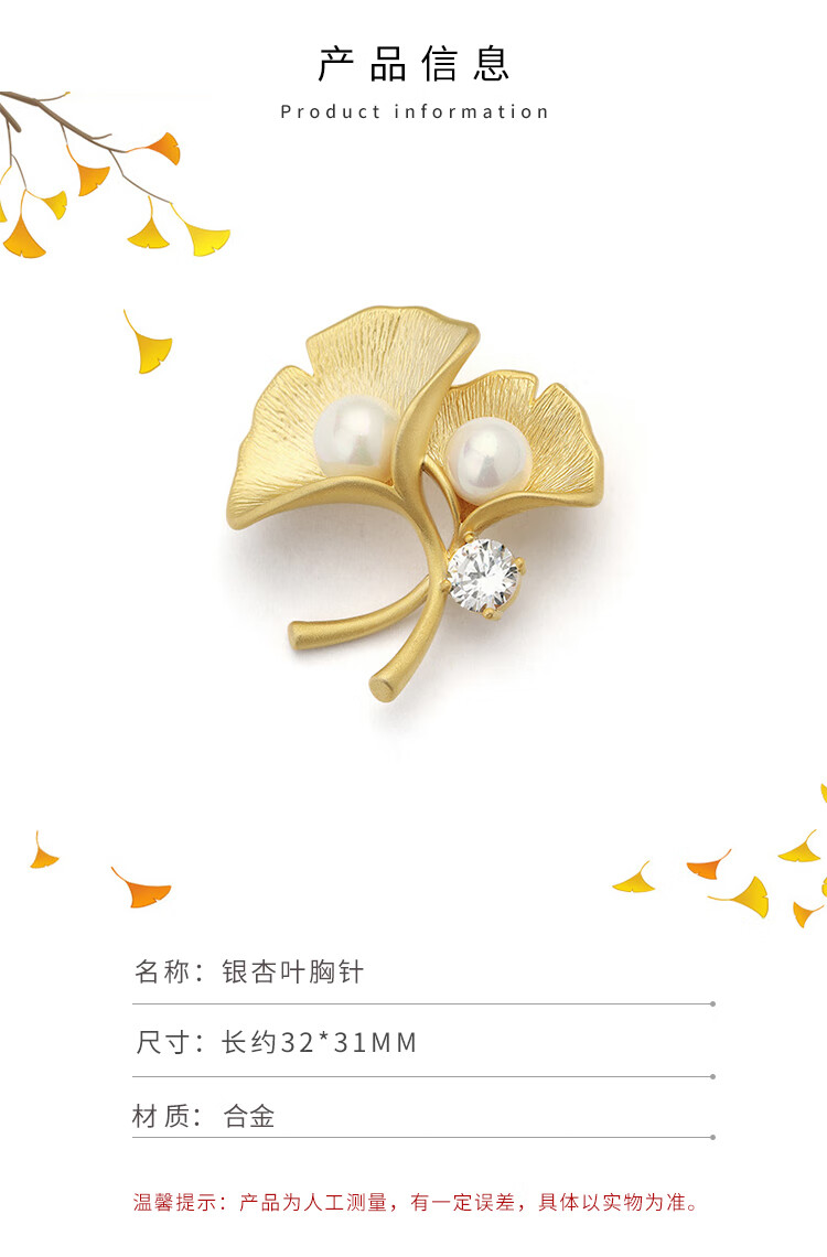 SENDME Ginkgo Leaf Brooch Women's High-end Corsage Suit Pin Fashion Birthday Gift for Girlfriend Ginkgo Leaf Imitation Pearl Brooch