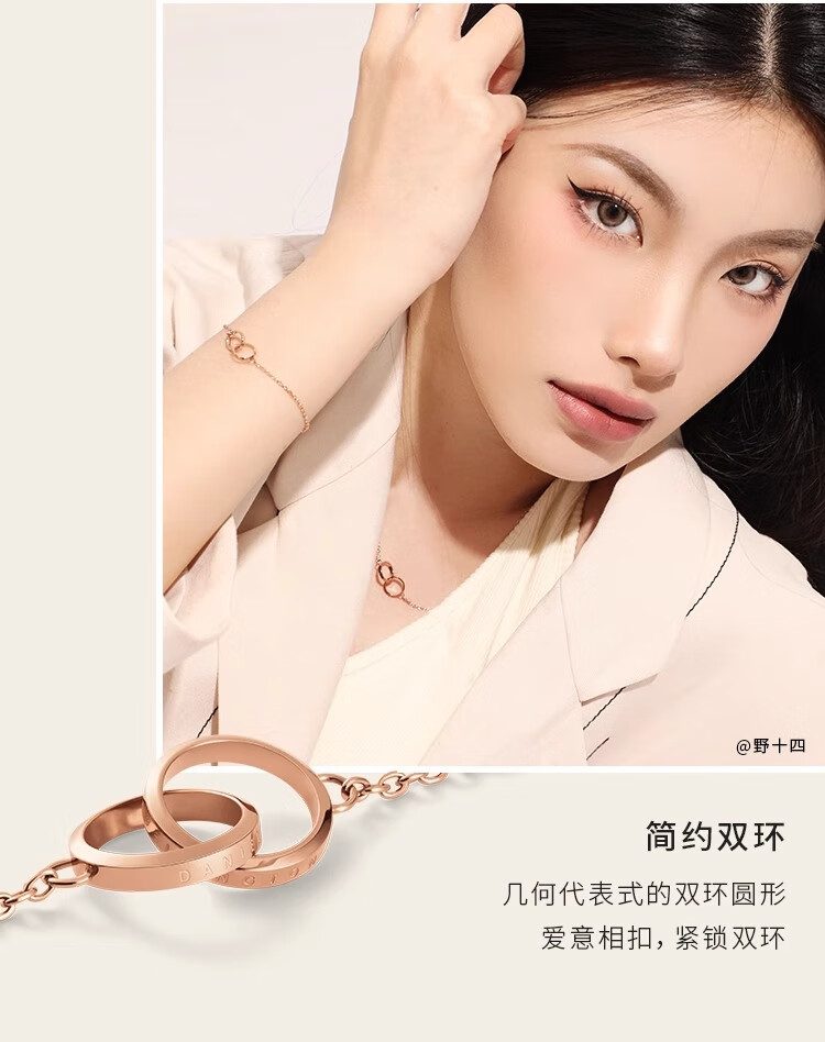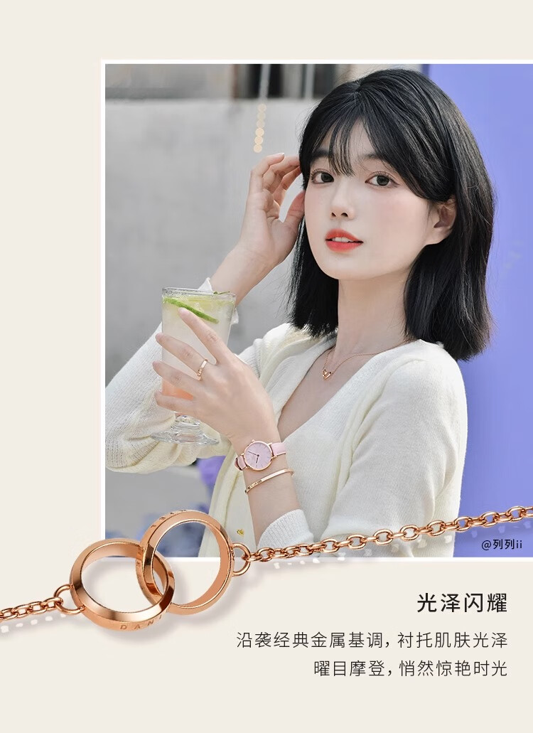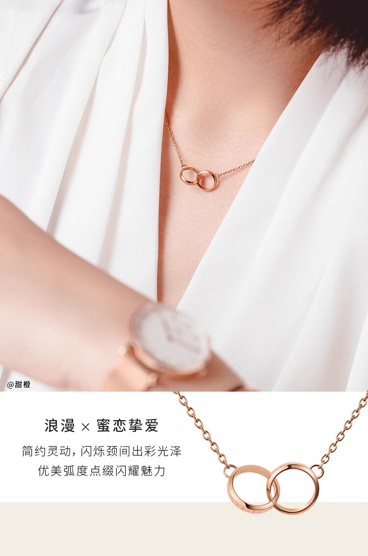 Daniel Wellington DW Necklace Women's Small Double Ring Simple Light Luxury Niche Design Clavicle Chain Birthday Gift for Girlfriend Rose Gold Bracelet 185mm-DW00400162