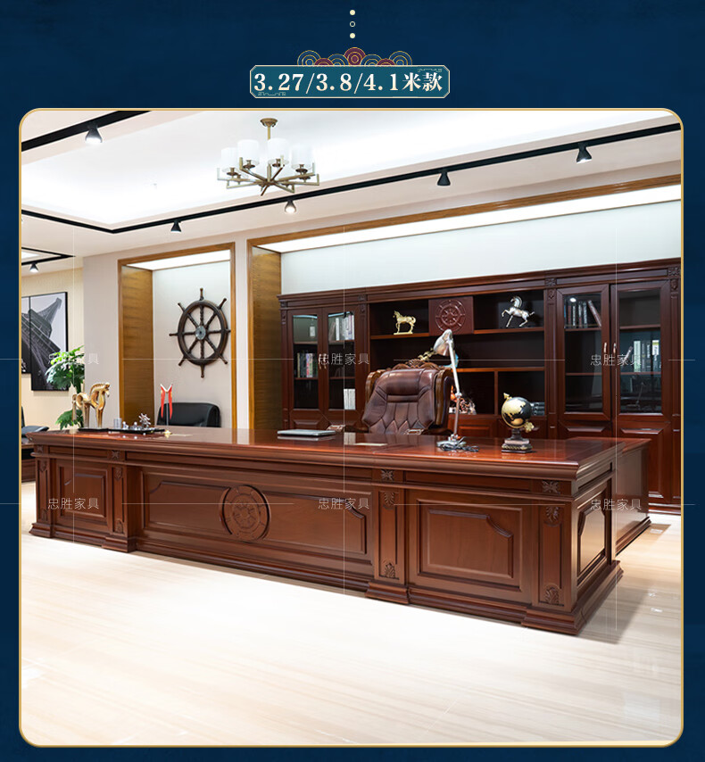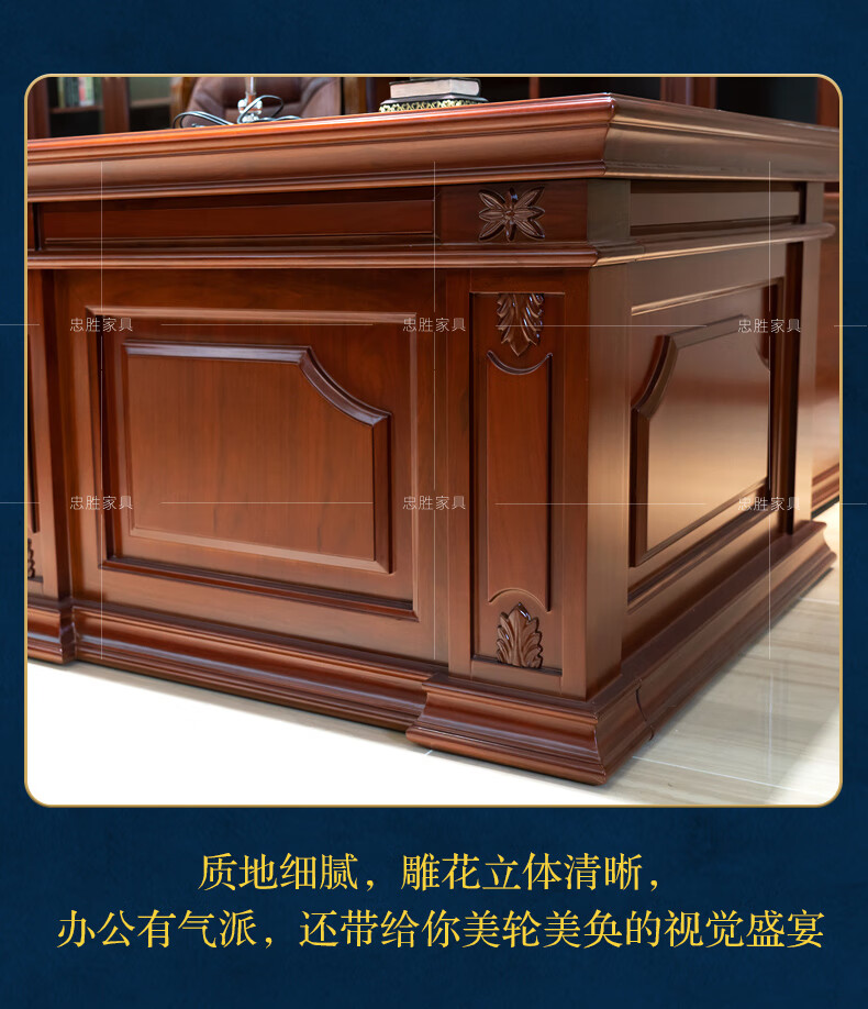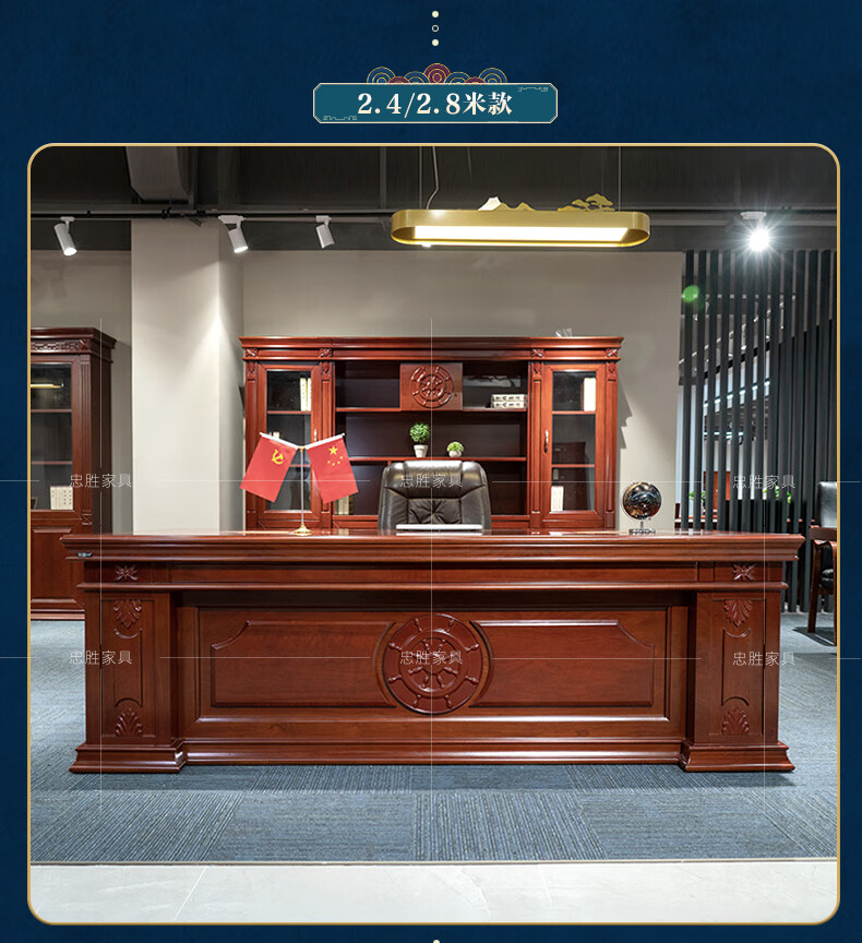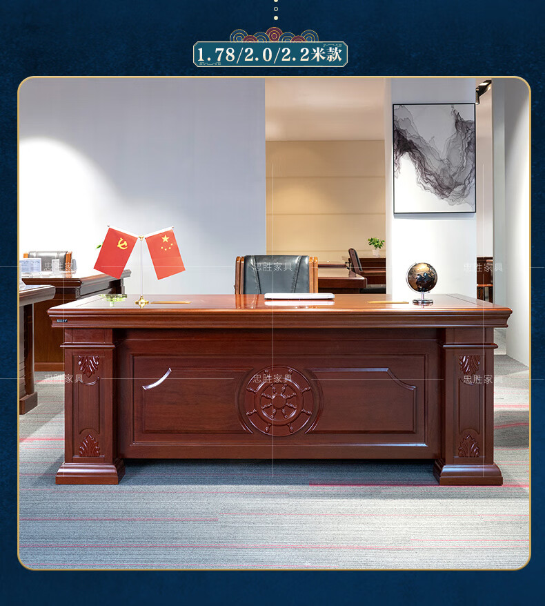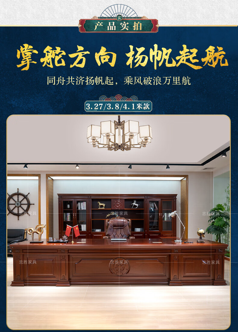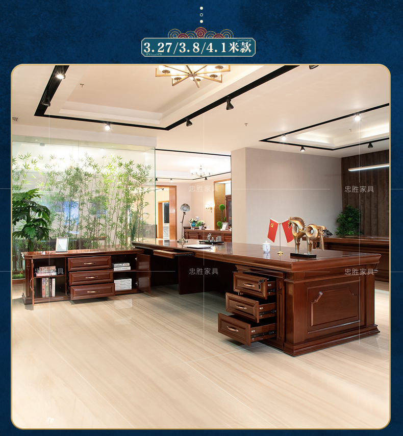 Zhongsheng Office Furniture Boss Desk President's Desk Chinese Style Chairman Wood Veneer Office Boss Desk Manager Desk Executive Desk Supervisor Desk Long Coffee Table 1400*700*450 Regular