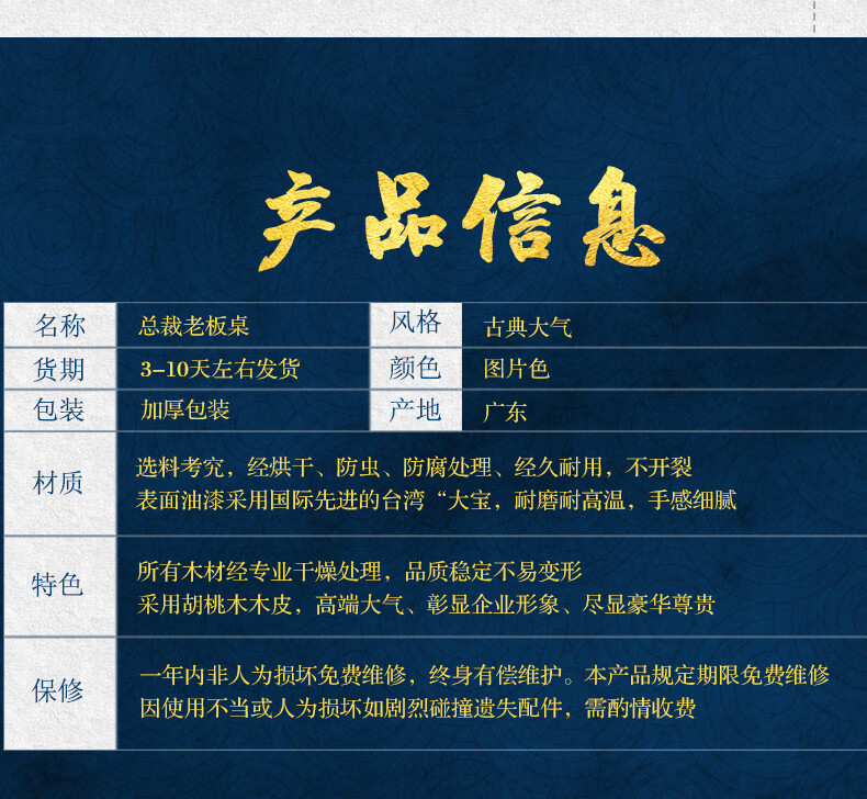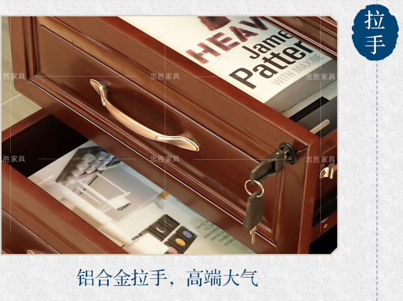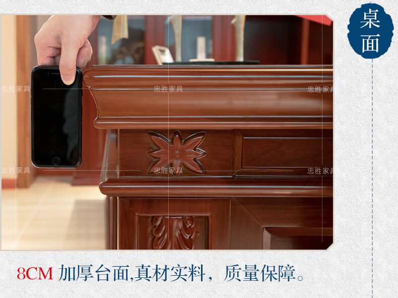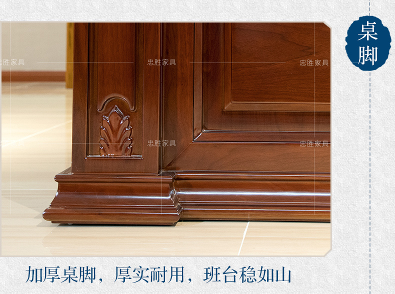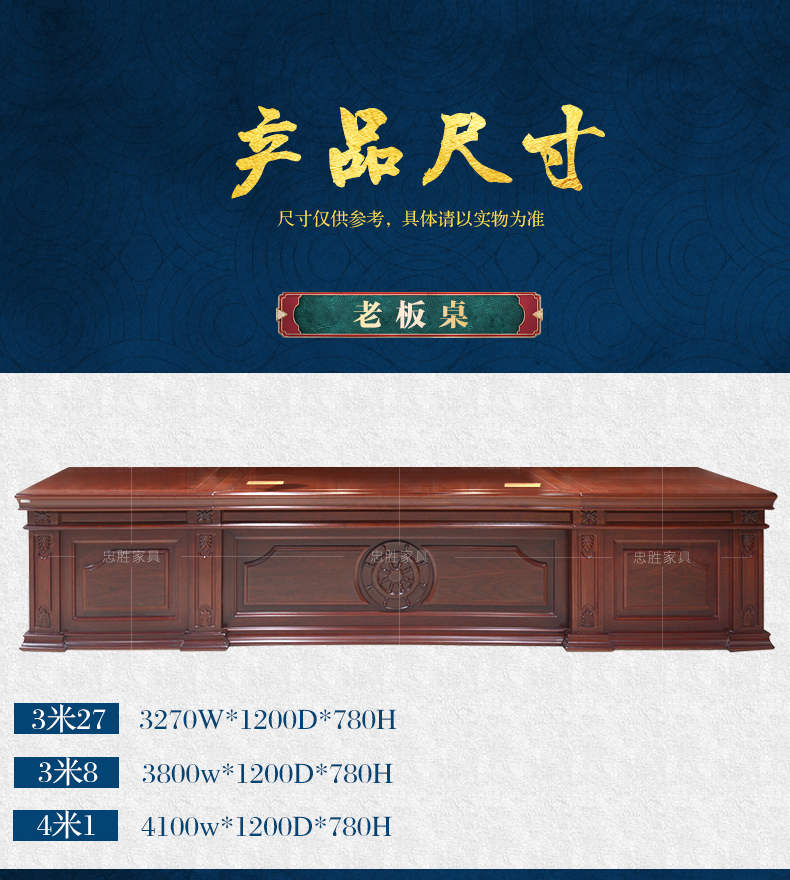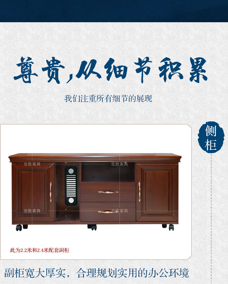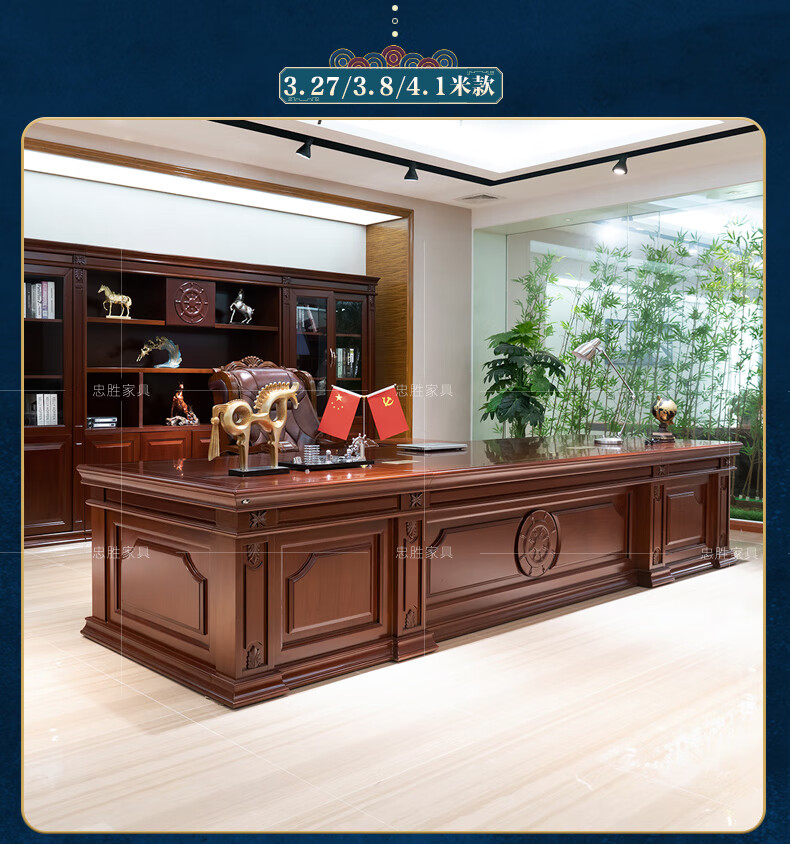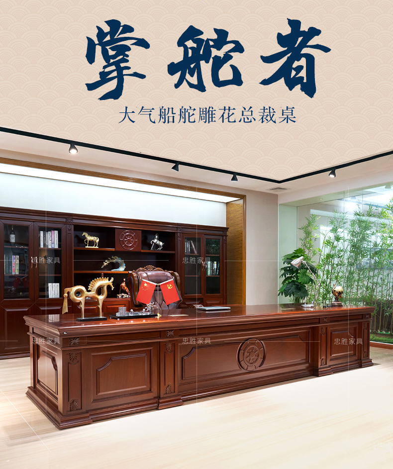 Zhongsheng Office Furniture Boss Desk President's Desk Chinese Style Chairman Wood Veneer Office Boss Desk Manager Desk Executive Desk Supervisor Desk Long Coffee Table 1400*700*450 Regular
