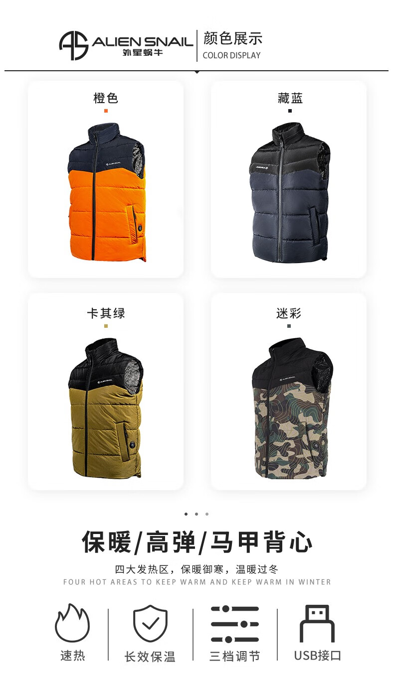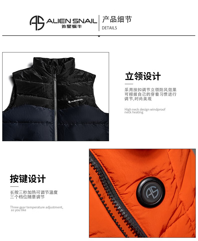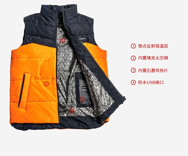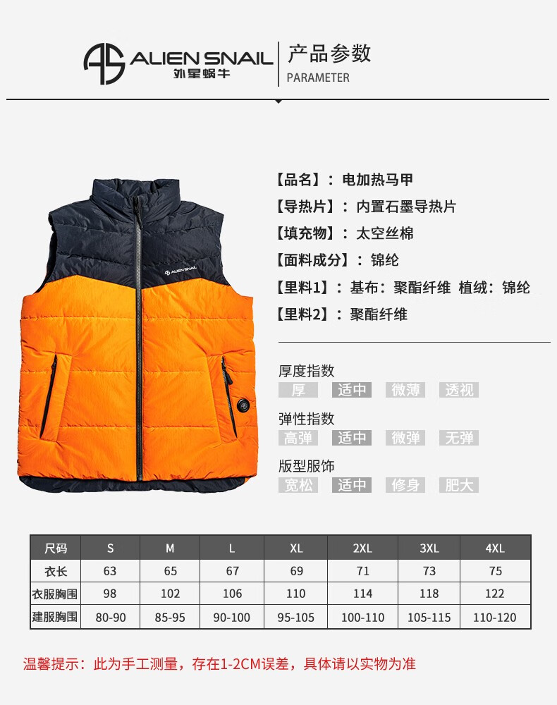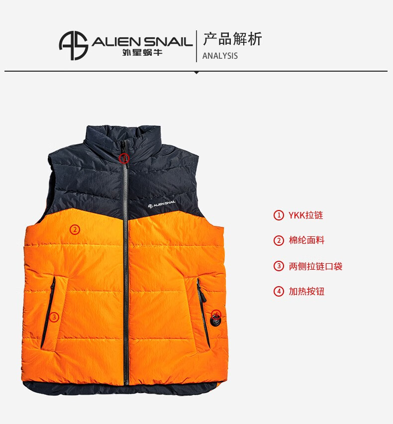 Alien Snail Electric Heated Vest Washable Winter Motorcycle Riding Clothing for Men and Women Warm Motorcyclist Clothes Orange XL