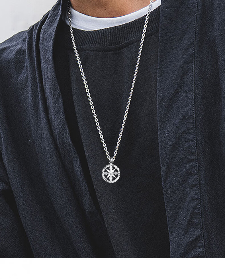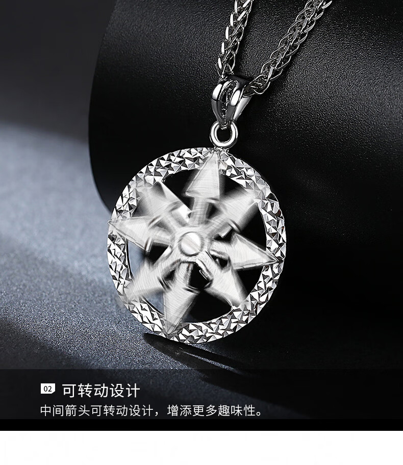 Misu PT950 platinum compass pendant for men. Platinum compass pendant can be rotated for birthdays. Weighs 5.4-5.6 grams + comes with leather cord.