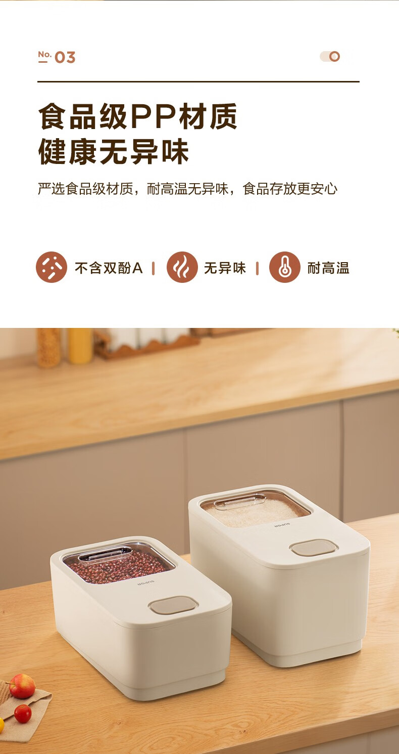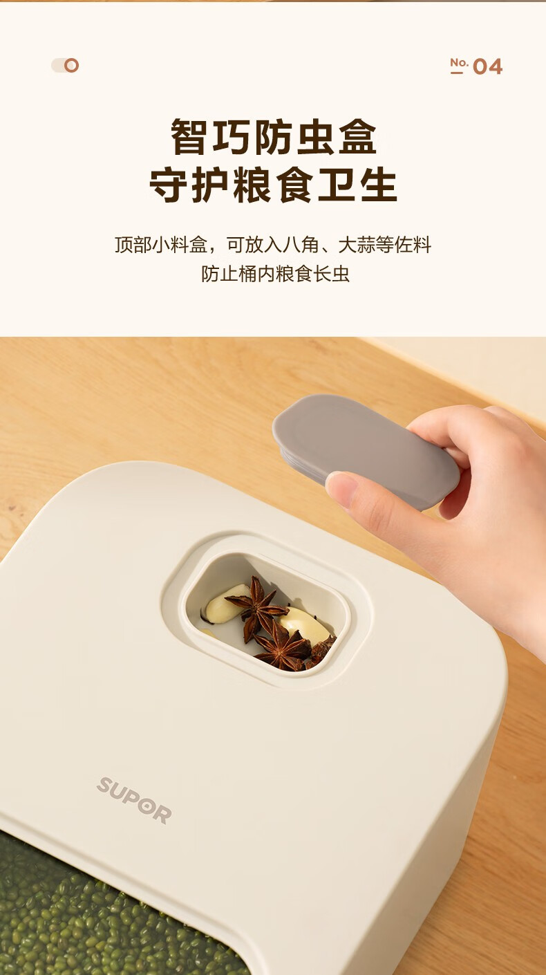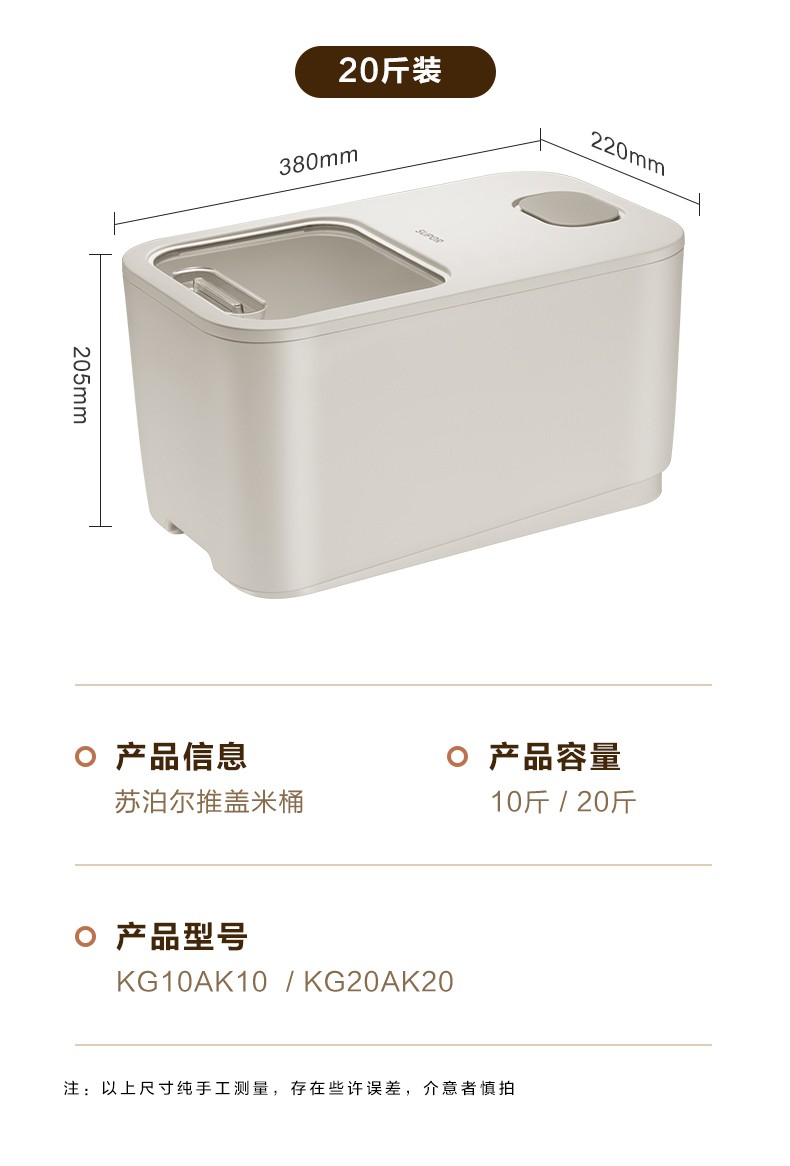 Supor rice bucket insect-proof and moisture-proof sealed household rice box for flour storage and thickened rice storage 10 Jin Jin equals 0.5 kg 20 Jin Jin equals 0.5 kg 20 Jin Jin equals 0.5 kg Packing - Push-top rice bucket