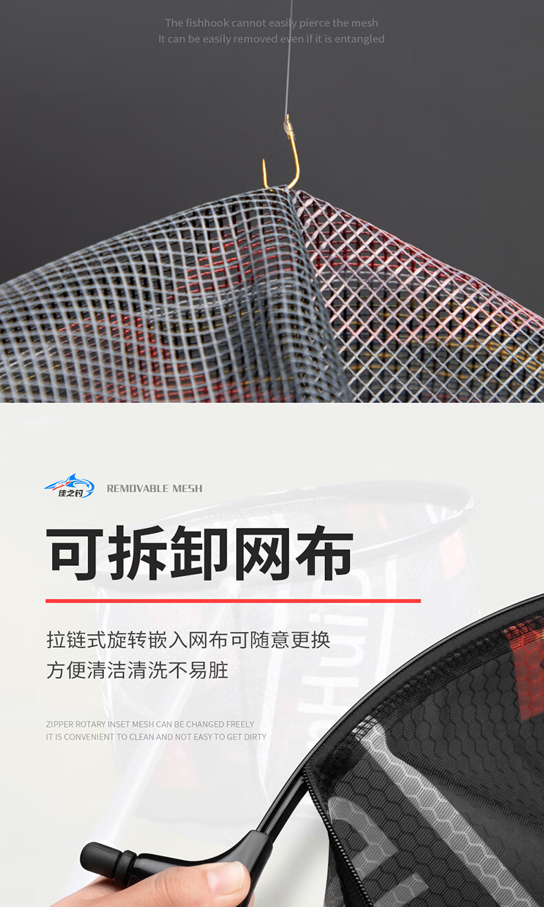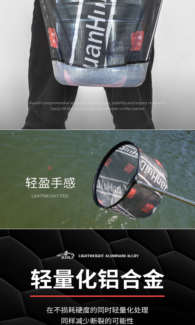 Jiazhi fishing net head aluminum alloy net bag fishing net lightweight net head large object black pit anti-hook copy net fishing gear copy net 40cm black round aluminum alloy