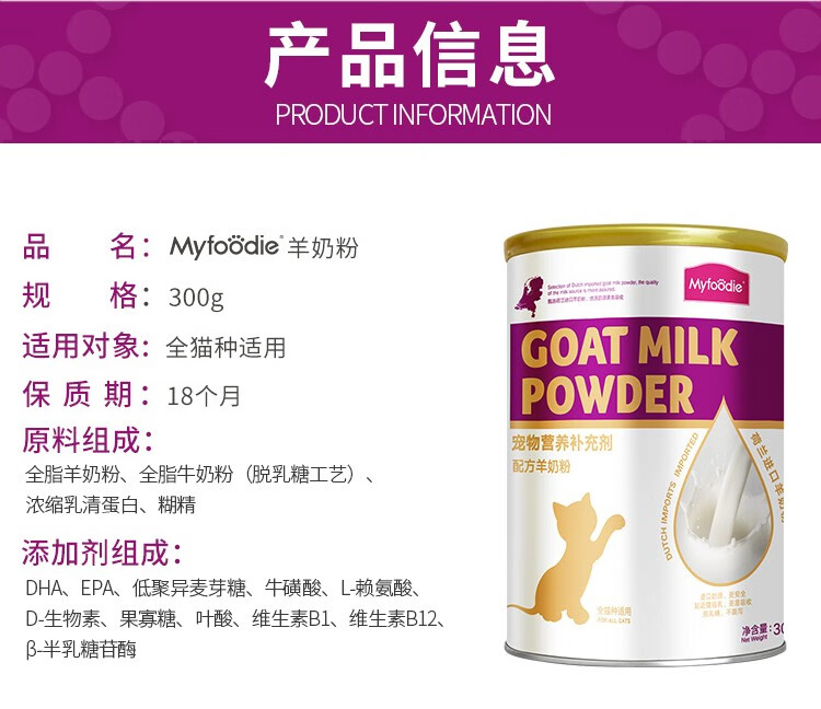 McFoody Wang Xiaomiao Pet Goat Milk Powder 300g Newborn Cats Dog Milk Powder Kittens Adult Cats Pregnancy Calcium Supplement Nutritional Nutrition McFoody Cat Milk Powder 300g