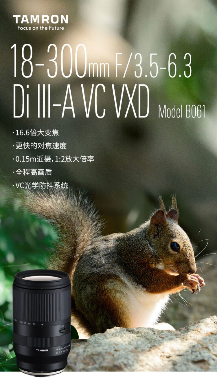 Tamron B061 18-300mm F/3.5-6.3 VC anti-shake telephoto large zoom 18-300 mirrorless lens travel half-frame 18300 E-mount/X-mount/Z-mount/RF-S mount Fuji X mount official standard package free Tamron UV filter gift pack