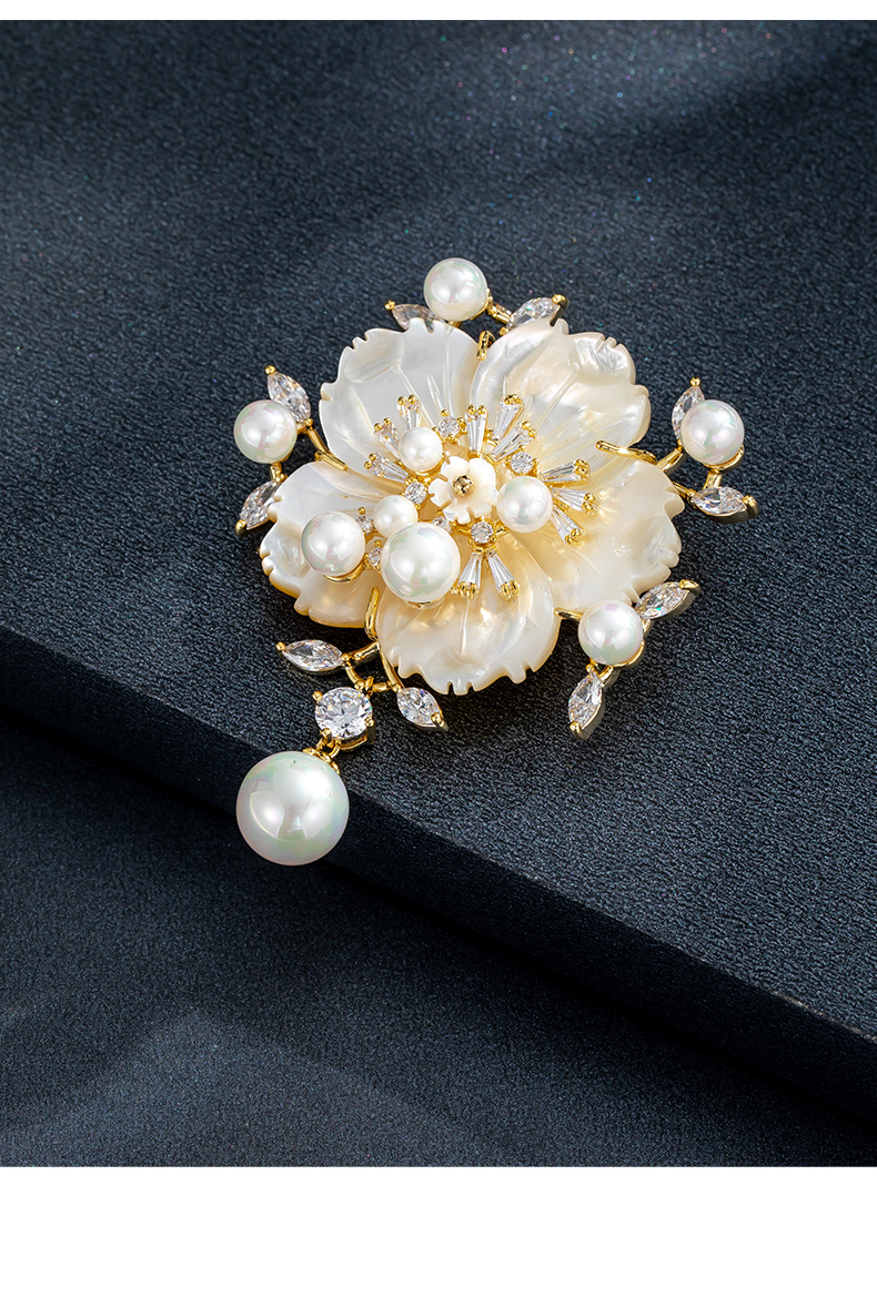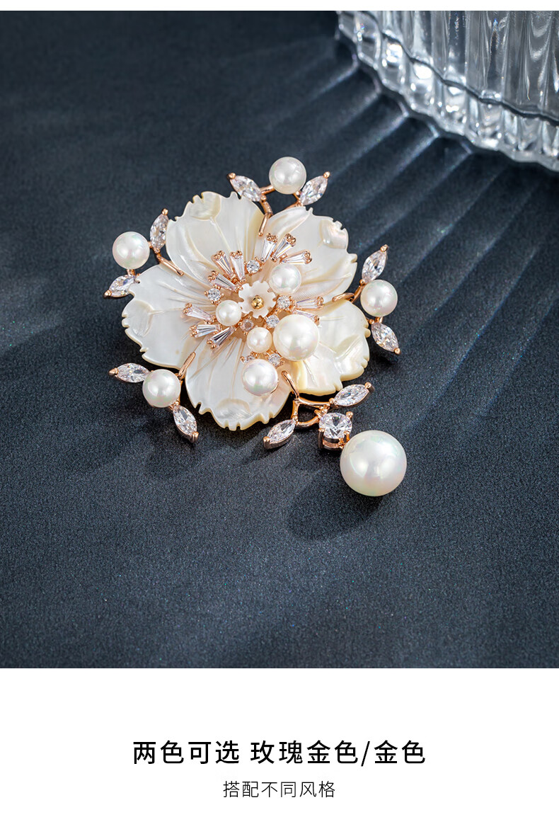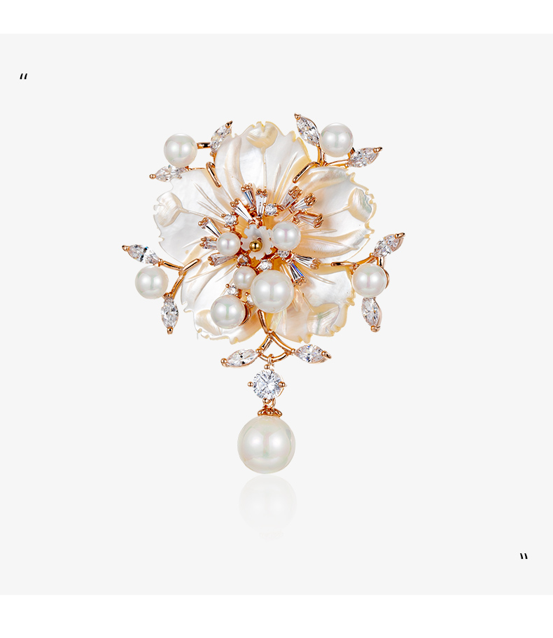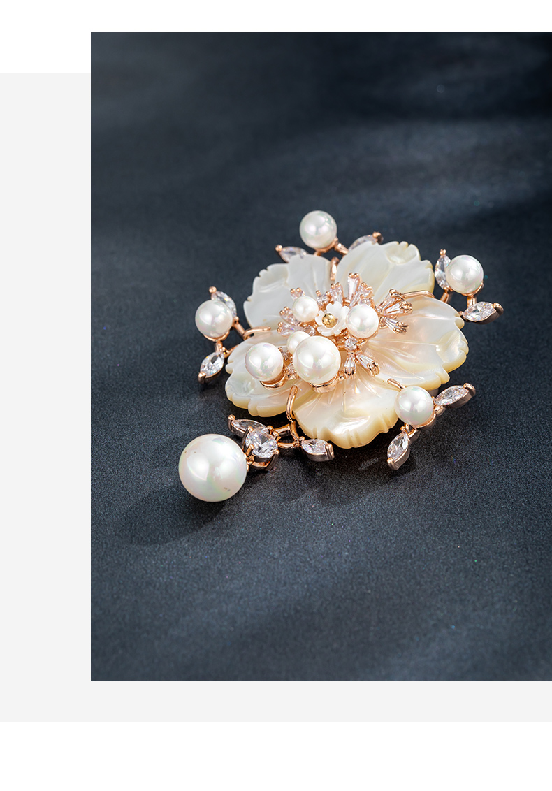 Chakra flower high-end women's new high-end pearl brooch suit decoration jewelry gift luxury goods rose gold