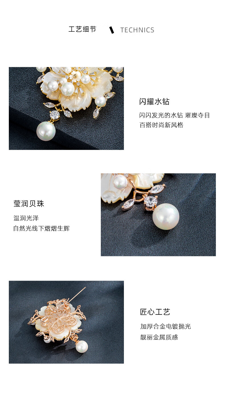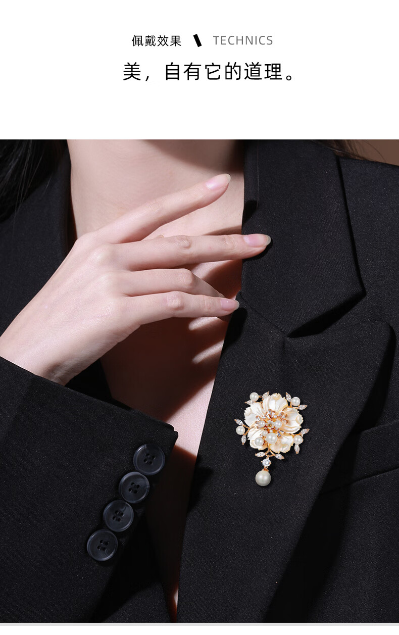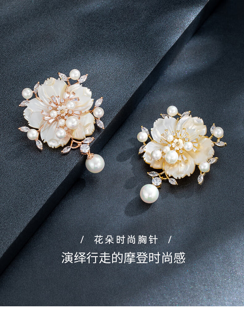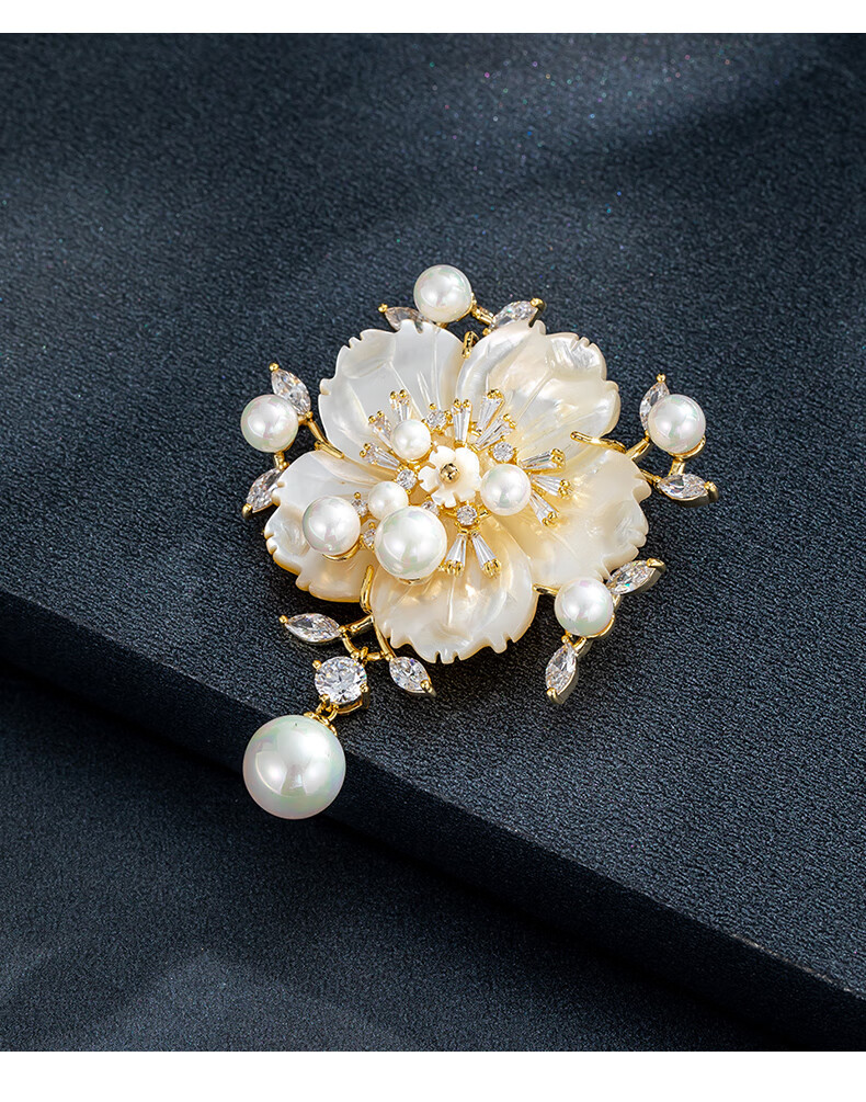 Chakra flower high-end women's new high-end pearl brooch suit decoration jewelry gift luxury goods rose gold