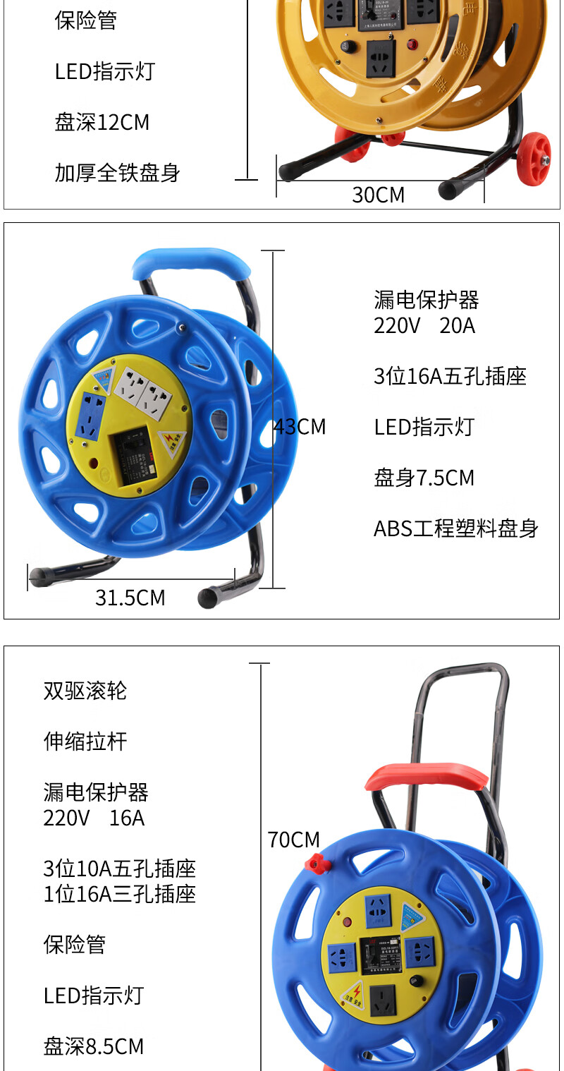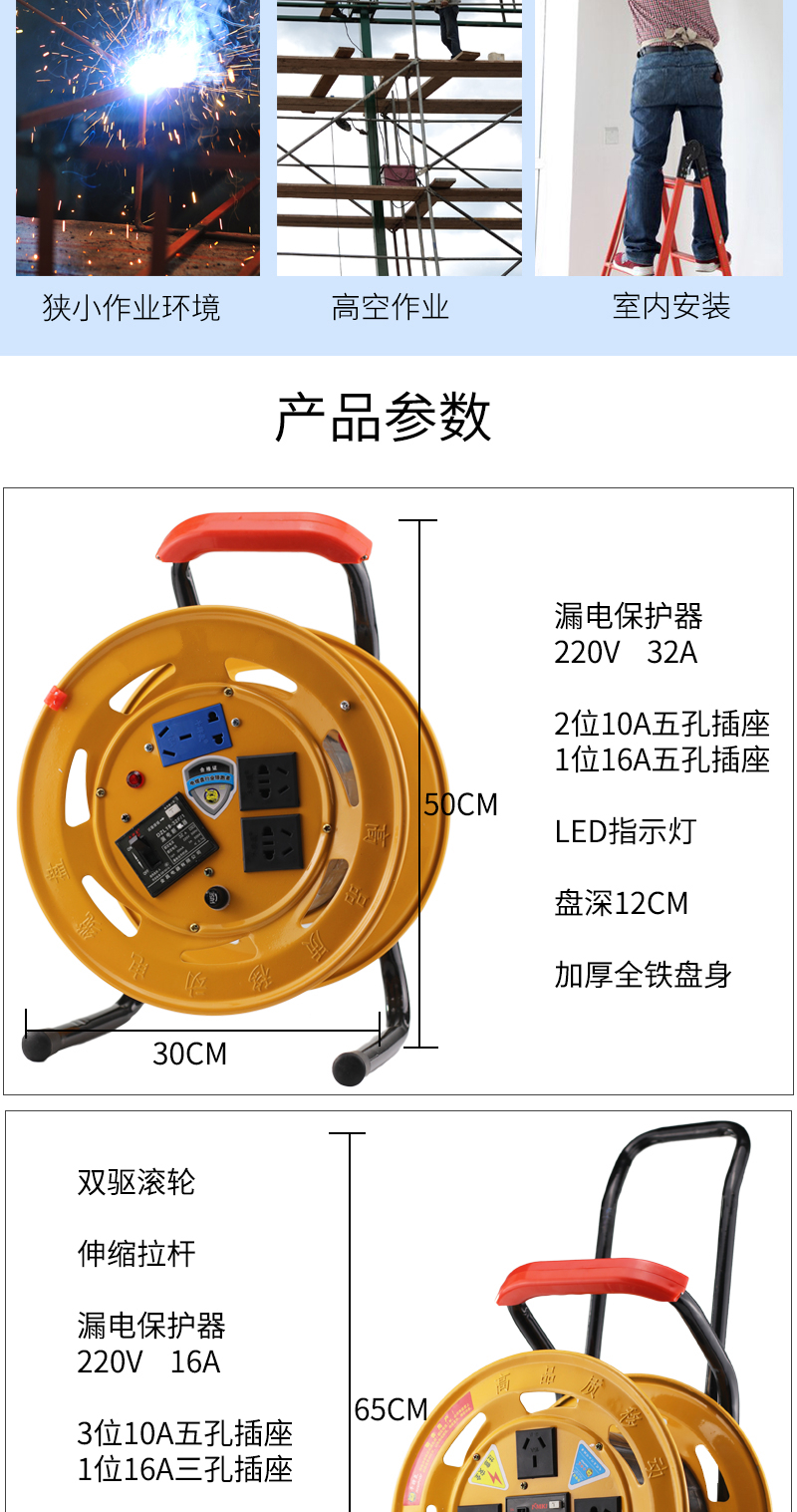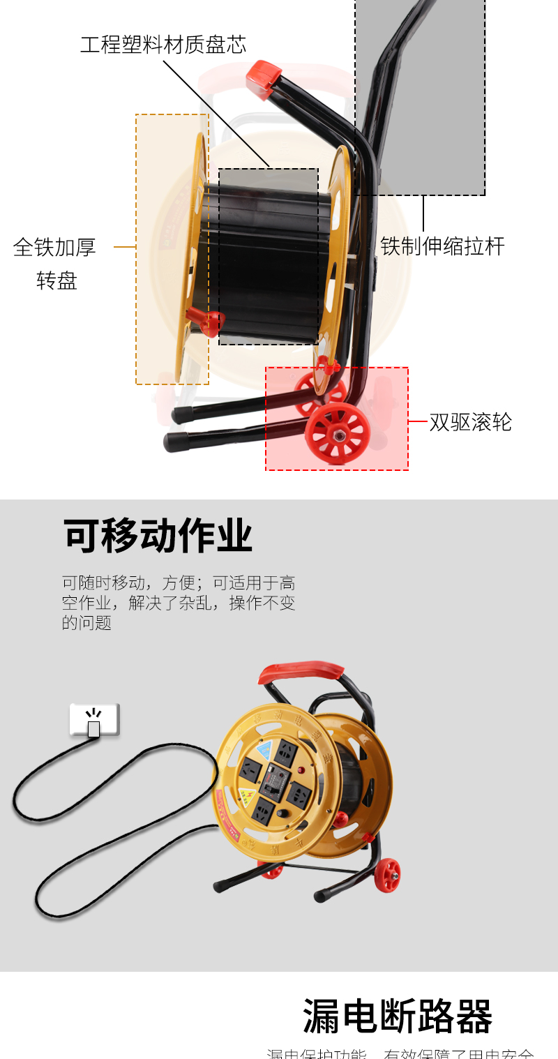 Chuangliheng portable cable reel roller reel empty reel reel cable reel drag reel spool wire reel take-up black plastic anti-fall no socket cable reel