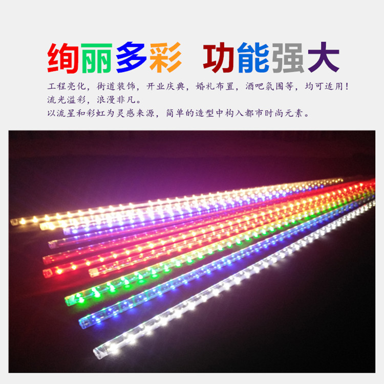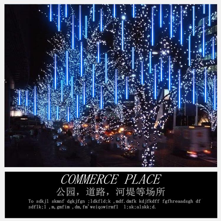 Meteor shower LED lights colorful flowing water lights flashing string lights full of stars outdoor waterproof hanging tree decoration lanterns tree lights blue double-sided light-waterproof 50cm*10 pcs-spacing 0.5 meters (with plug wire 5 meters, can be strung)