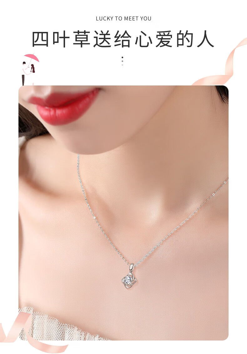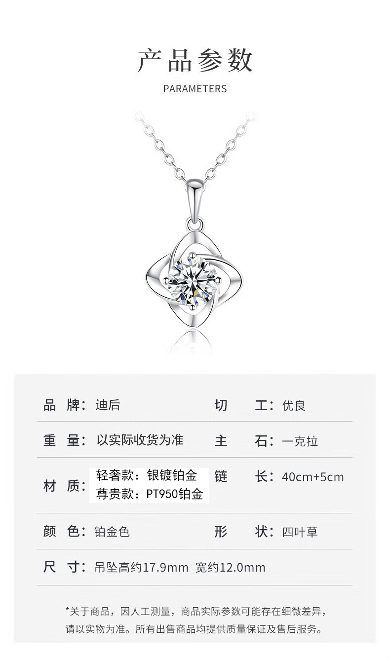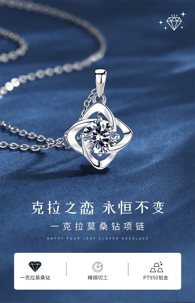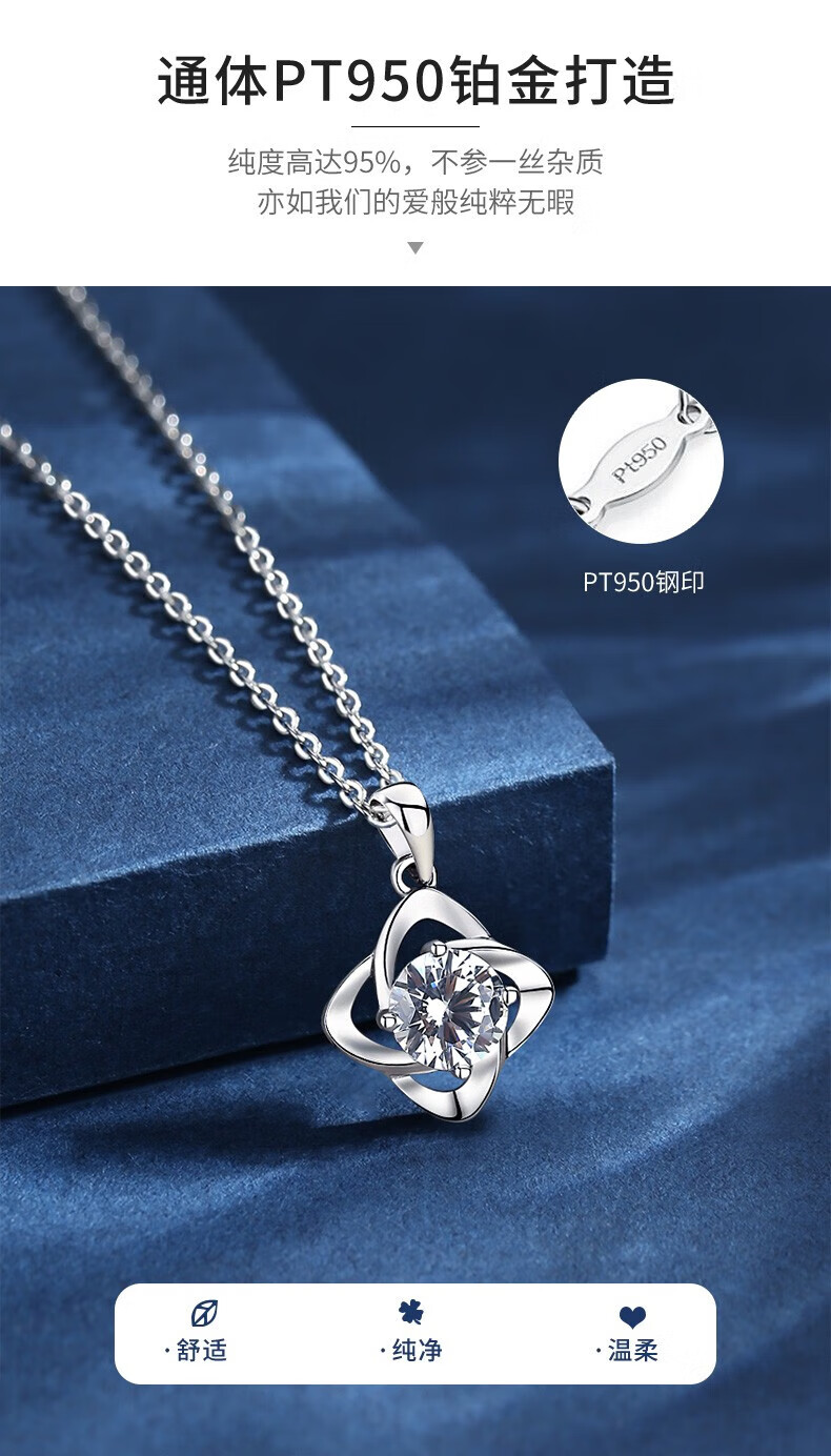 Dirholl PT950 platinum necklace for women platinum clavicle chain four-leaf clover fashion jewelry 520 Valentine's Day gift for girlfriend light luxury model-four-leaf clover necklace can be engraved