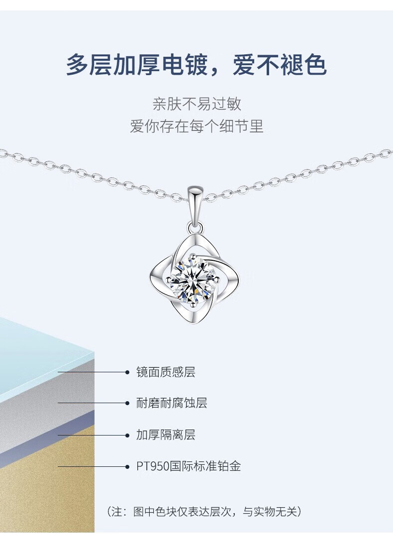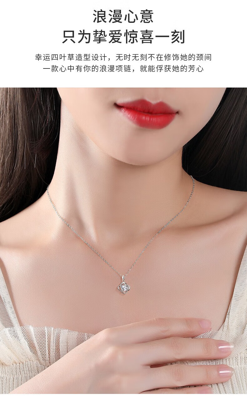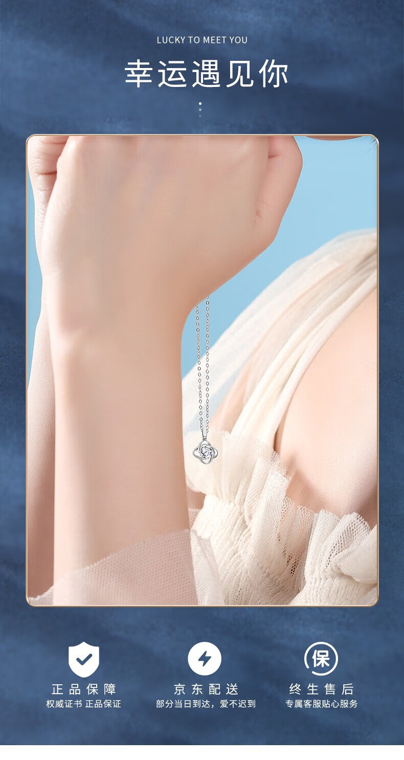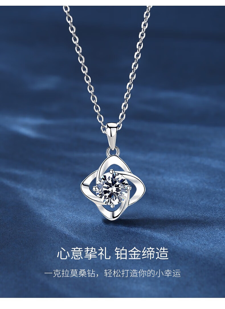 Dirholl PT950 platinum necklace for women platinum clavicle chain four-leaf clover fashion jewelry 520 Valentine's Day gift for girlfriend light luxury model-four-leaf clover necklace can be engraved