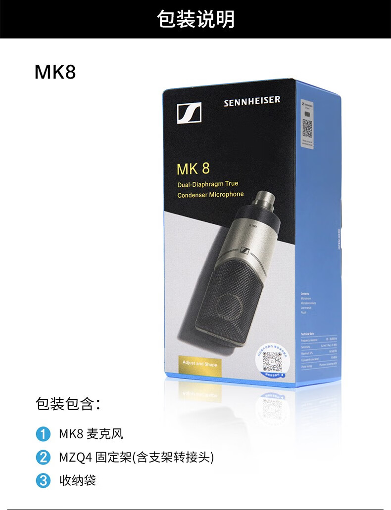 SENNHEISER MK8 dual-diaphragm professional vocal microphone condenser microphone anchor live broadcast karaoke singing recording engineer radio dubbing MK8 condenser microphone