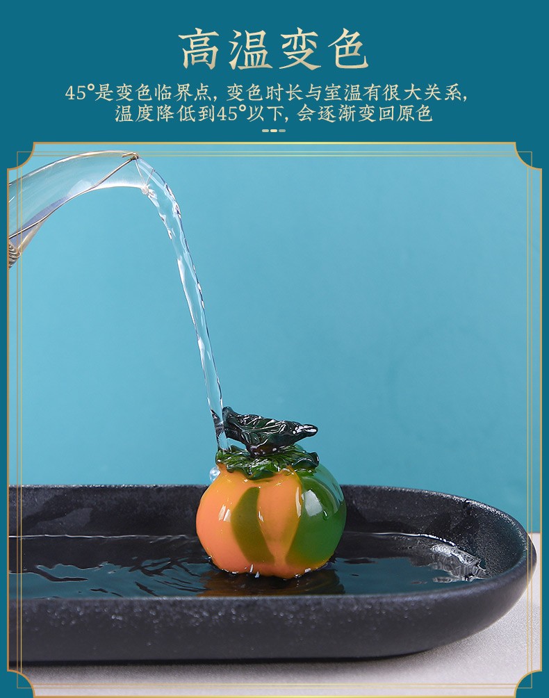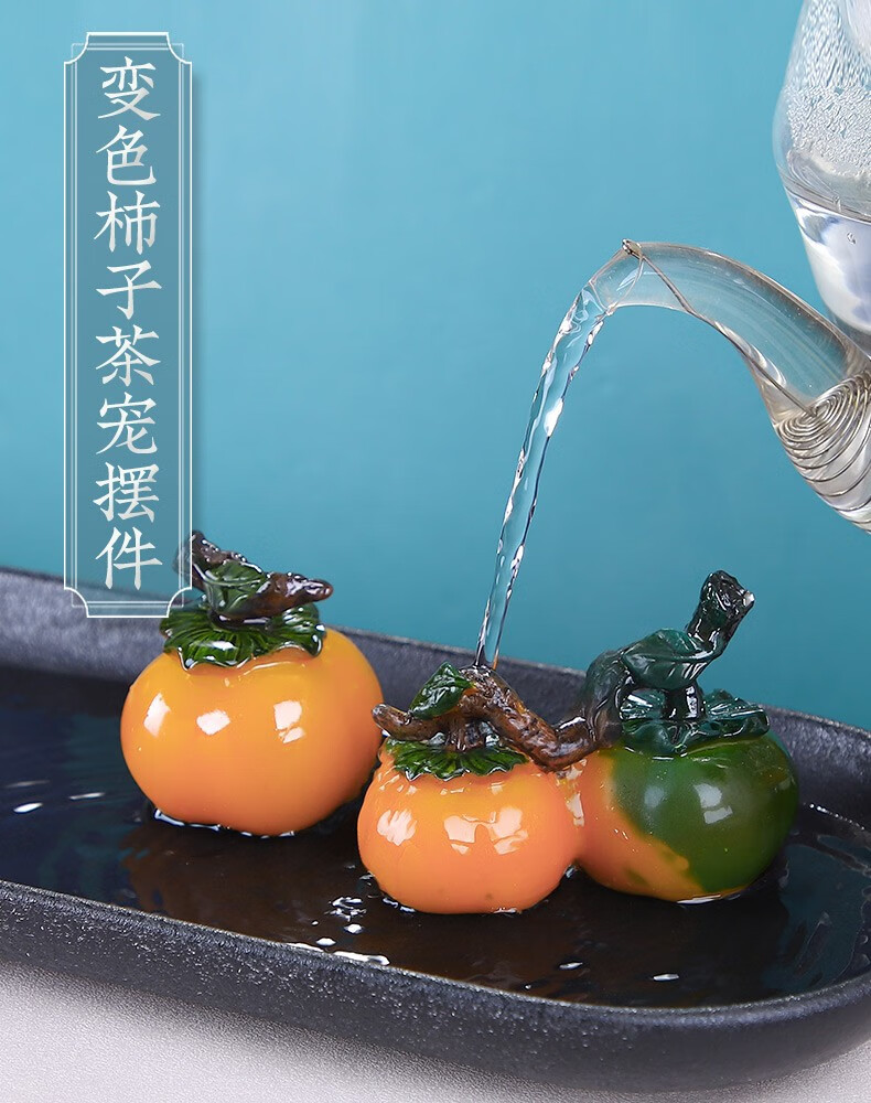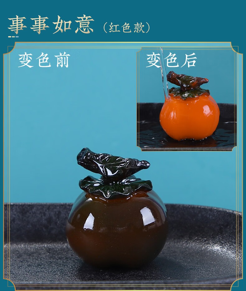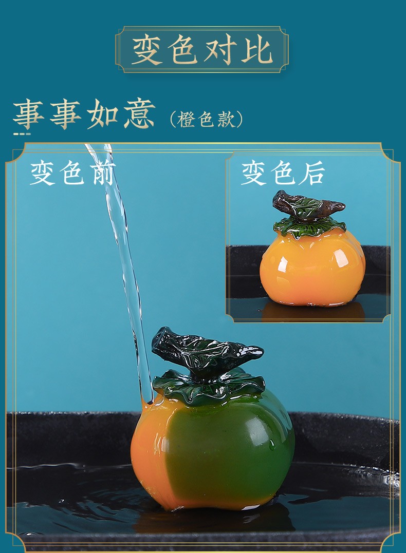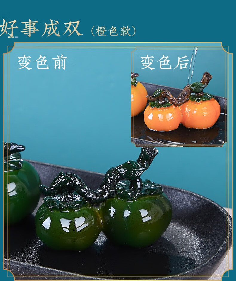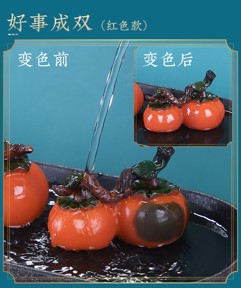 Good Kiln Persimmon tea pet ornaments that change color when exposed to water can be used to raise creative and cute tea toys, tea trays, tea ceremony tea accessories, color changing Two good things come in pairs