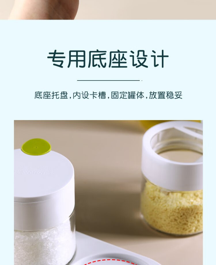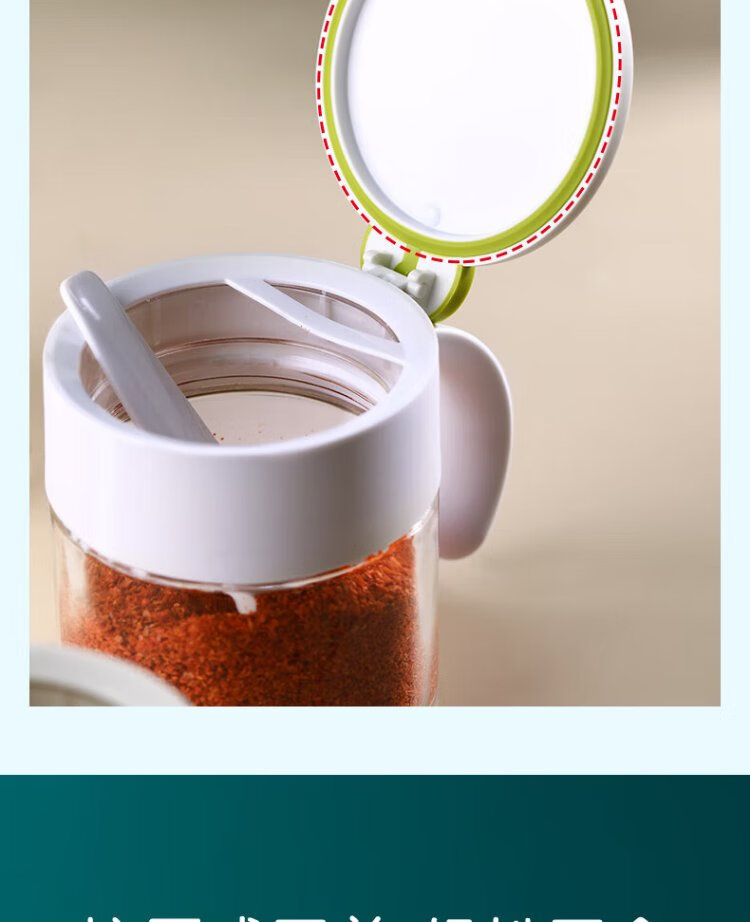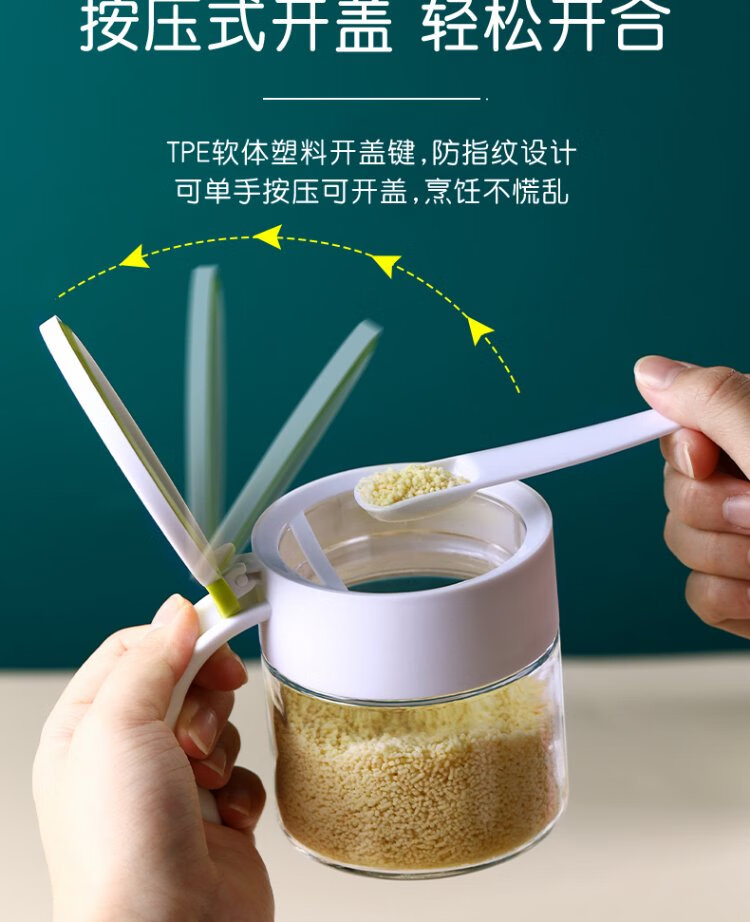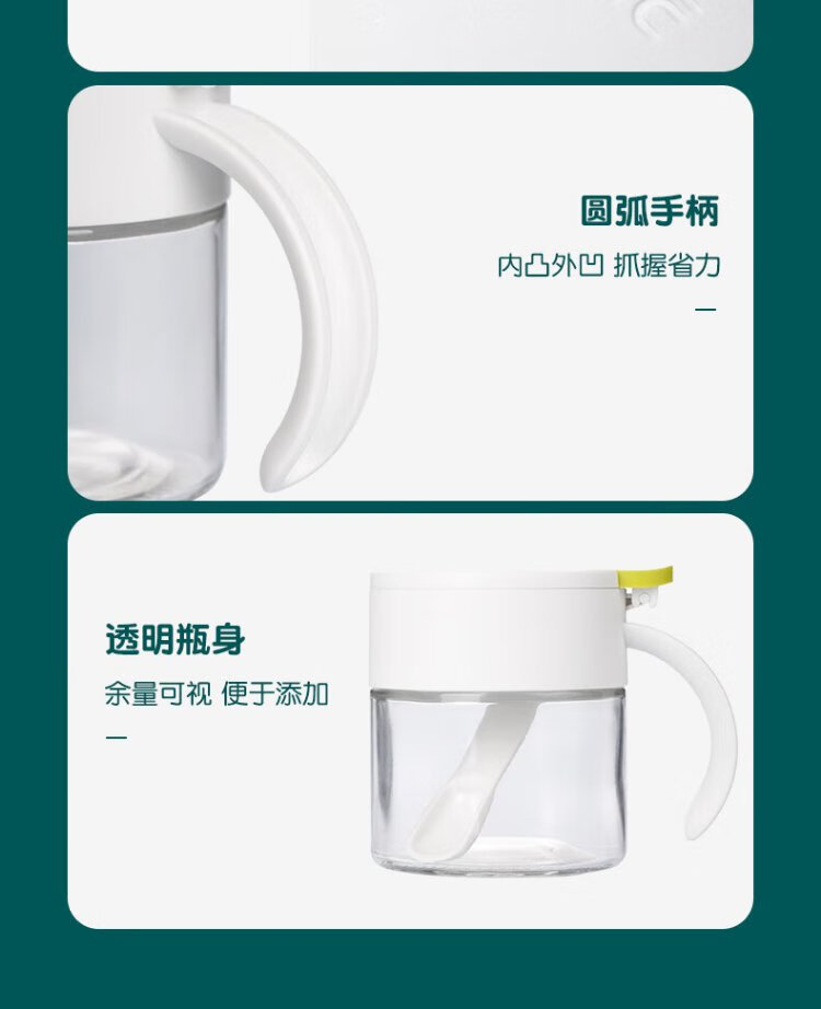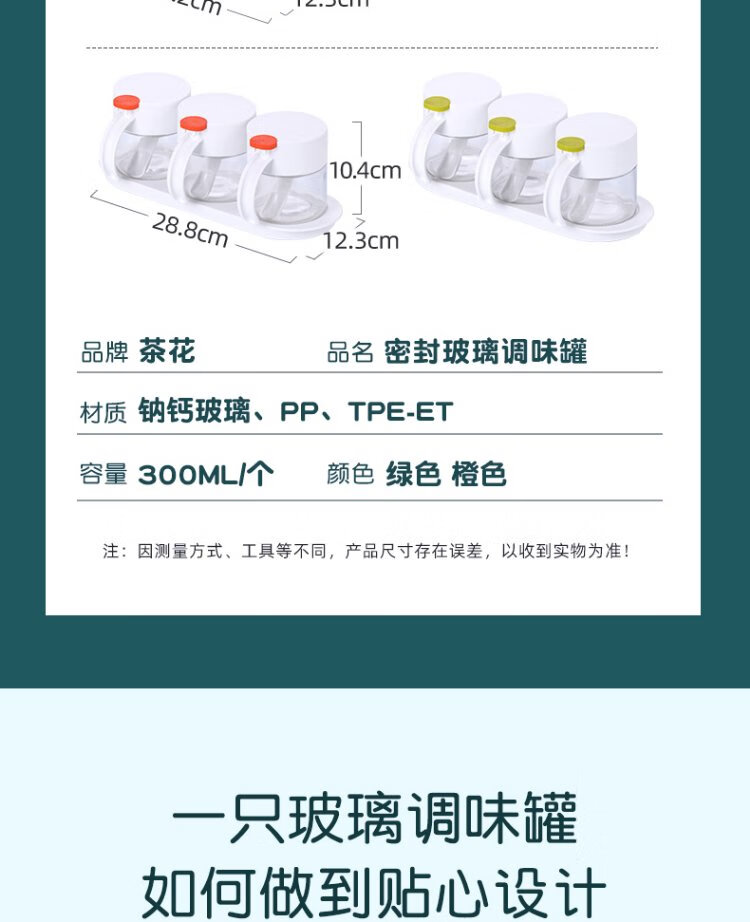 Camellia (CHAHUA) glass seasoning box household seasoning jar set salt shaker kitchen seasoning jar seasoning box seasoning green three-set set base + small spoon comes with sealing ring