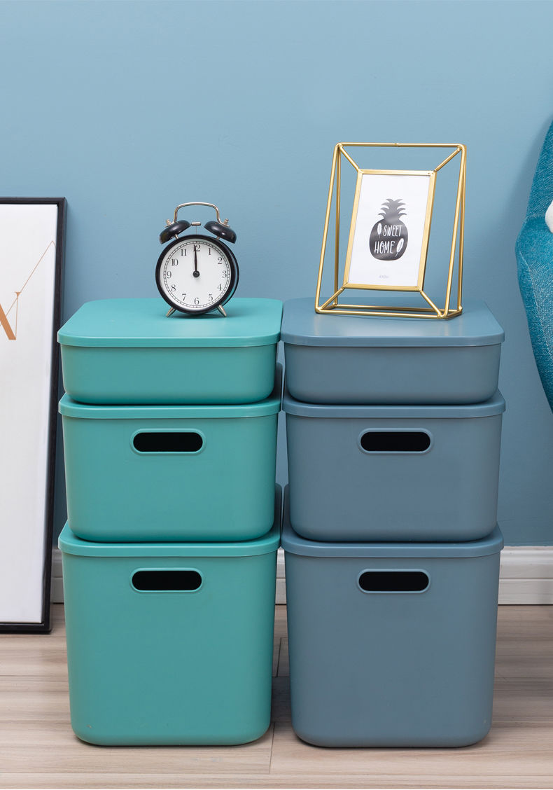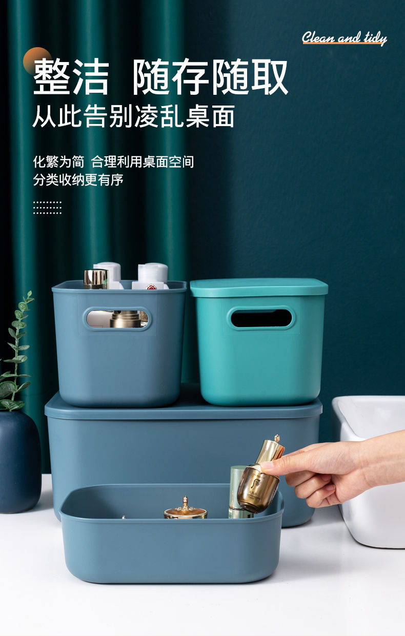 Qingfan sundries storage basket dormitory underwear and socks organization artifact plastic storage box Gentian green 36*25*24cm 24L tall extra large (36*25*24)