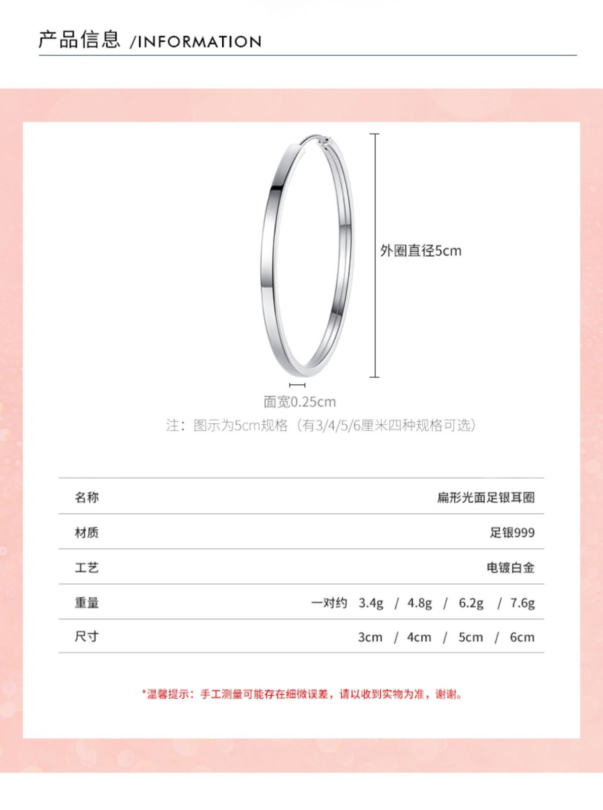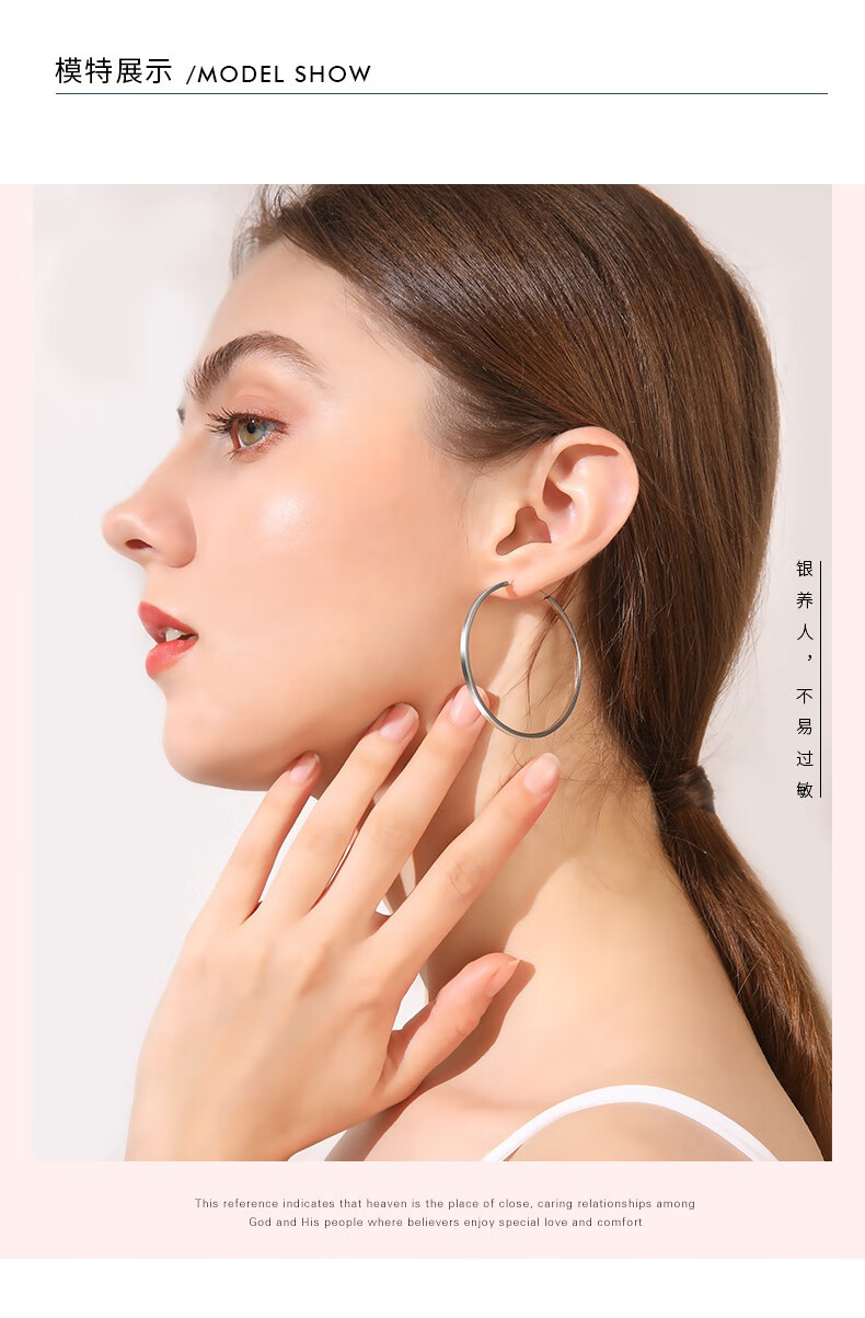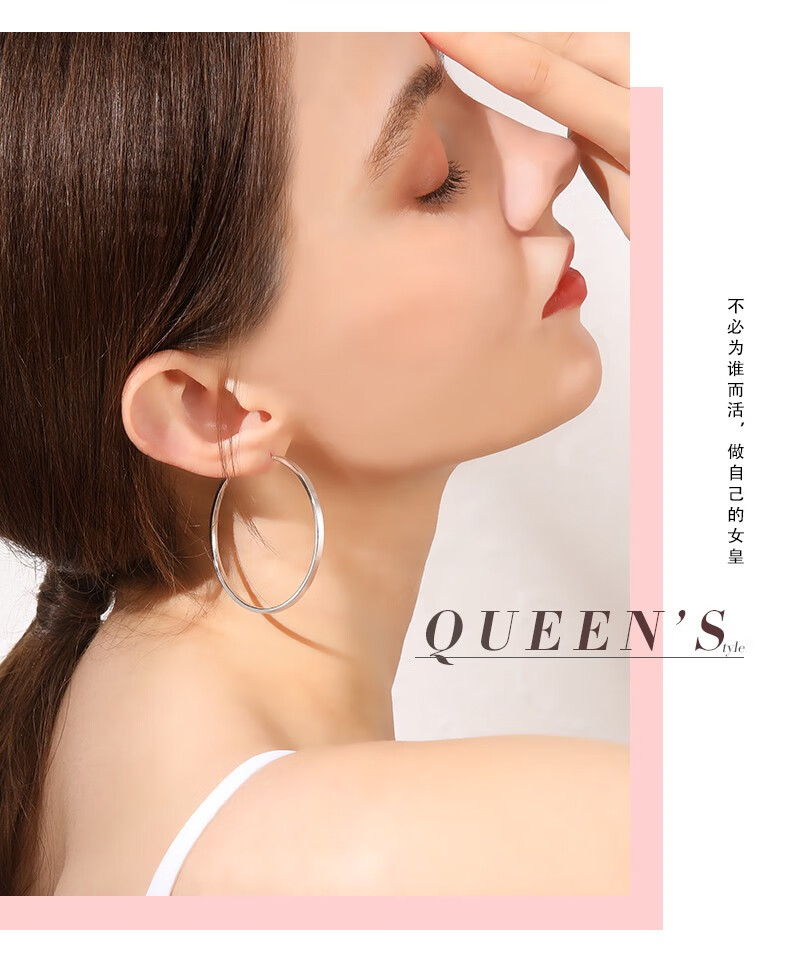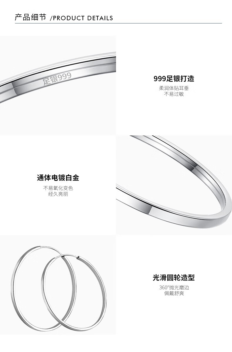 Jiuchangshi Fang Guang 999 sterling silver earrings for women, large size pure silver large earrings birthday gift for girlfriend, pure silver 999 30mm