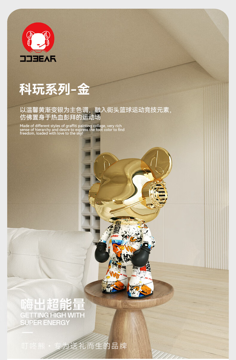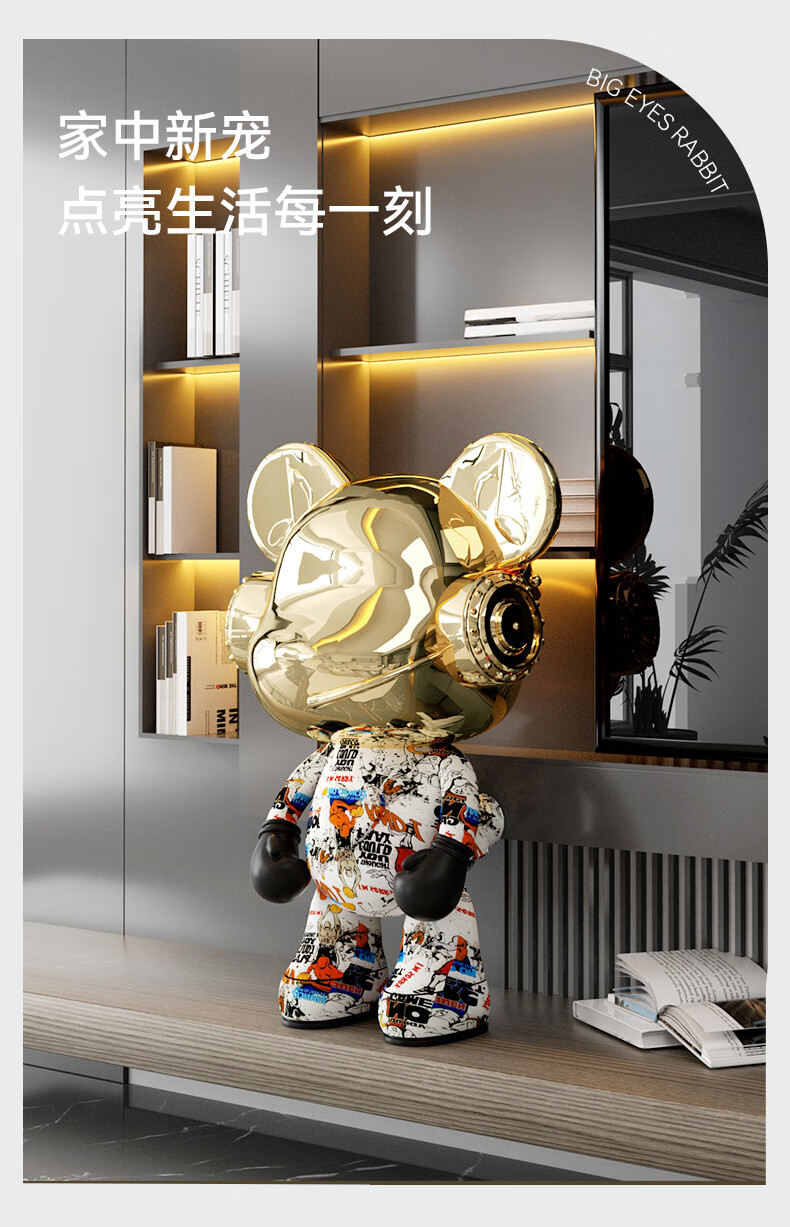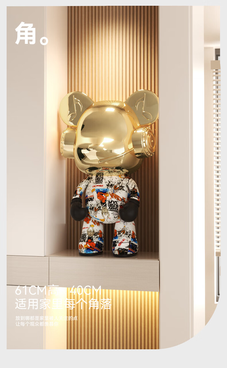 Supreme Swan Ding Dong Bear Violent Bear Audio Floor-standing Decoration Living Room Large Light Luxury Crafts Opening and Moving Housewarming Gift Painted Gold Version 2.0 (Height 61cm)