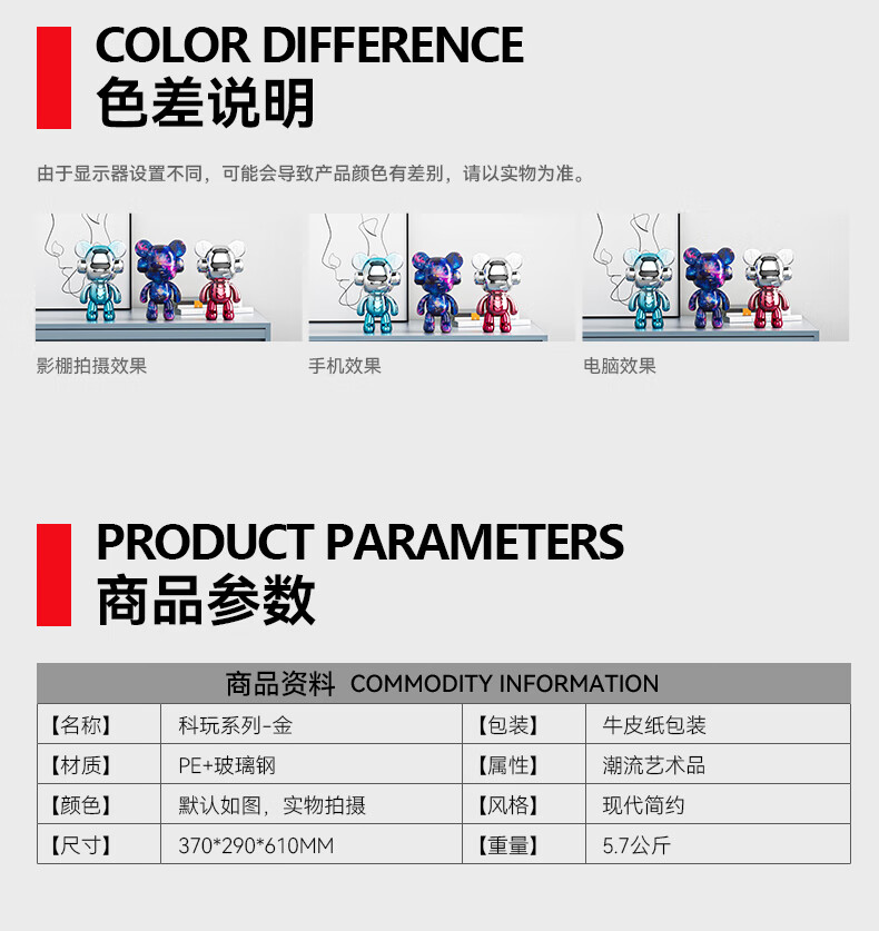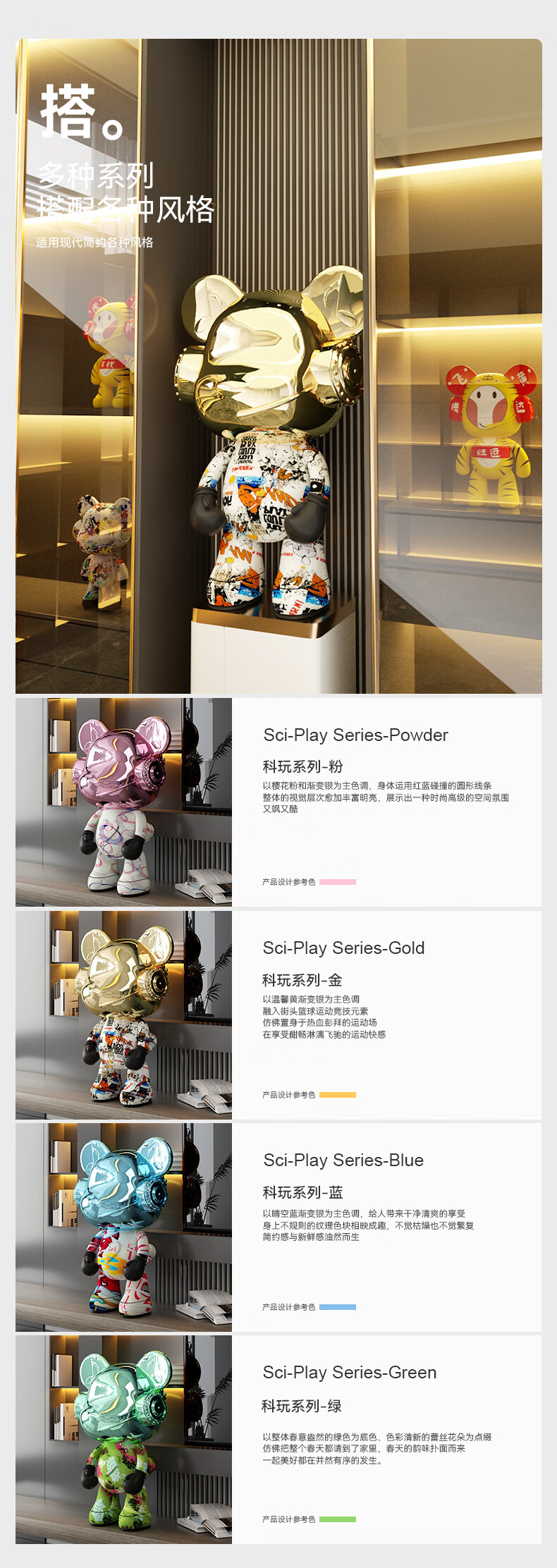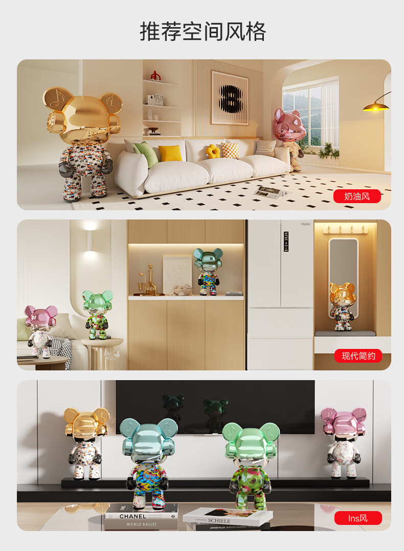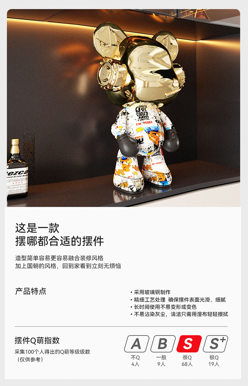 Supreme Swan Ding Dong Bear Violent Bear Audio Floor-standing Decoration Living Room Large Light Luxury Crafts Opening and Moving Housewarming Gift Painted Gold Version 2.0 (Height 61cm)