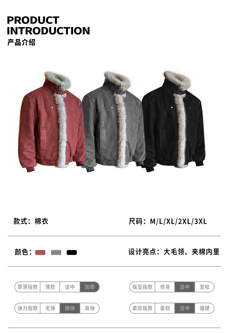 Muwei suede mountain carving cotton jacket for men 2025 autumn and winter new high quality thickened warm padded jacket American jacket black top quality XL recommended 130-150Jin Jin equals 0.5 kg