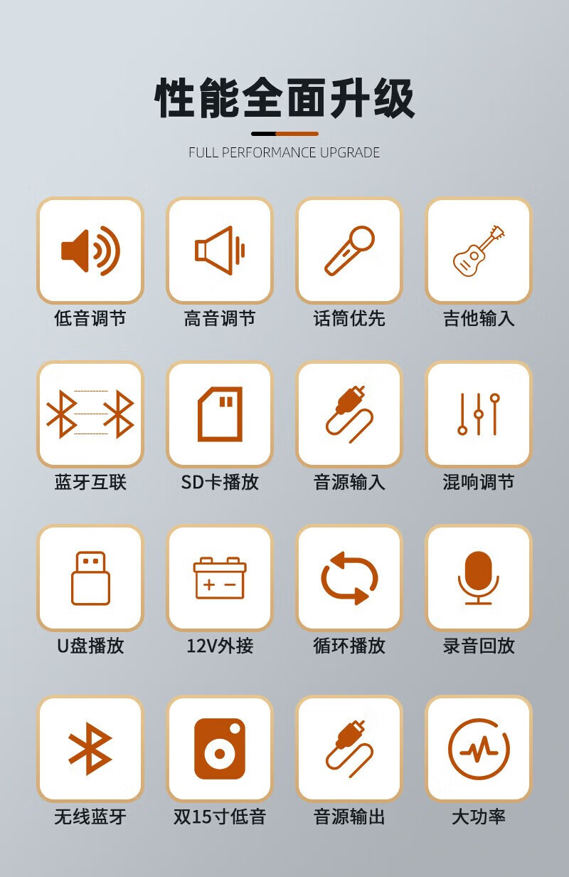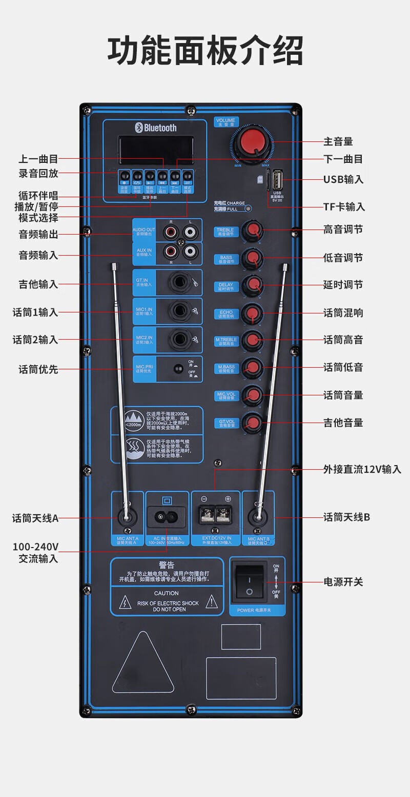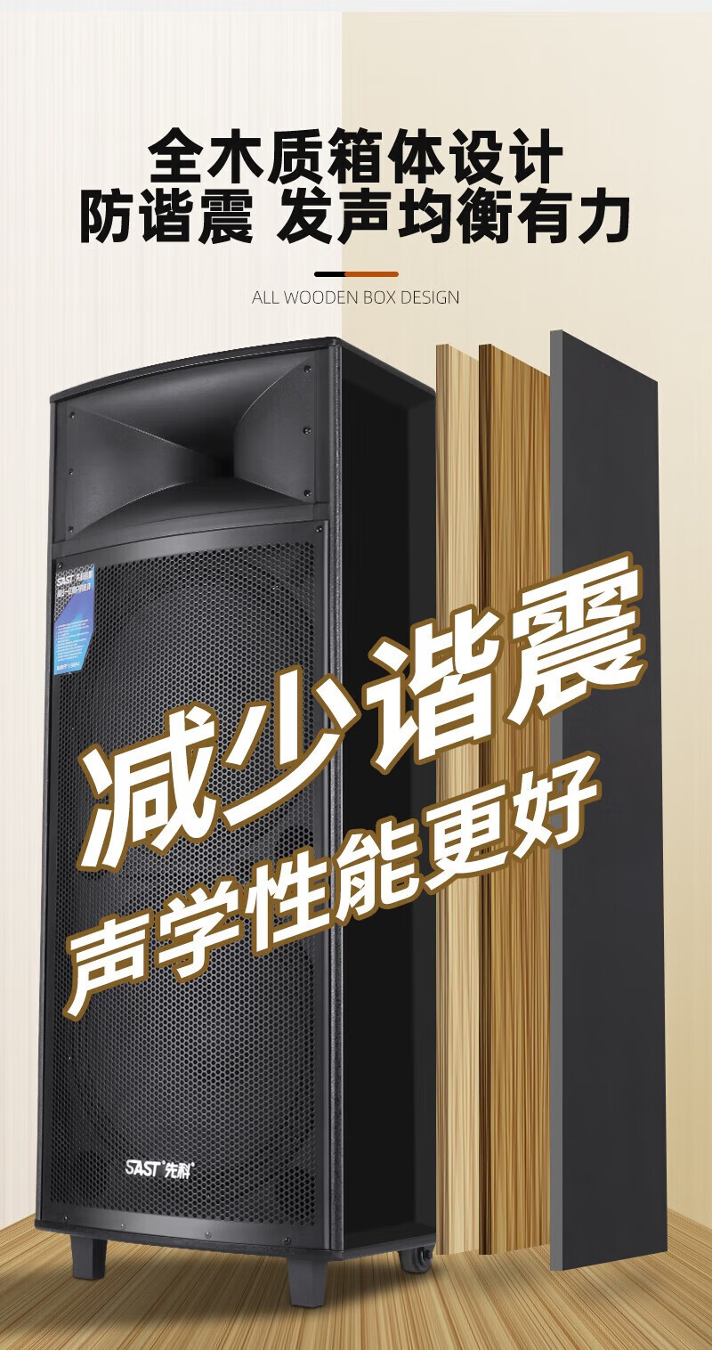 SAST outdoor speaker stage conference performance square dance wedding professional audio wireless Bluetooth subwoofer dual 15-inch high-power rod amplifier comes standard with two + four wireless microphones + U disk *2