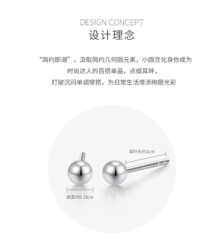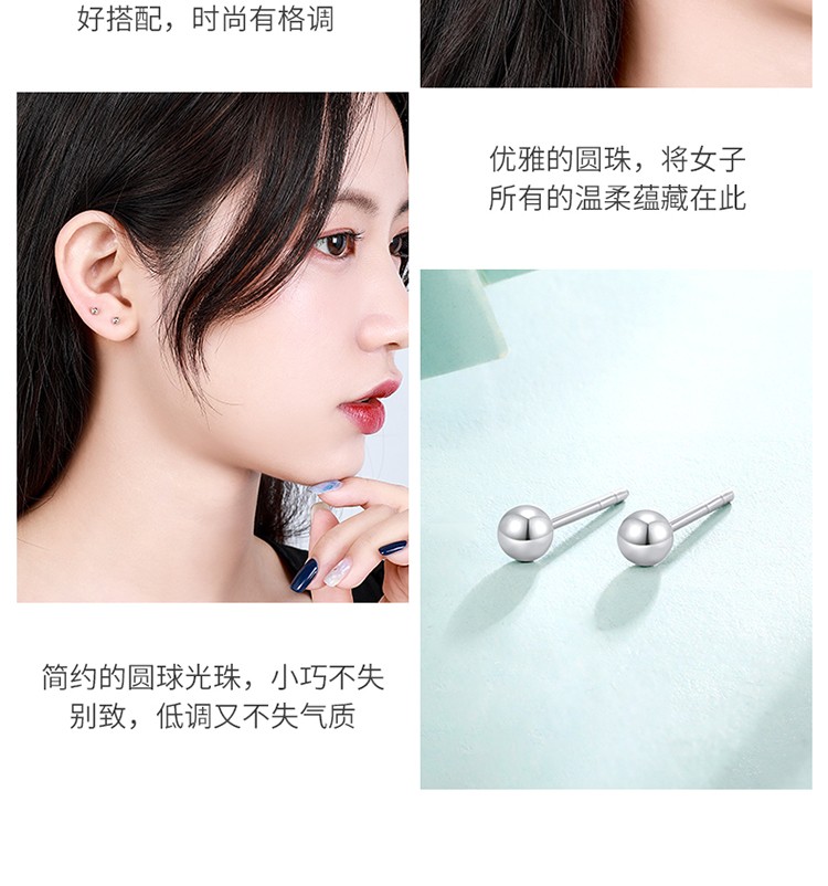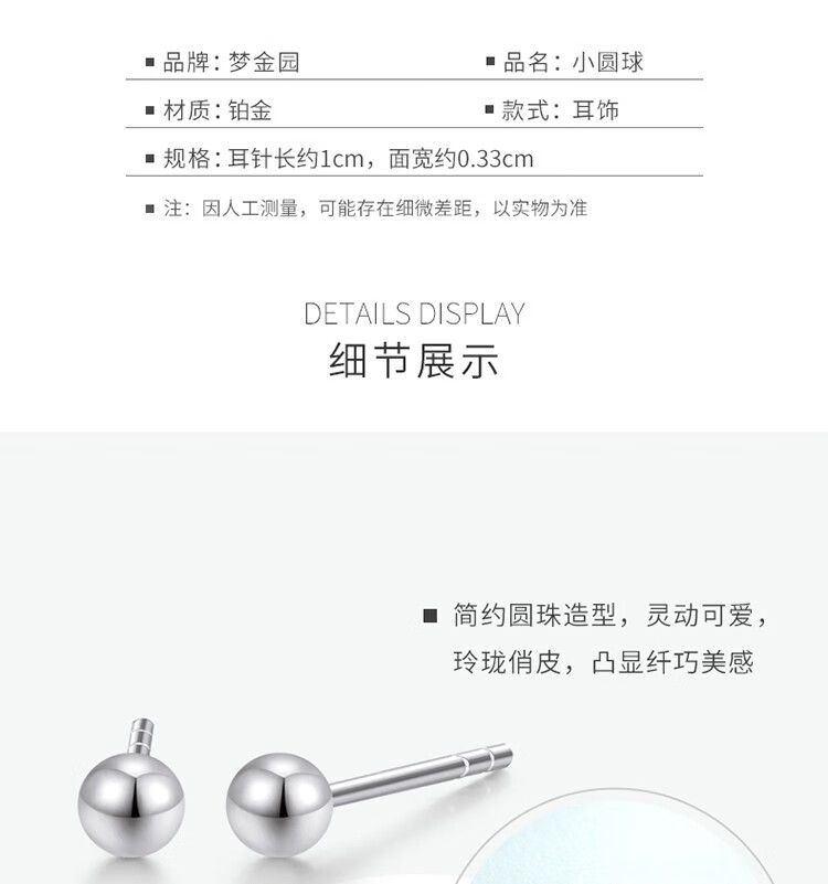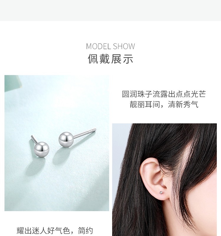 Mengjinyuan platinum earrings for women, PT950 glossy small round beads, platinum earrings, mini ear sticks, gift for girlfriend and friends, about 0.8g