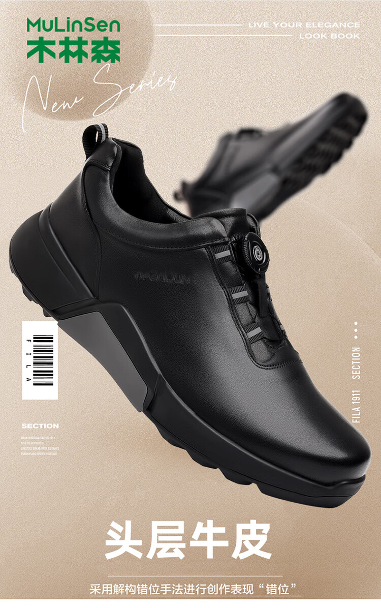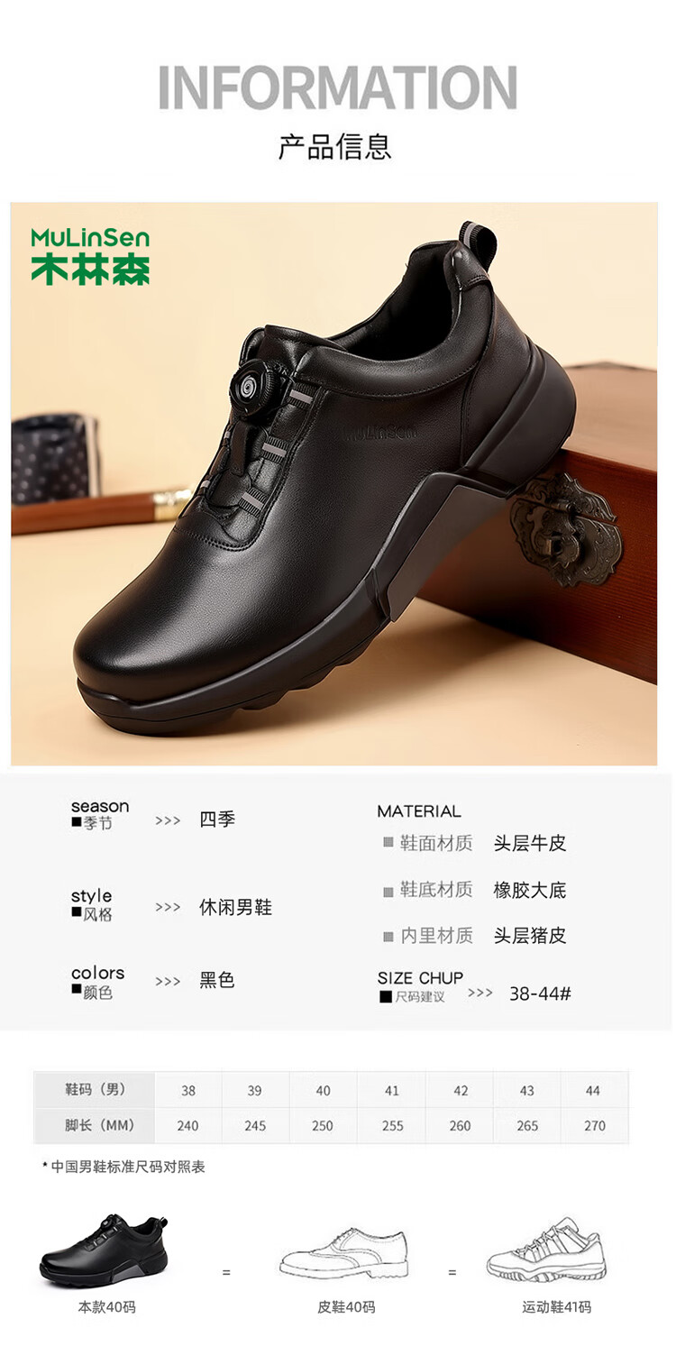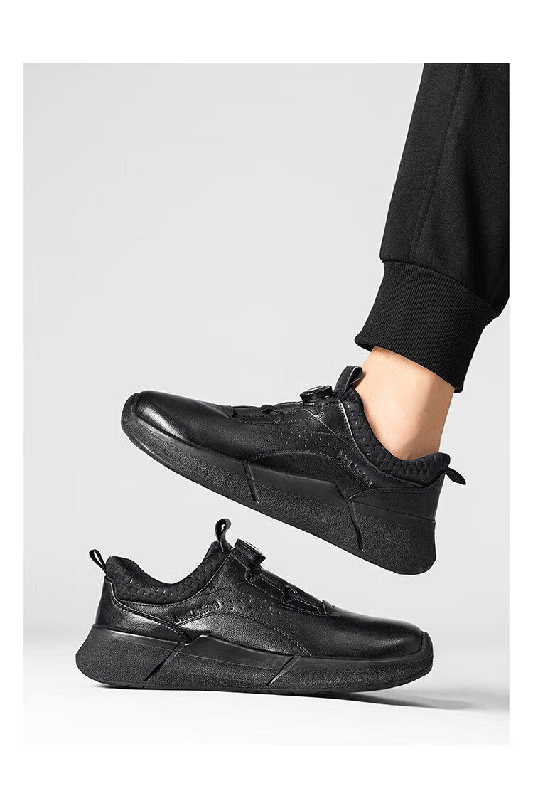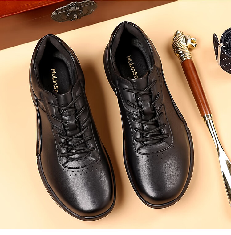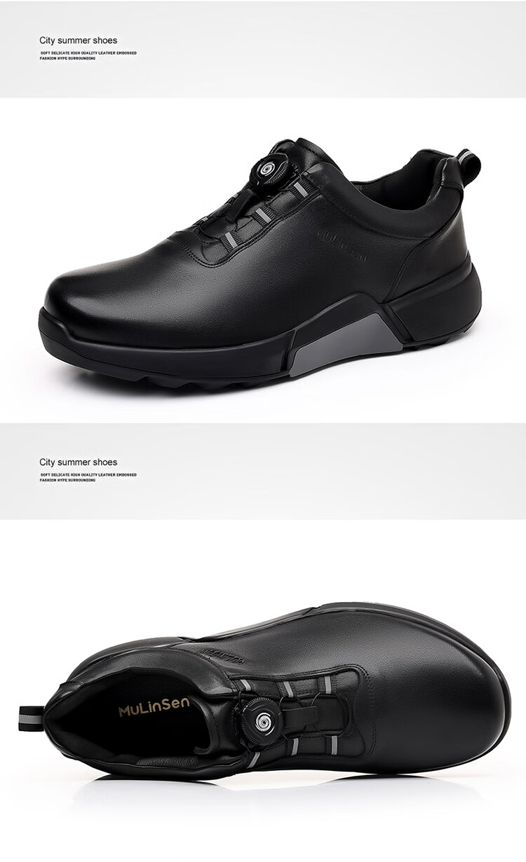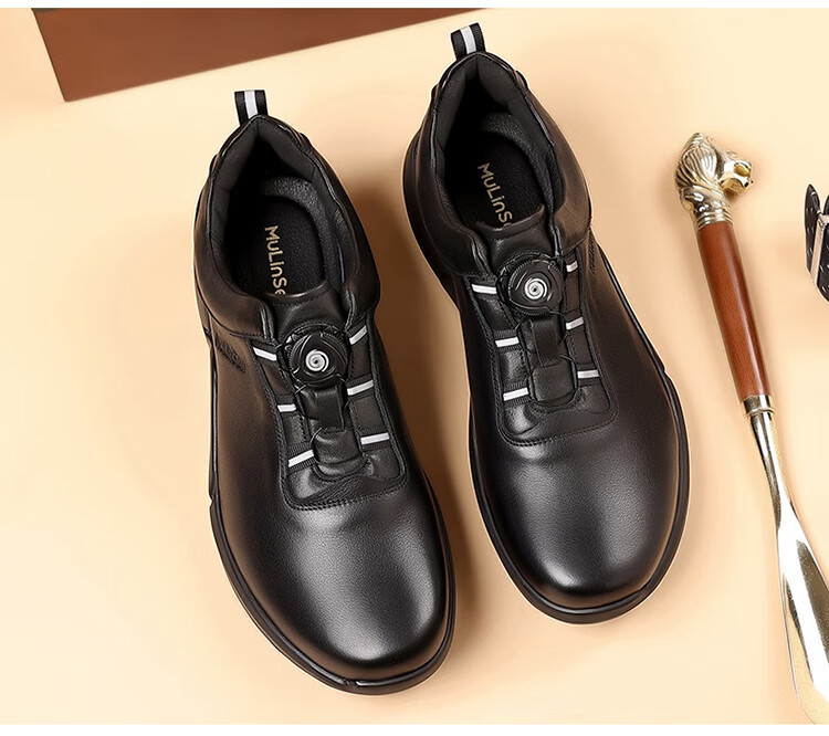 Mulinsen first layer cowhide men's shoes autumn soft sole business casual shoes light luxury men's casual leather shoes men's sneakers black (rotary buckle) J451010188 42