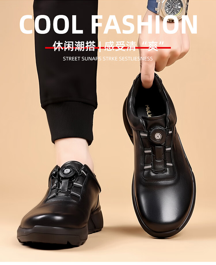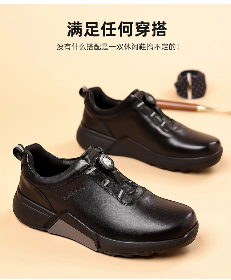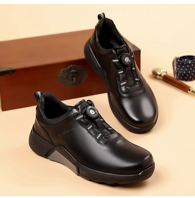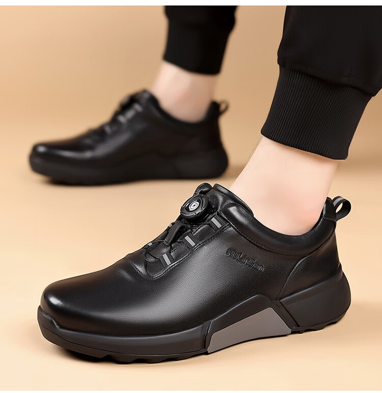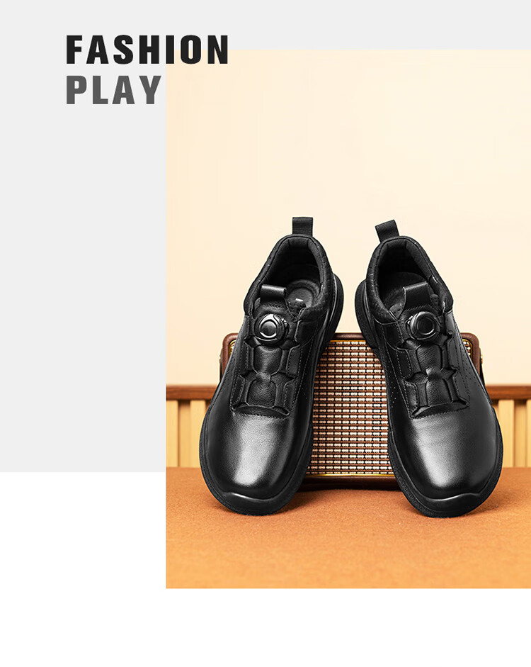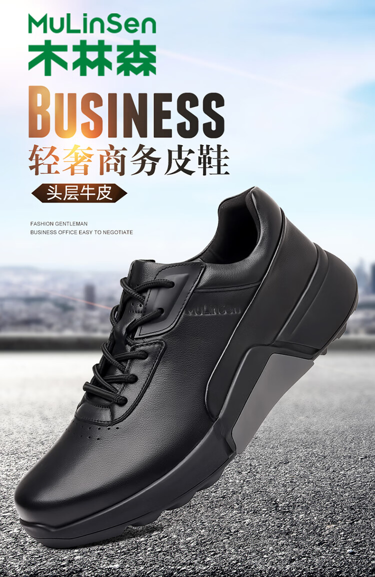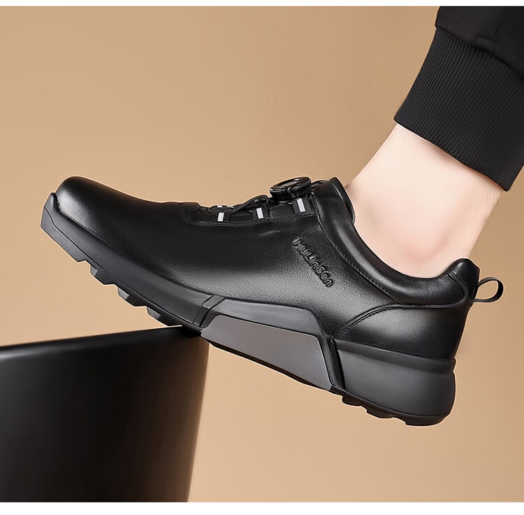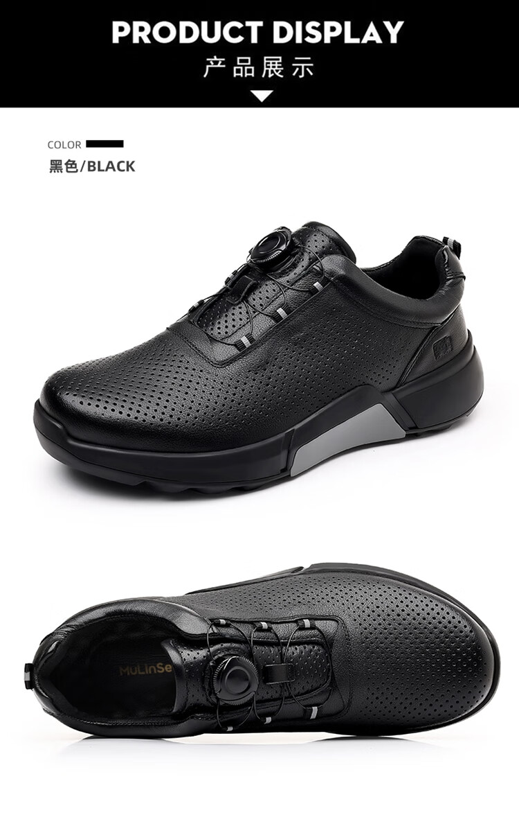 Mulinsen first layer cowhide men's shoes autumn soft sole business casual shoes light luxury men's casual leather shoes men's sneakers black (rotary buckle) J451010188 42