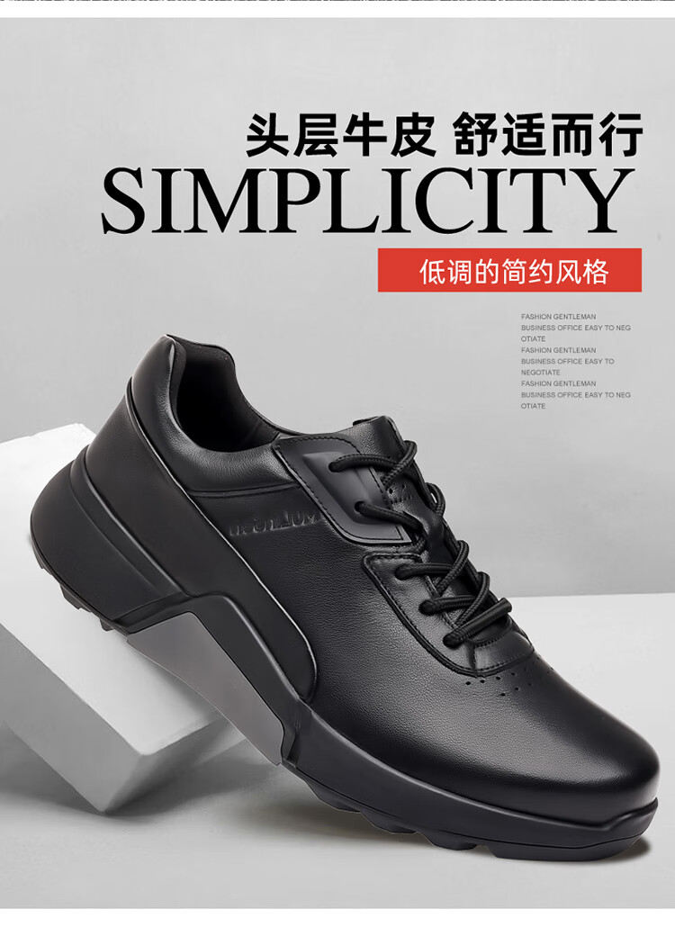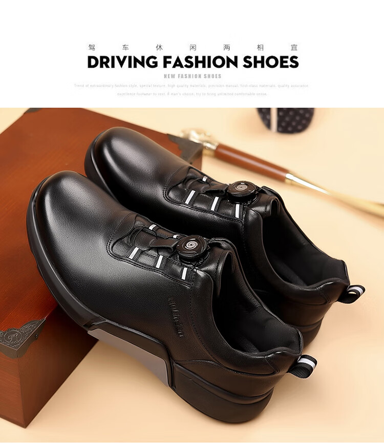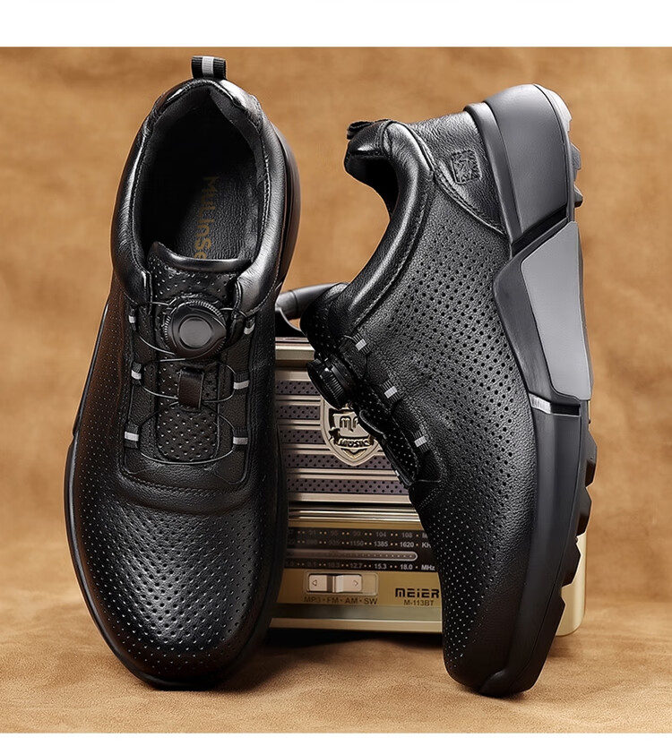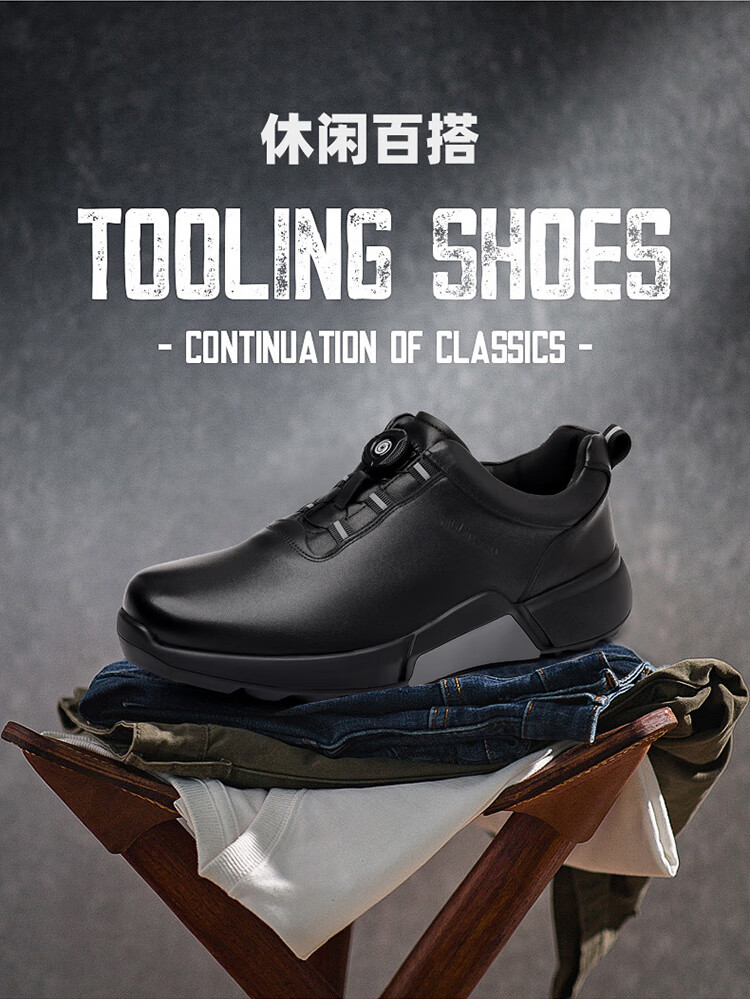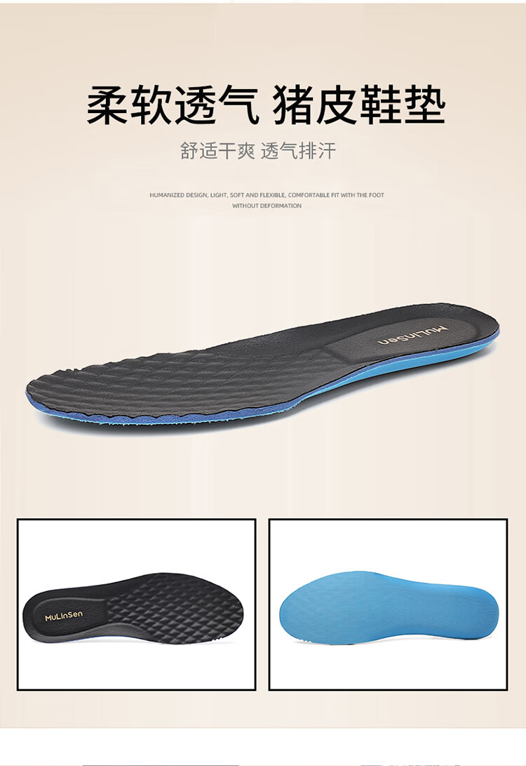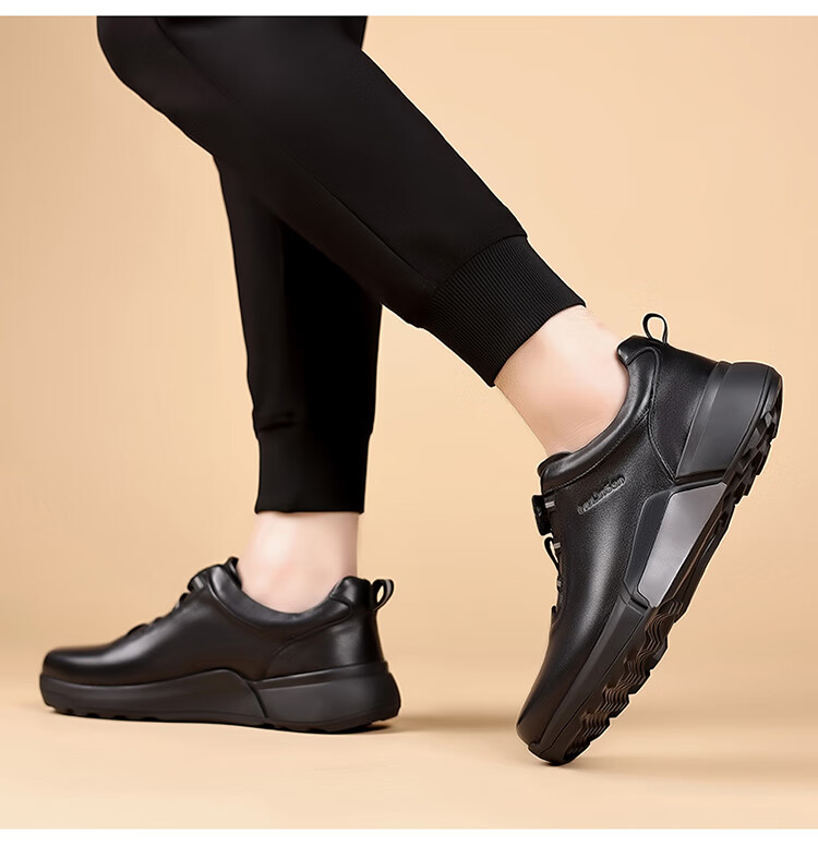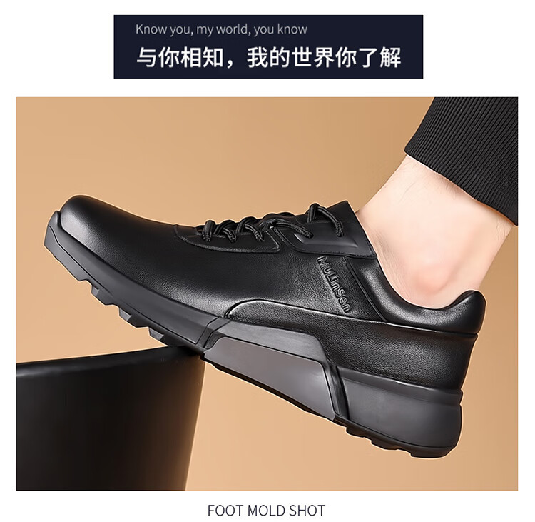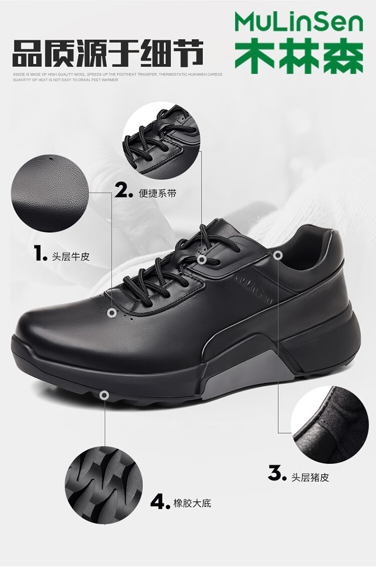 Mulinsen first layer cowhide men's shoes autumn soft sole business casual shoes light luxury men's casual leather shoes men's sneakers black (rotary buckle) J451010188 42